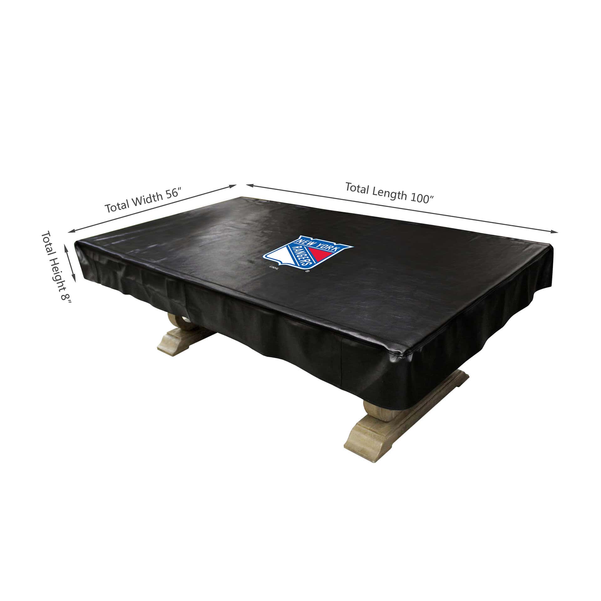 Protect your billiard table in style with this officially licensed New York Rangers pool table cover! Show your team pride while keeping your table safe from dust and debris. This cover is designed to fit most standard 8-foot tables, ensuring a snug and secure fit.