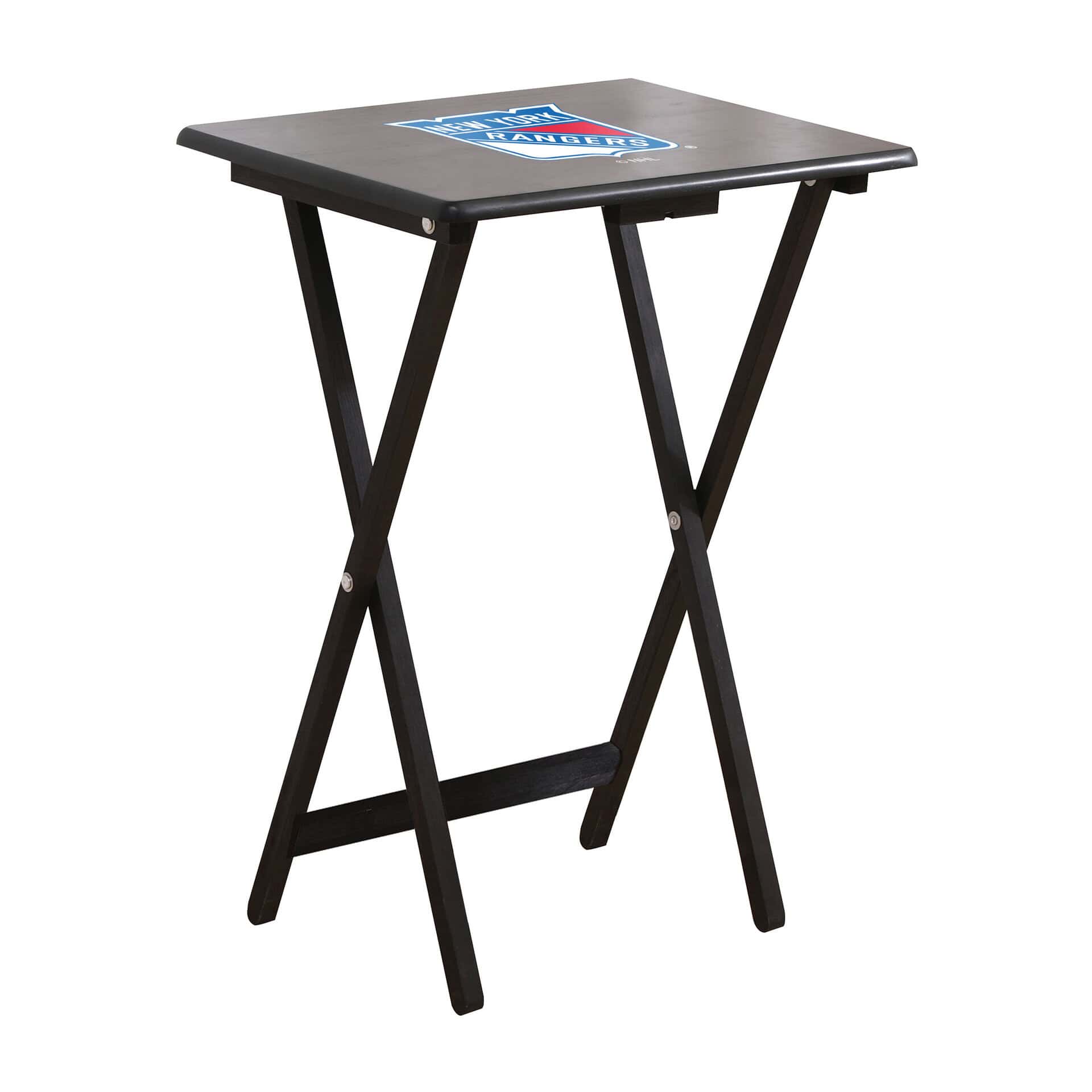 Get ready to snack in style while showing off your team pride with the NY Rangers TV Tray Set! This set includes four sturdy trays and a convenient storage rack, perfect for game day snacks or any time you want to enjoy a meal in front of the TV. Each tray features a silkscreened team logo, adding a touch of team spirit to your living space. When you’re finished, simply stack the trays back into the rack for easy and tidy storage. Enjoy the convenience and team pride that this TV tray set brings to your home! The trays are also finished with an easy to clean surface.