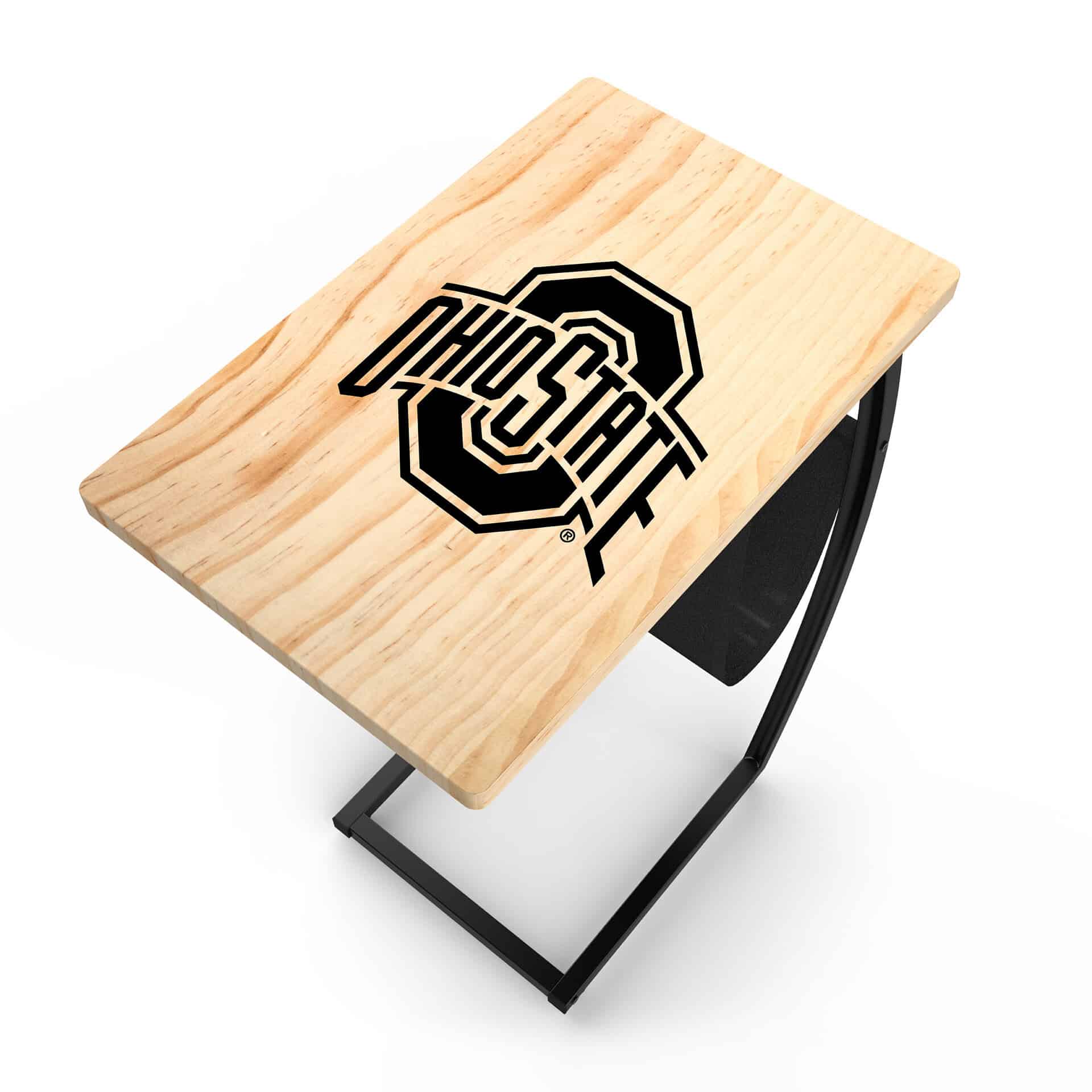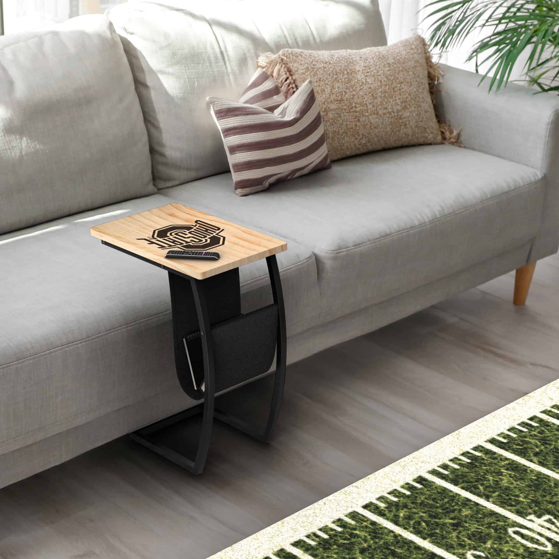 This stylish side table, featuring the iconic Ohio State laser-etched logo, offers a modern C-shape design. Its smart build allows it to slide easily under your couch or chair, providing a convenient surface for laptops, tablets, or game-day snacks. Whether you’re working, watching a movie, or cheering on the Buckeyes, this versatile table has you covered. Enjoy the popular natural color and the added benefit of a unique cloth storage area for magazines and electronics. It’s also easy to assemble.