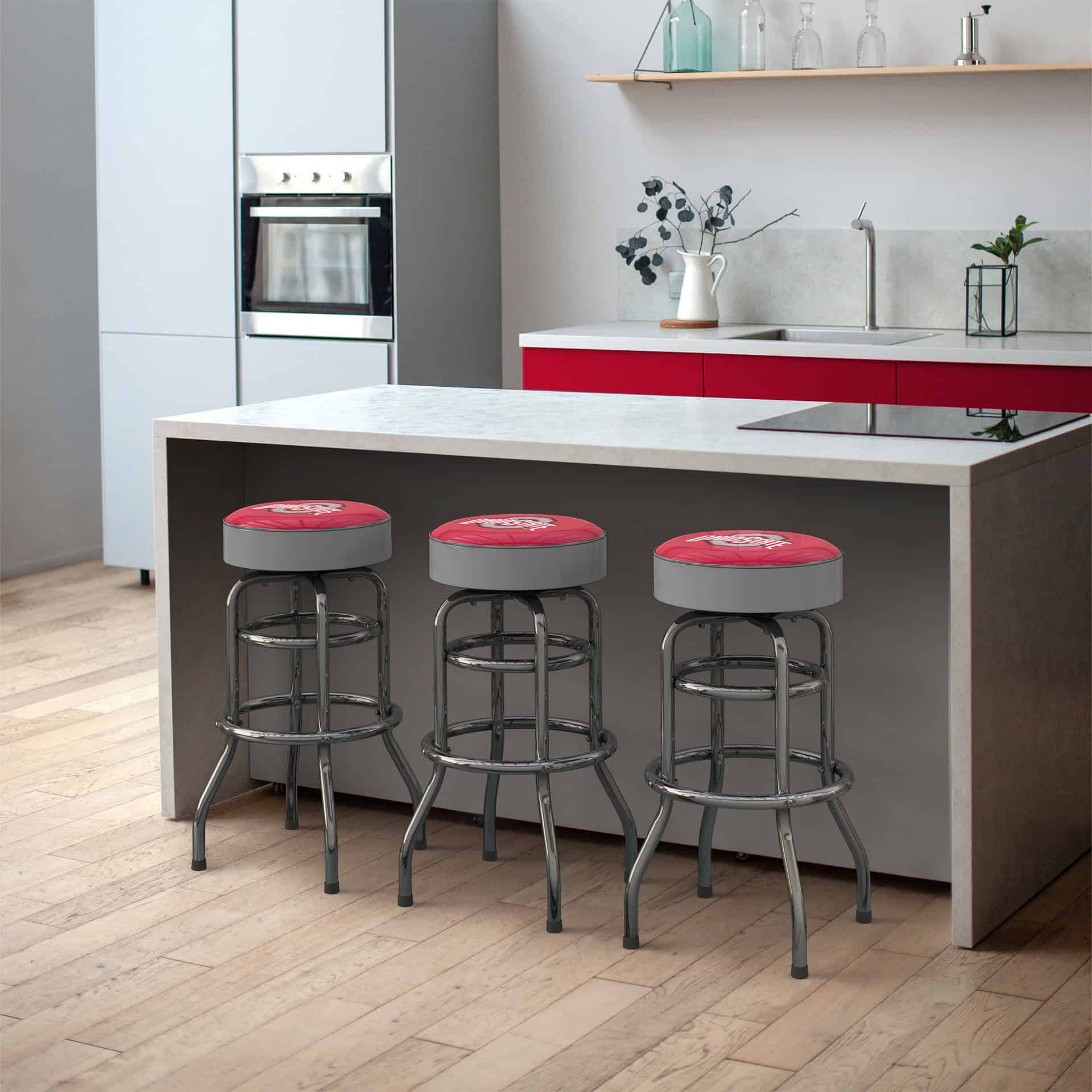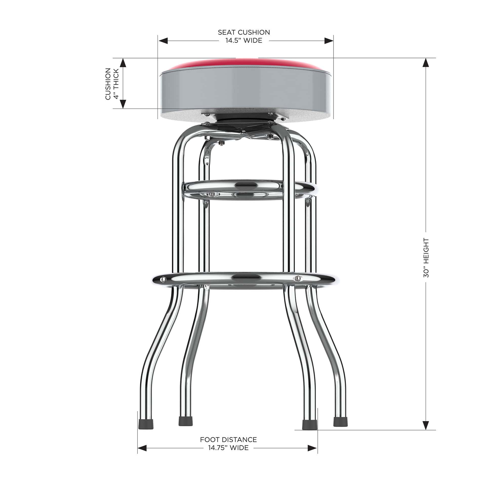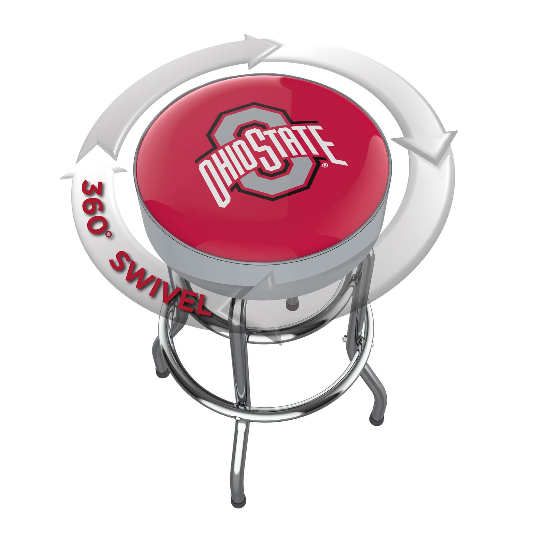 Get ready to cheer on the Ohio State Buckeyes with this awesome chrome bar stool! This commercial-grade stool is built to last and showcases your team pride in style. The vibrant colors and logos are designed to endure, so you can show off your Buckeyes spirit for years to come. Enjoy superior comfort and durability while representing your favorite team!