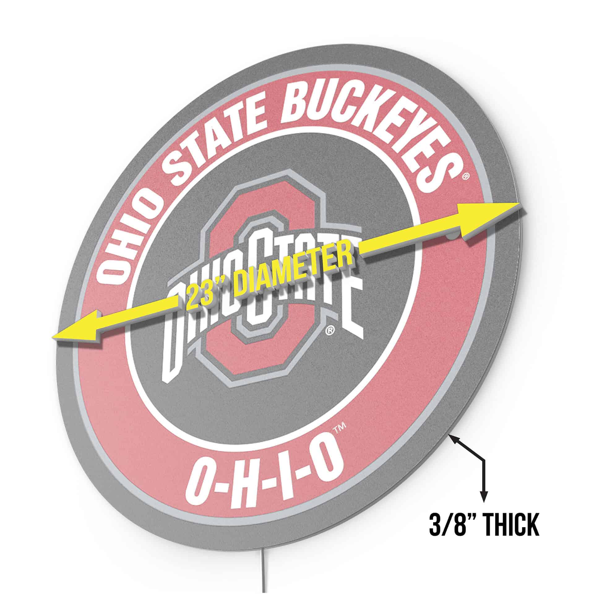 Show off your Buckeye pride with the Ohio State “O-H-I-O” LED Lighted Sign! This energy-efficient sign features a vibrant illuminated faceplate and stylish edge lighting, perfect for your game room or any space where you celebrate the Buckeyes. The high-resolution digitally printed face and long-lasting LED strip will keep your team spirit shining bright for years to come. Get ready to shout “O-H!”