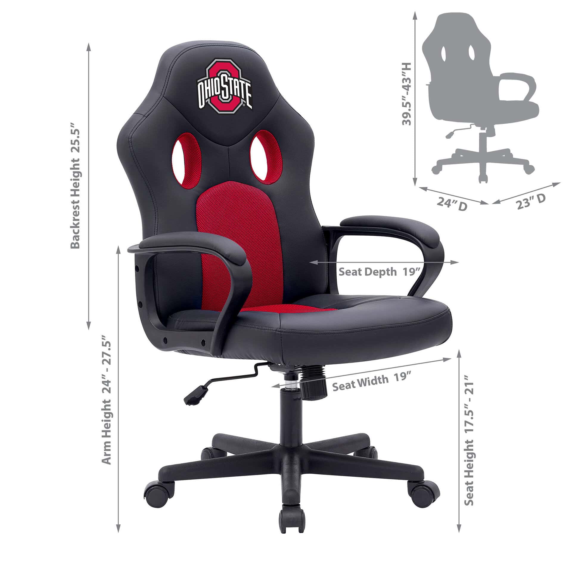 The Ohio State Vision Game Chair is the perfect addition to any young fan’s space! Featuring team-colored, jersey-like mesh, this chair offers a sporty look and excellent breathability, ensuring comfort during extended gaming or study sessions. The adjustable seat height and tilt mechanism allow for personalized comfort, while the 360-degree swivel provides easy movement. Its sharp, modern design makes it a stylish addition to any room. Whether for gaming, homework, or relaxation, this chair is a winner!