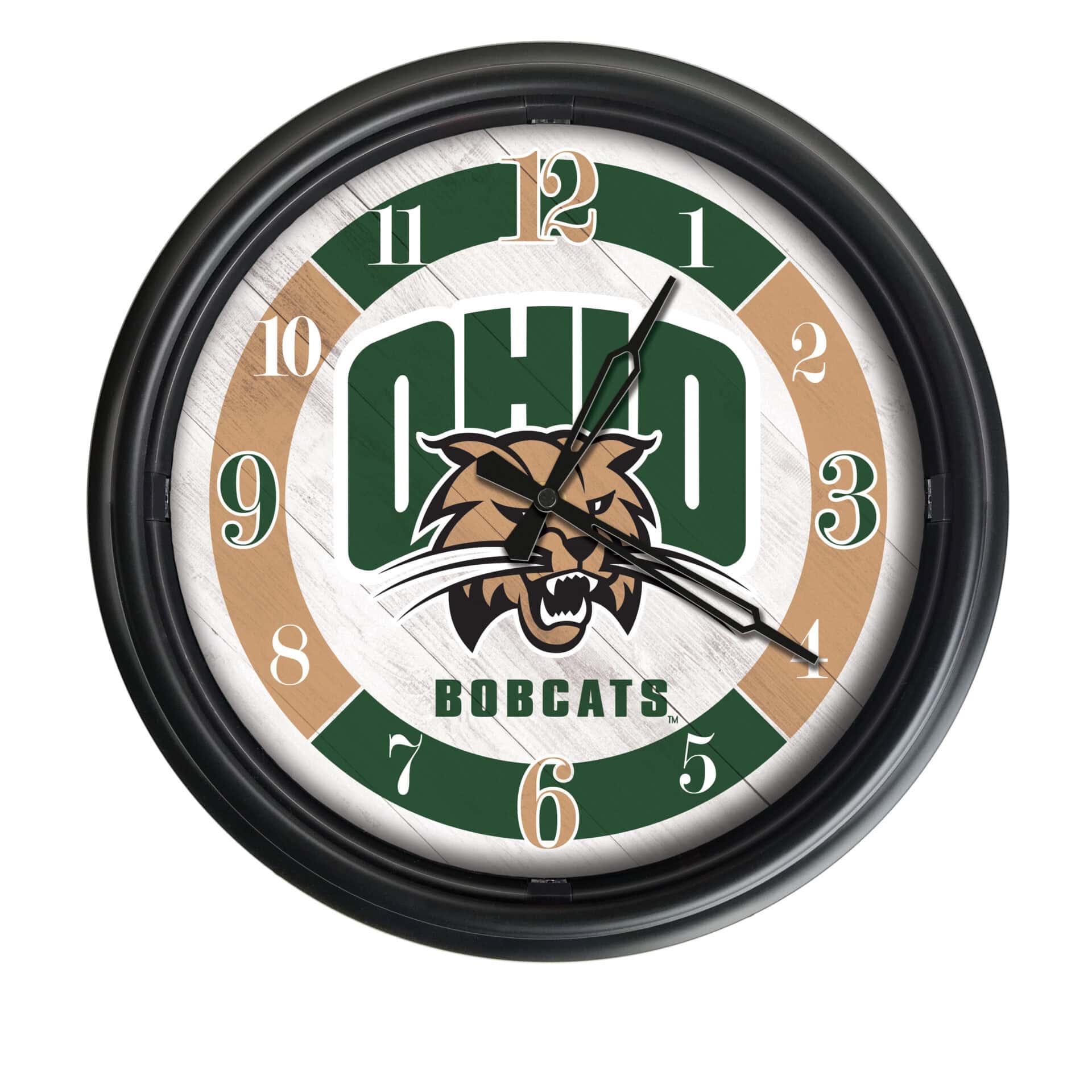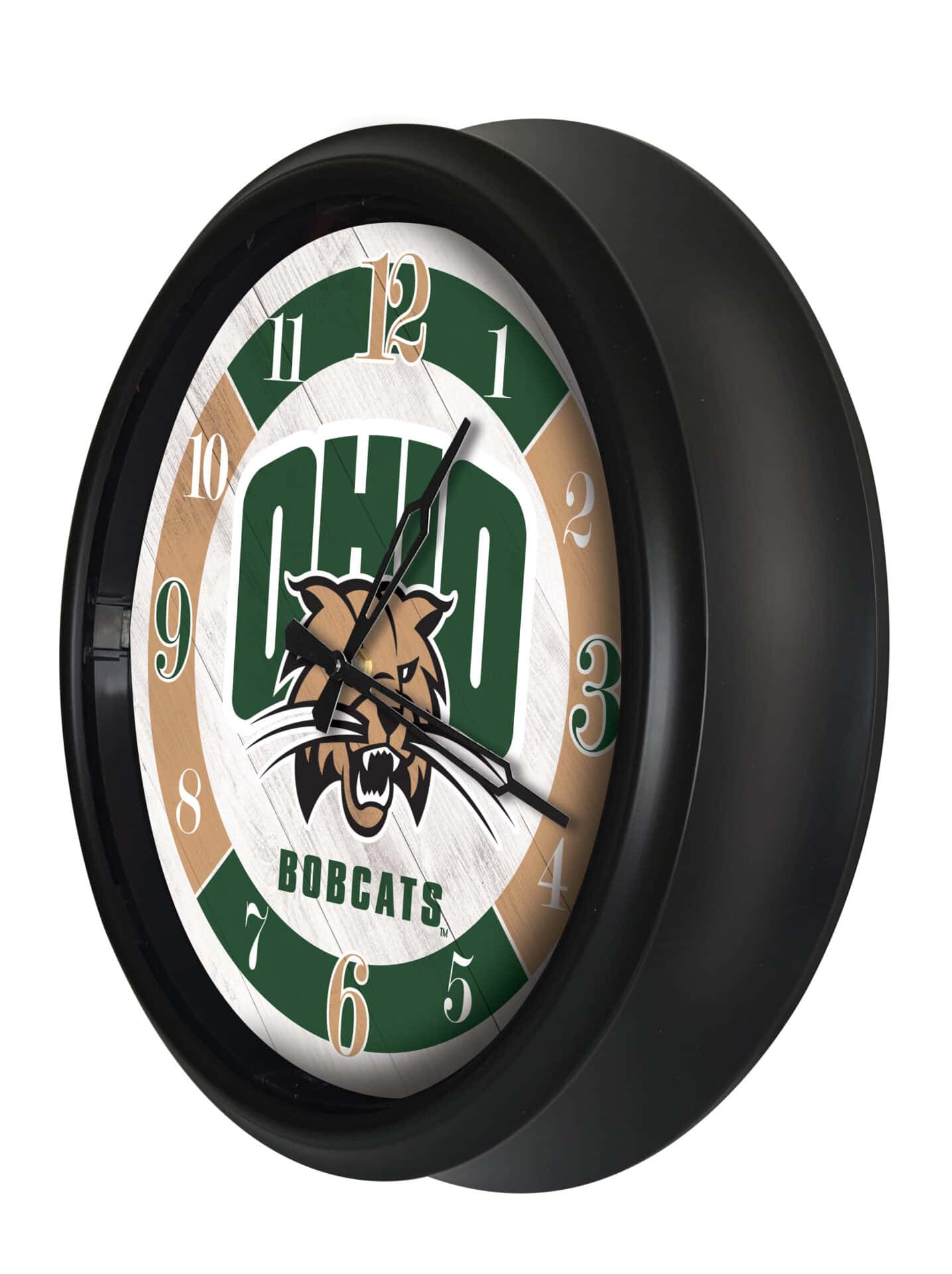 The Ohio University 14-Inch Indoor/Outdoor LED Wall Clock in Black is the perfect blend of style and functionality, designed to showcase your school pride while providing accurate timekeeping. Made with durable materials, this clock is suitable for both indoor and outdoor use. Its UV-resistant casing and weather-proof features ensure it withstands the elements, making it an ideal addition to your man cave, patio, or any space you want to personalize. The vibrant, fade-free artwork is digitally printed using UV inks, ensuring it remains bright and eye-catching for years to come. With photo eye-controlled LED lights, the clock face illuminates automatically in low light, offering both convenience and visibility.