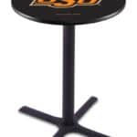 Upgrade your bar, game room, or man cave with this stylish 42-inch pub table. Designed for durability and aesthetics, it features a stunning scratch-resistant, full-color sublimated laminate top. The sturdy cross base is built with commercial-grade cast iron and steel, providing exceptional stability and a sleek black wrinkle powder-coated finish. Adjustable feet ensure the table remains steady on any surface, while its easy-to-clean surface adds convenience. Perfect for any setting, this table combines functionality with a bold, attractive design.