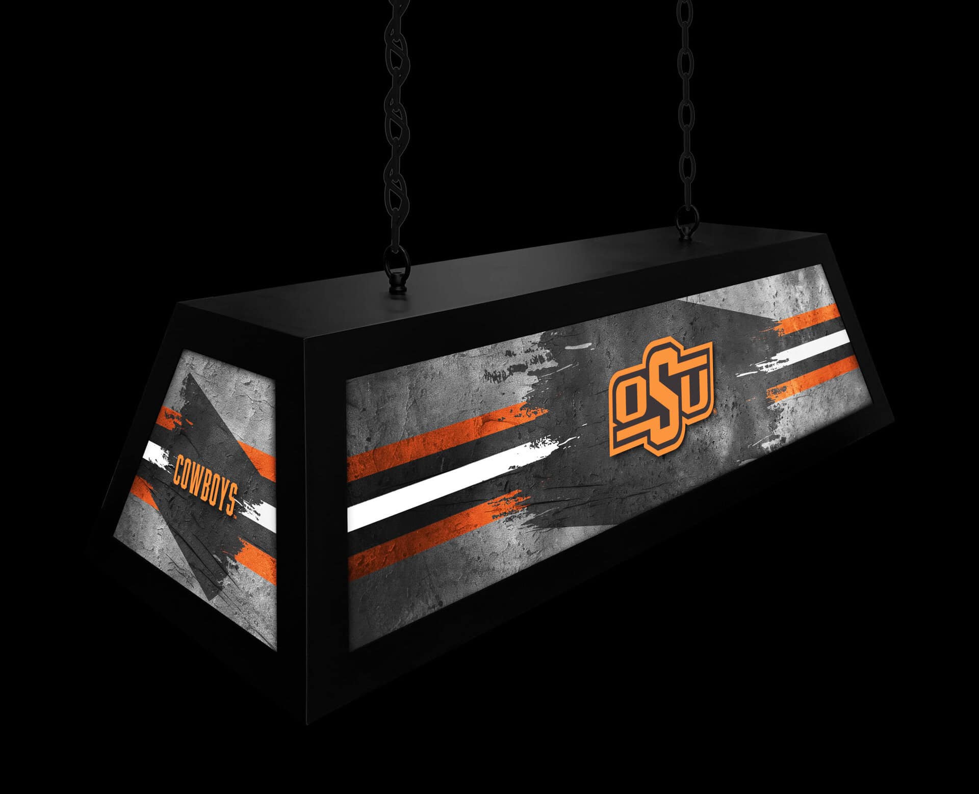 This Oklahoma State University Long Box Billiard Light is the perfect addition to any game room, bar, or billiard space. It combines a durable metal frame with a vibrant, backlit design to provide excellent illumination and showcase your team pride. Featuring shatter-resistant acrylic panels and a sleek black finish, this light fixture is both stylish and functional.