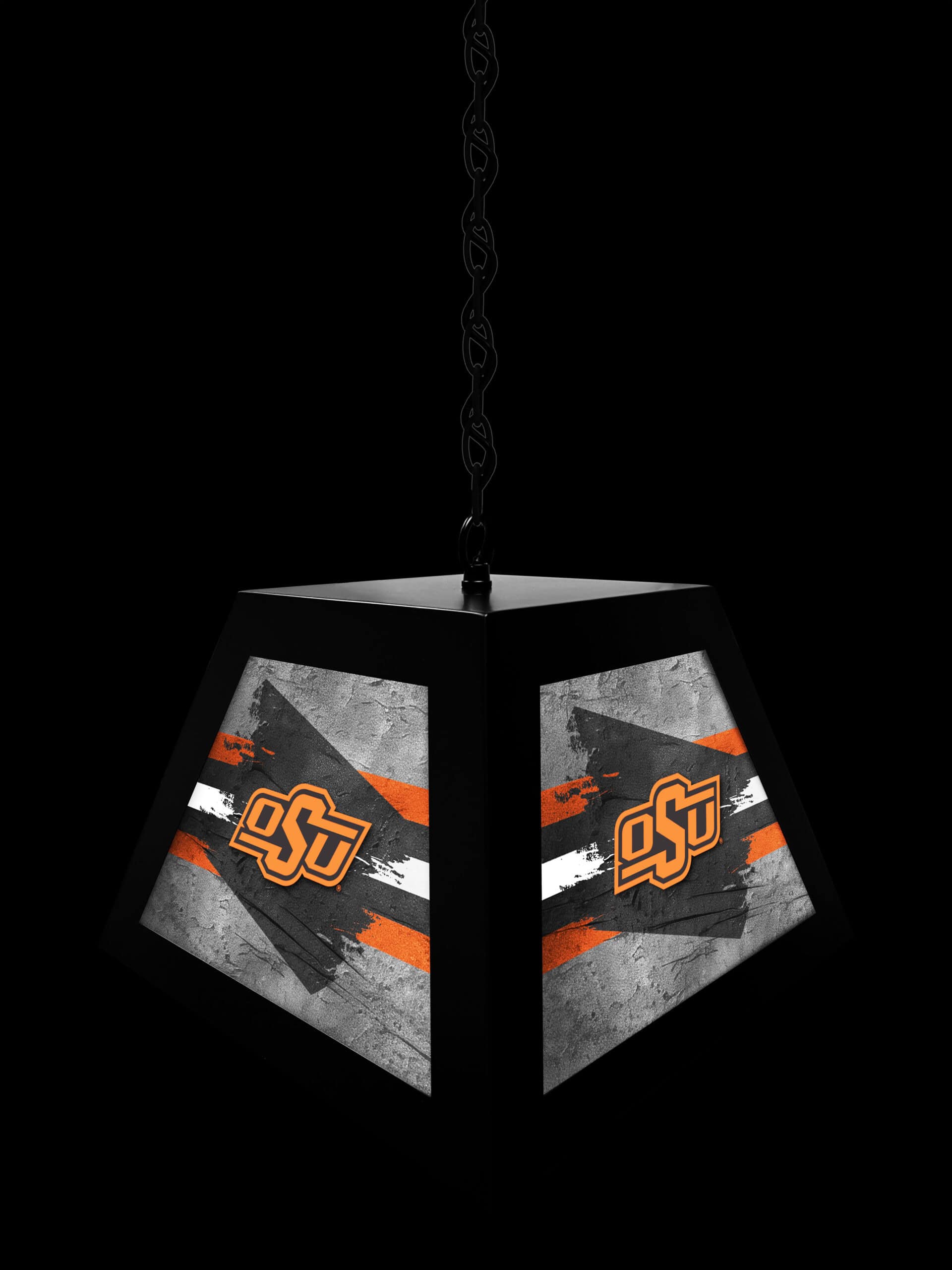 Get ready to show off your team pride with this Oklahoma State University Pendant Box Light! This high-quality, suspended light fixture is perfect for illuminating your billiard table, game table, bar, or pub table. It combines a durable metal frame with a vibrant, backlit design, making it a stylish and functional addition to any space.