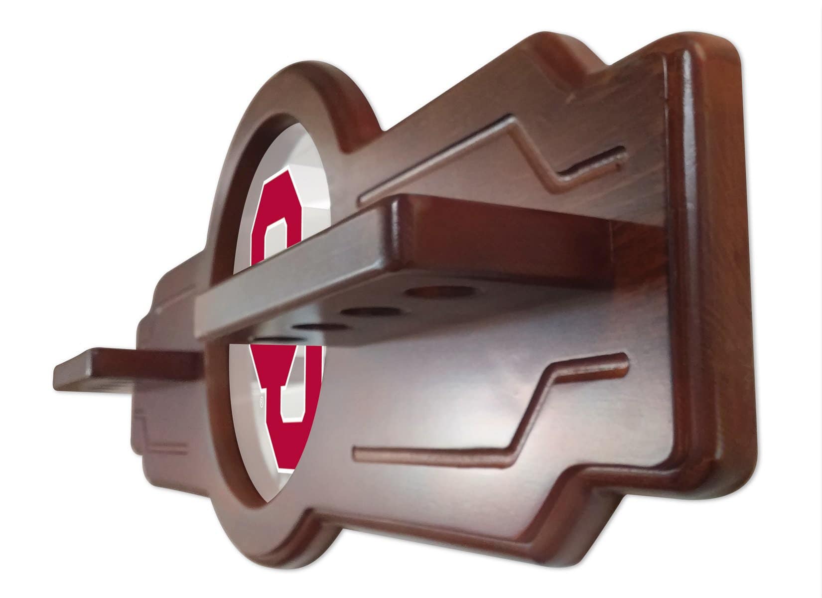 Elevate your game room with this premium Oklahoma University Navajo Logo Cue Rack, designed to showcase your team spirit while providing a sophisticated storage solution for your pool cues. This exceptional rack combines high-quality craftsmanship with stylish design, offering a must-have accessory for billiards enthusiasts and sports fans alike.