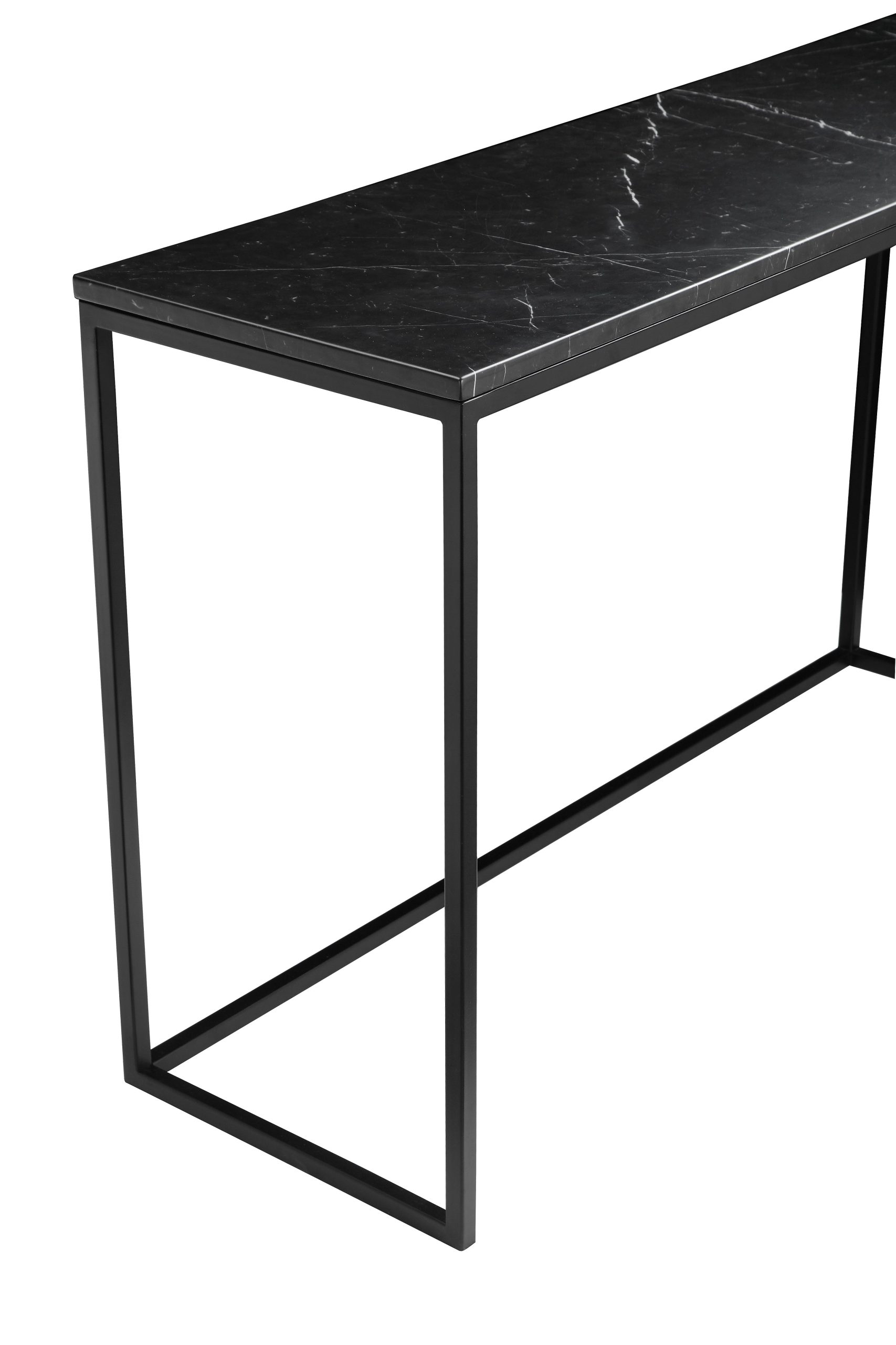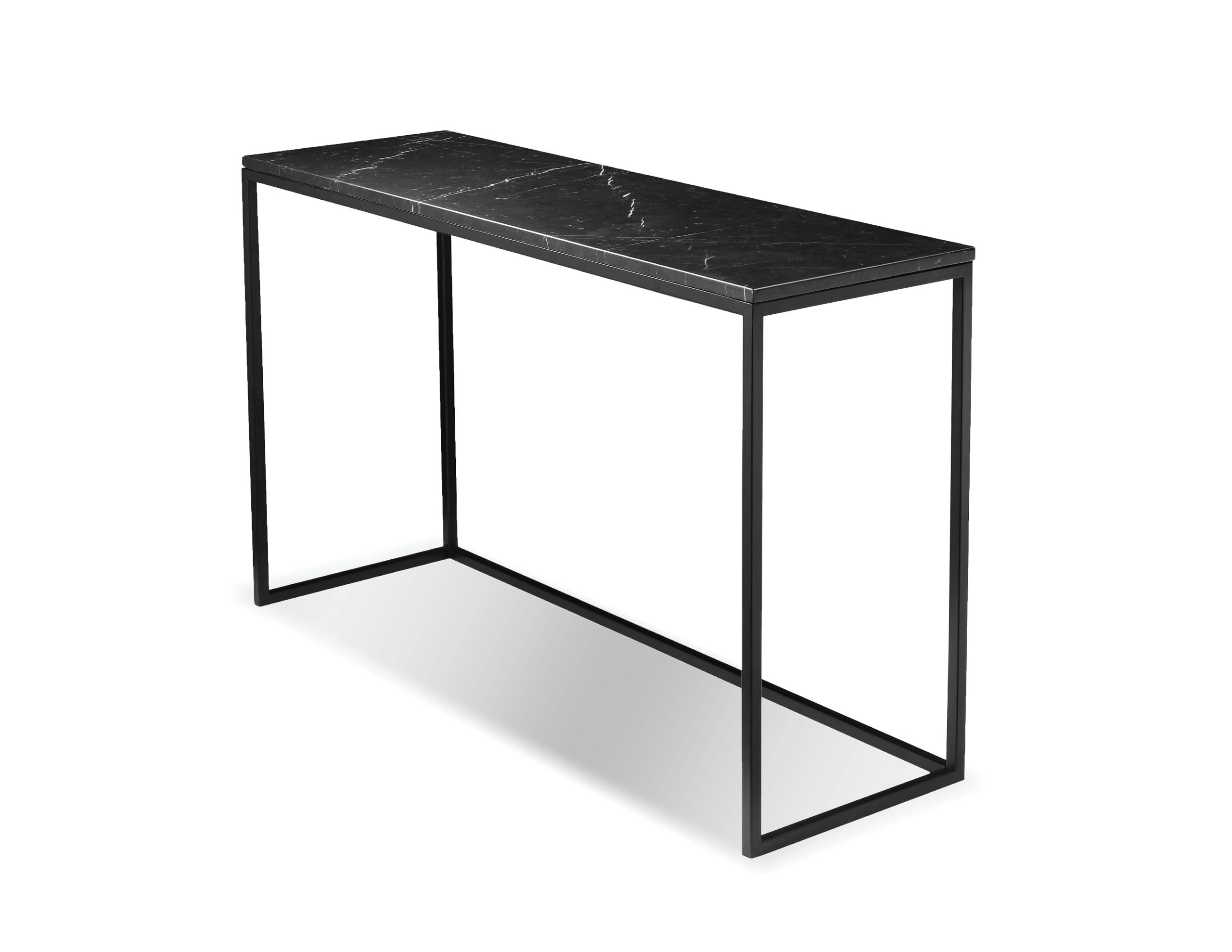 The ONIX Black Marquina Marble Sofa Table is a stylish and functional addition to any living space. Featuring a sleek black powder-coated frame and a stunning black Marquina marble top, this sofa table offers a touch of modern elegance. It’s perfect for displaying decor, holding drinks, or providing extra surface space in your living room.