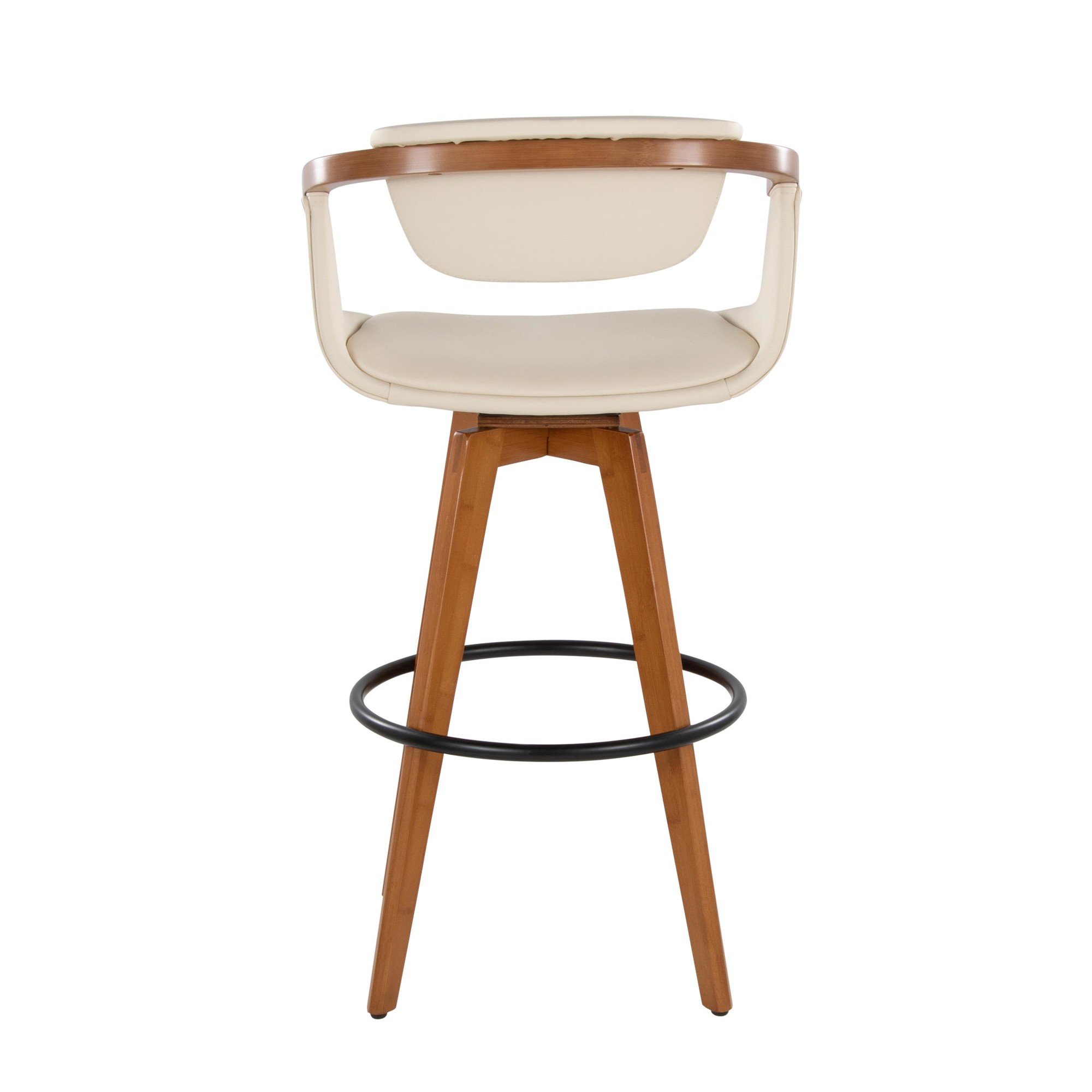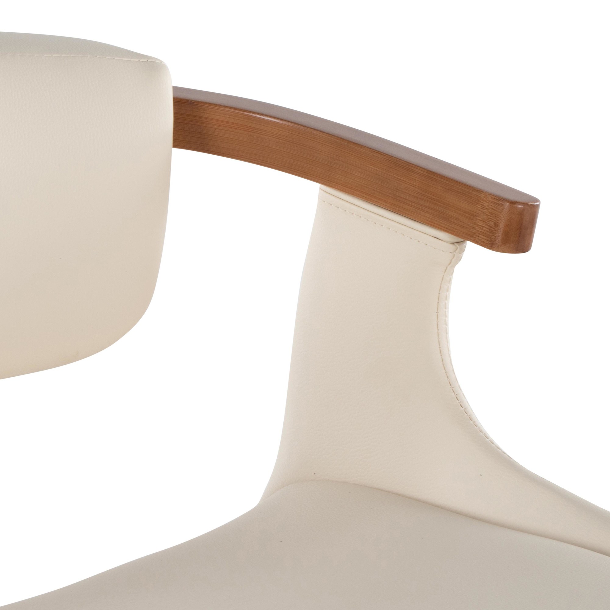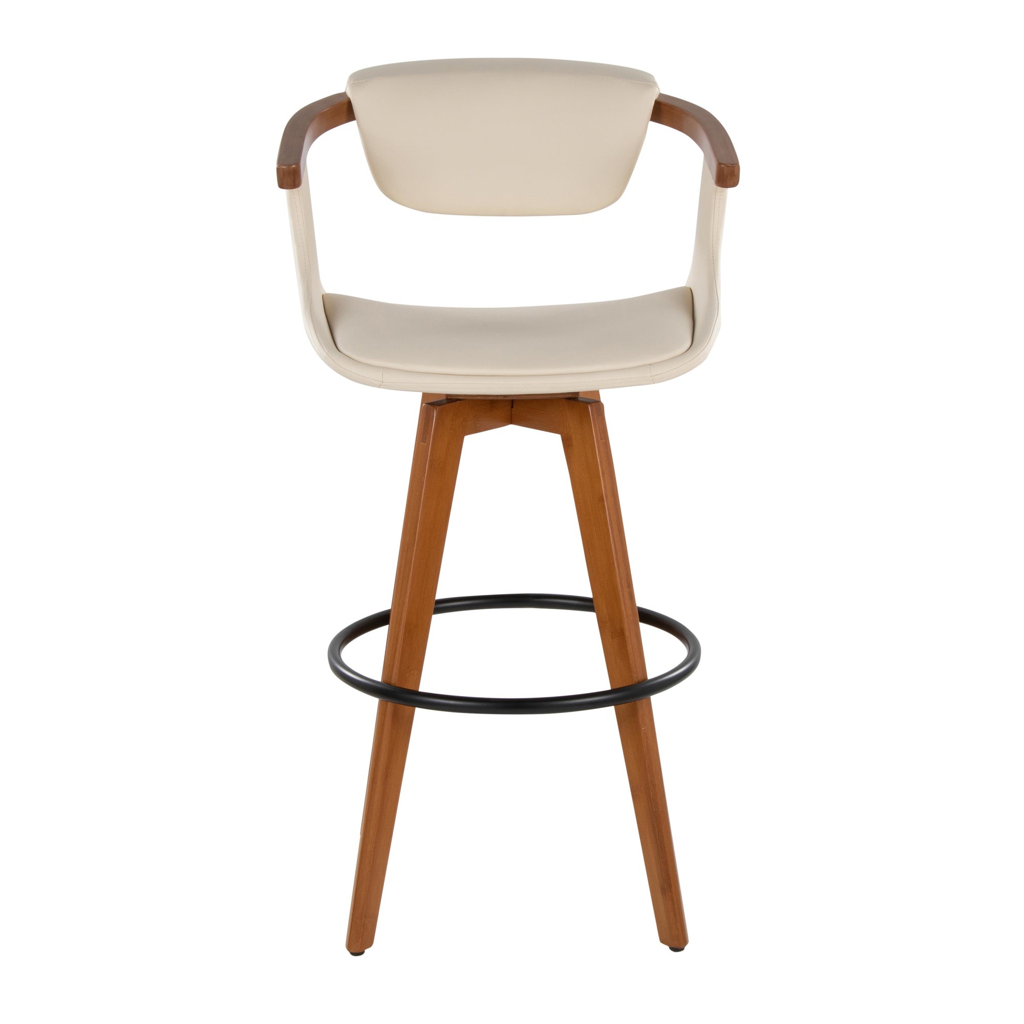 The Oracle 29-Inch Barstool seamlessly blends mid-century modern design with comfortable functionality. This fixed-height bar stool features a stylish walnut wood pressed grain bamboo frame complemented by cream faux leather upholstery, making it an ideal addition to any refined space. Enjoy the full 360-degree swivel for ease of conversation.