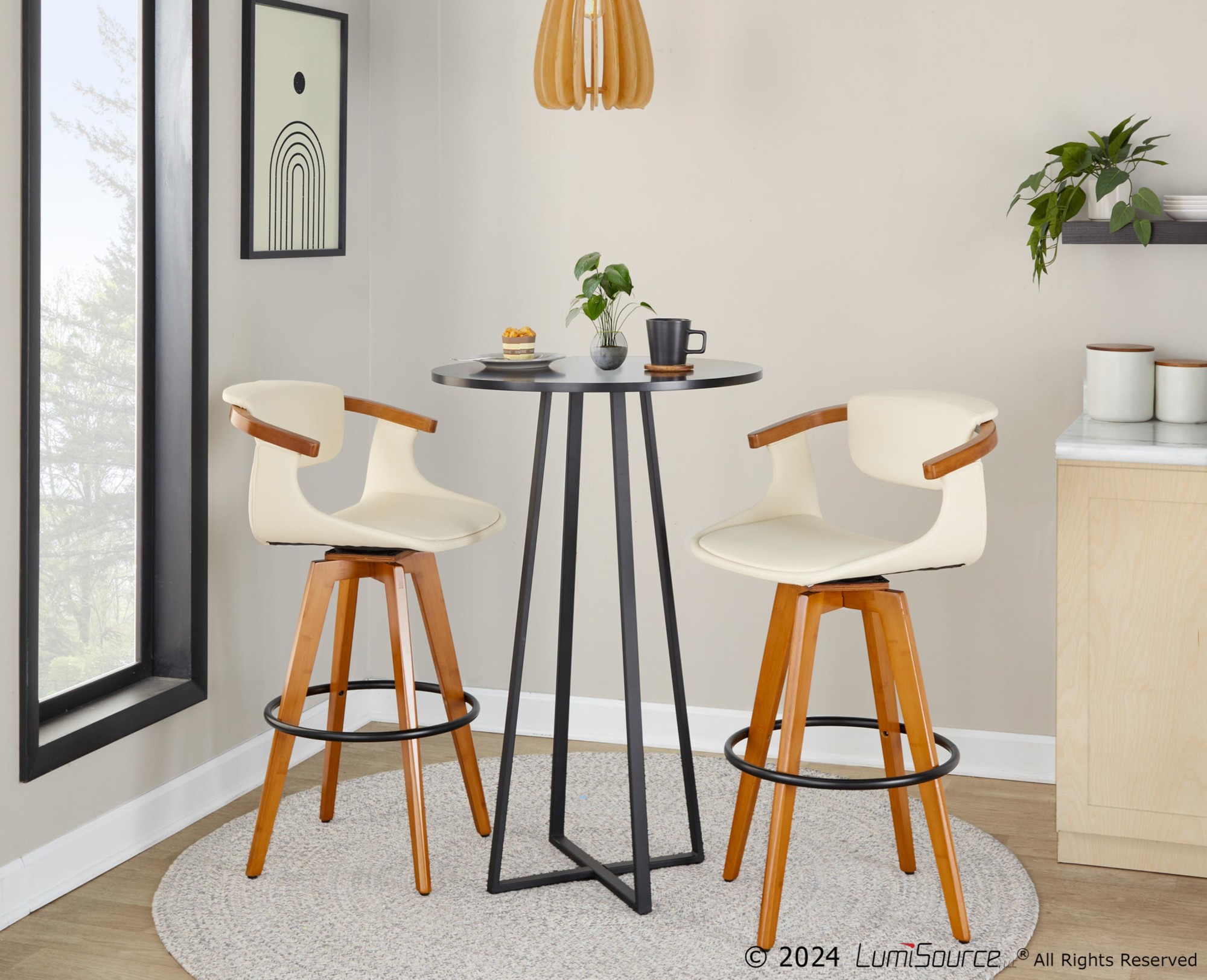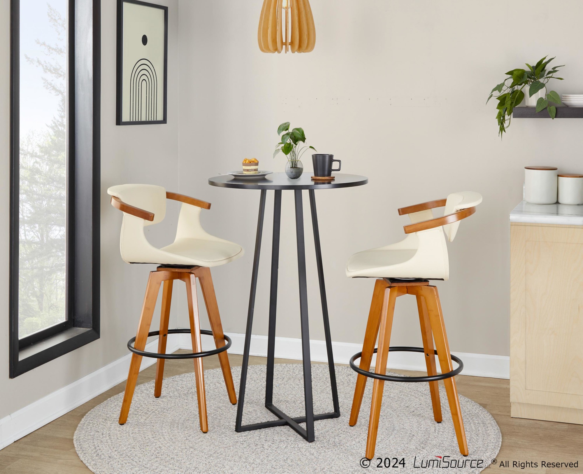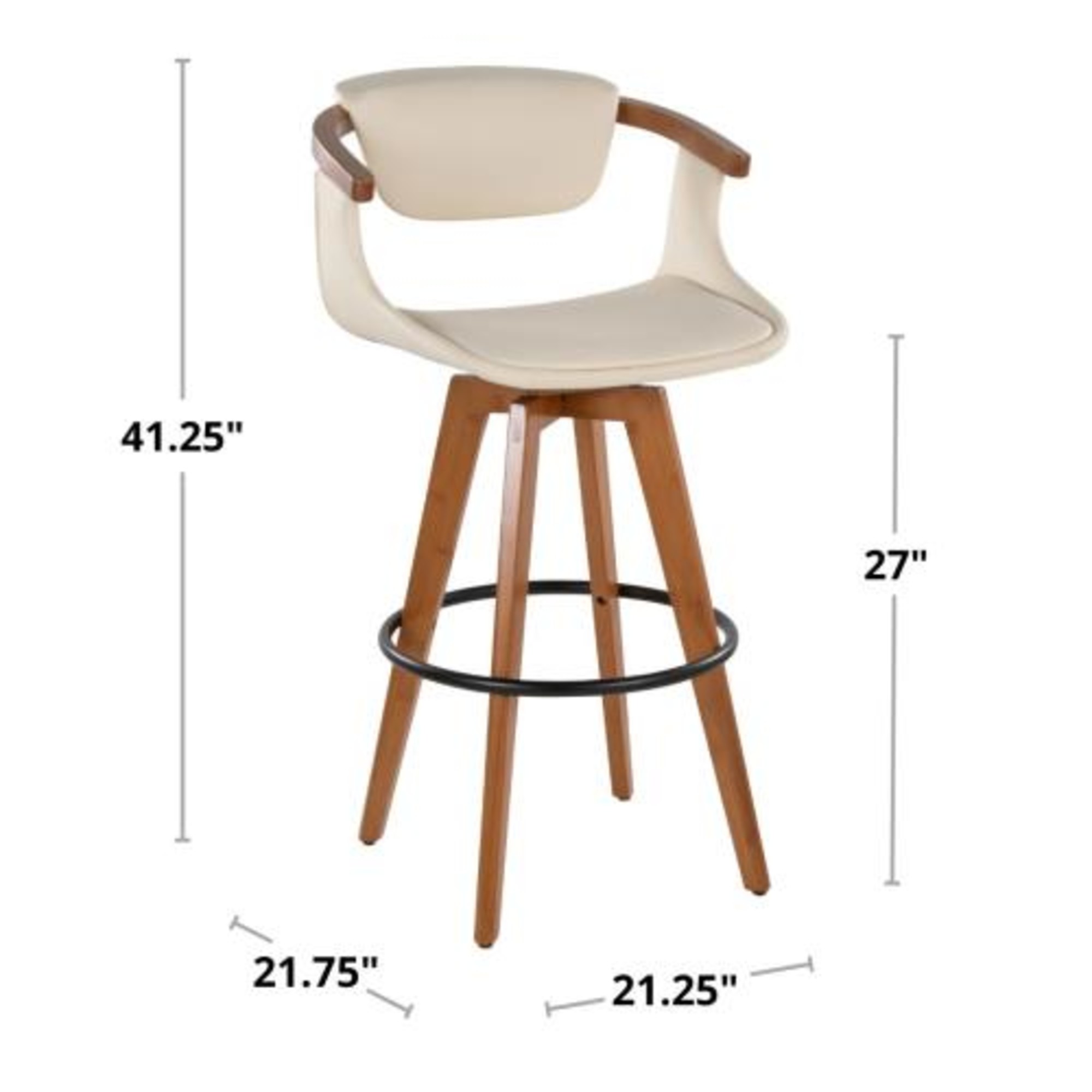 The Oracle 29-Inch Barstool seamlessly blends mid-century modern design with comfortable functionality. This fixed-height bar stool features a stylish walnut wood pressed grain bamboo frame complemented by cream faux leather upholstery, making it an ideal addition to any refined space. Enjoy the full 360-degree swivel for ease of conversation.