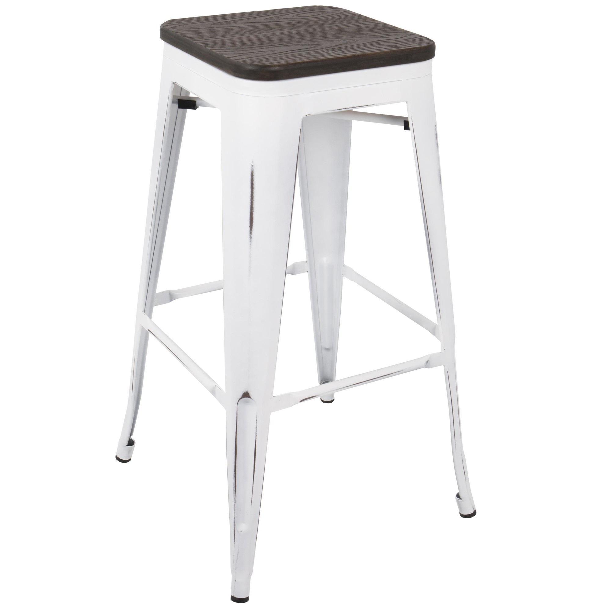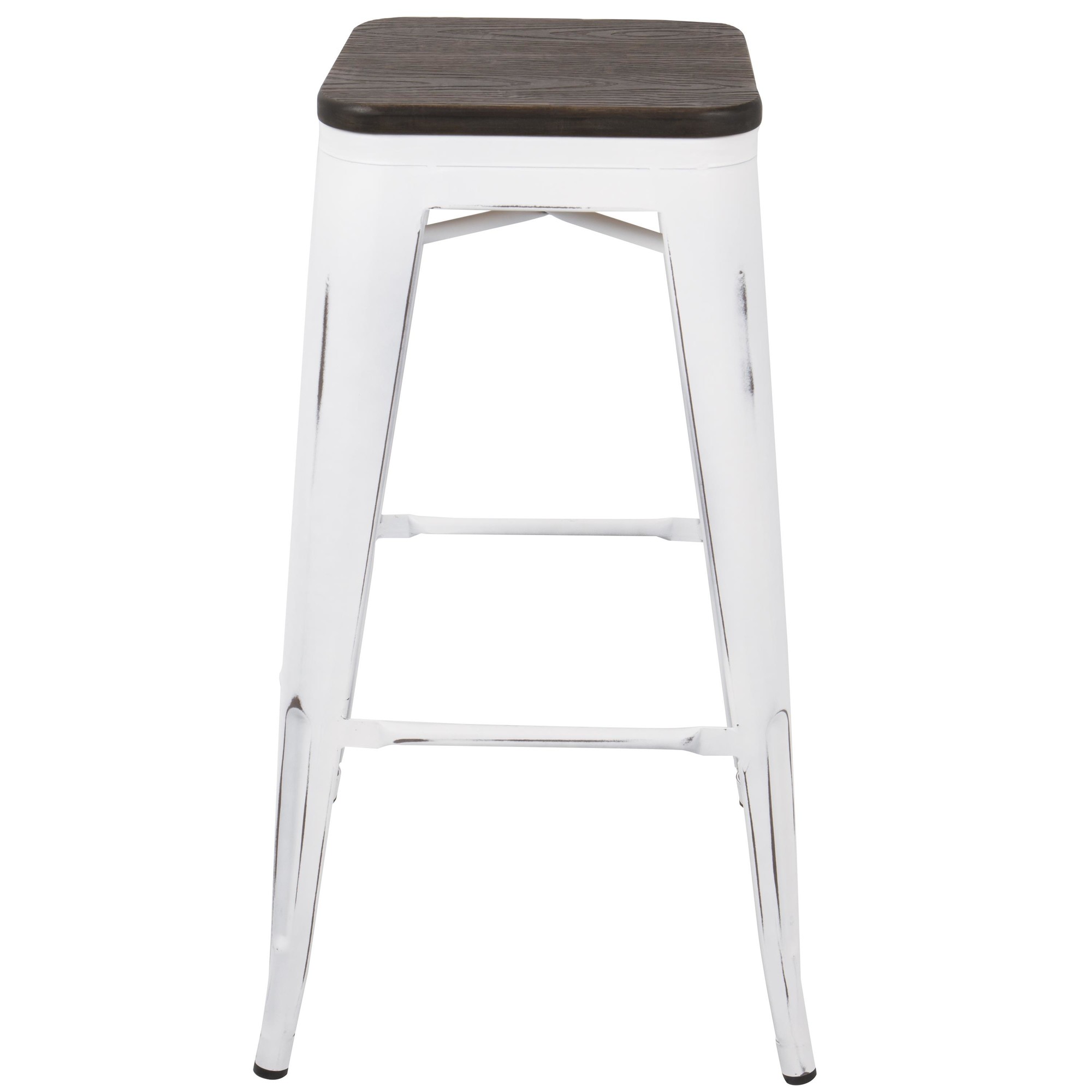 The Oregon Industrial Vintage White and Espresso Stackable Barstools bring versatile style to any space. These bar stools combine a rustic, timeworn charm with a sturdy, industrial feel. Perfect for everyday seating at your bar or as extra seating for guests! Built to last, these bar stools are both strong and lightweight. You’ll love the rustic warehouse vibe!
