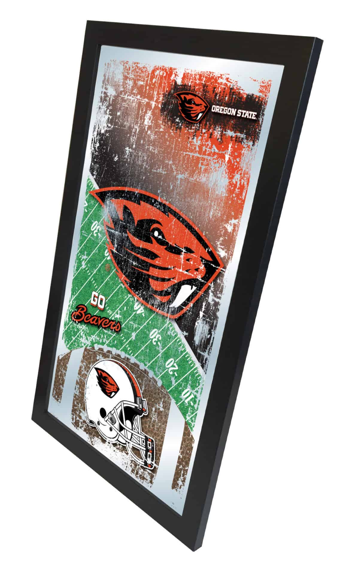 Show your school pride with this officially licensed Football Wall Mirror. Featuring a simple yet elegant design, the vibrant colors burst through the 1/8″ thick glass, beautifully highlighted by mirrored accents. The mirror is framed with a sleek black, 1 1/4″ wrapped wood frame and comes equipped with dual saw-tooth hangers for easy installation. Measuring 15″ in height and 26″ in width, this mirror is perfect for any space, whether it be your office, garage, or man cave. It’s an ideal gift for recent graduates or sports super fans, and you can take satisfaction knowing you’re purchasing a product that is proudly made in the USA.