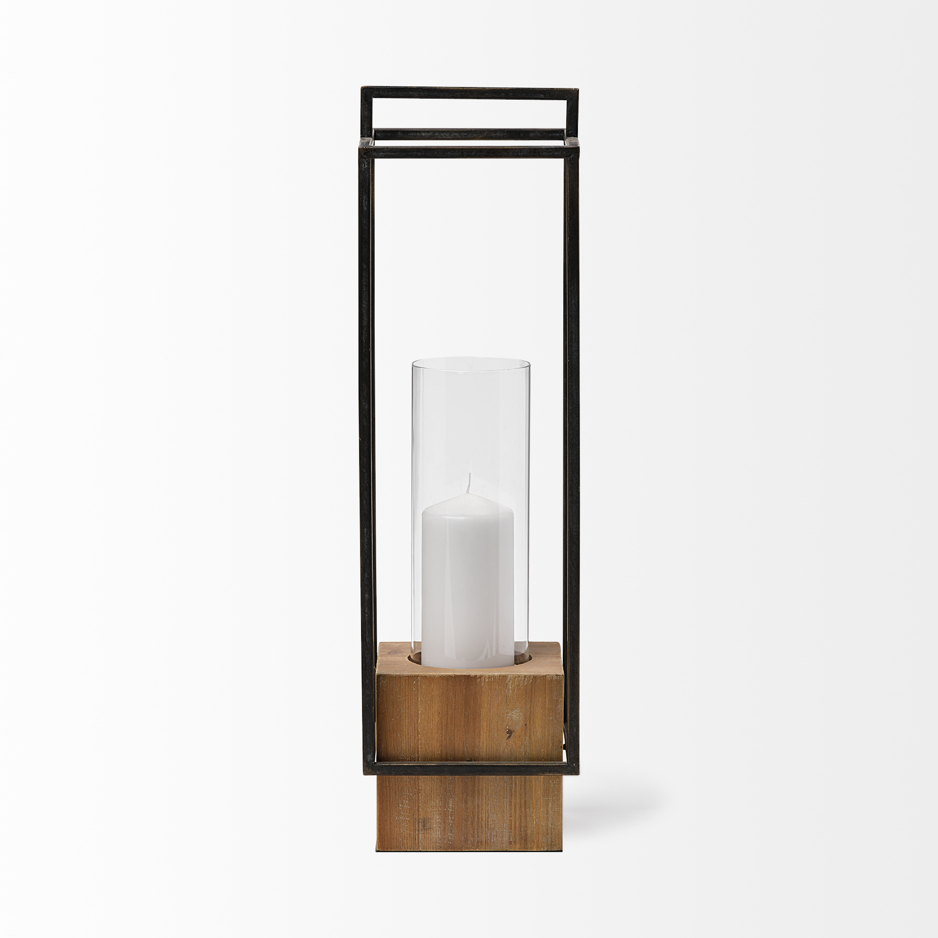 The Orionis Lantern is the perfect addition to your space! It’s a stylish lantern crafted from wood and metal, featuring a glass hurricane vase ready to hold your favorite candle. The natural brown wood base and matte-black, cage-like metal structure create a visually stunning piece. Display it solo or pair it with the smaller size for a complete set!