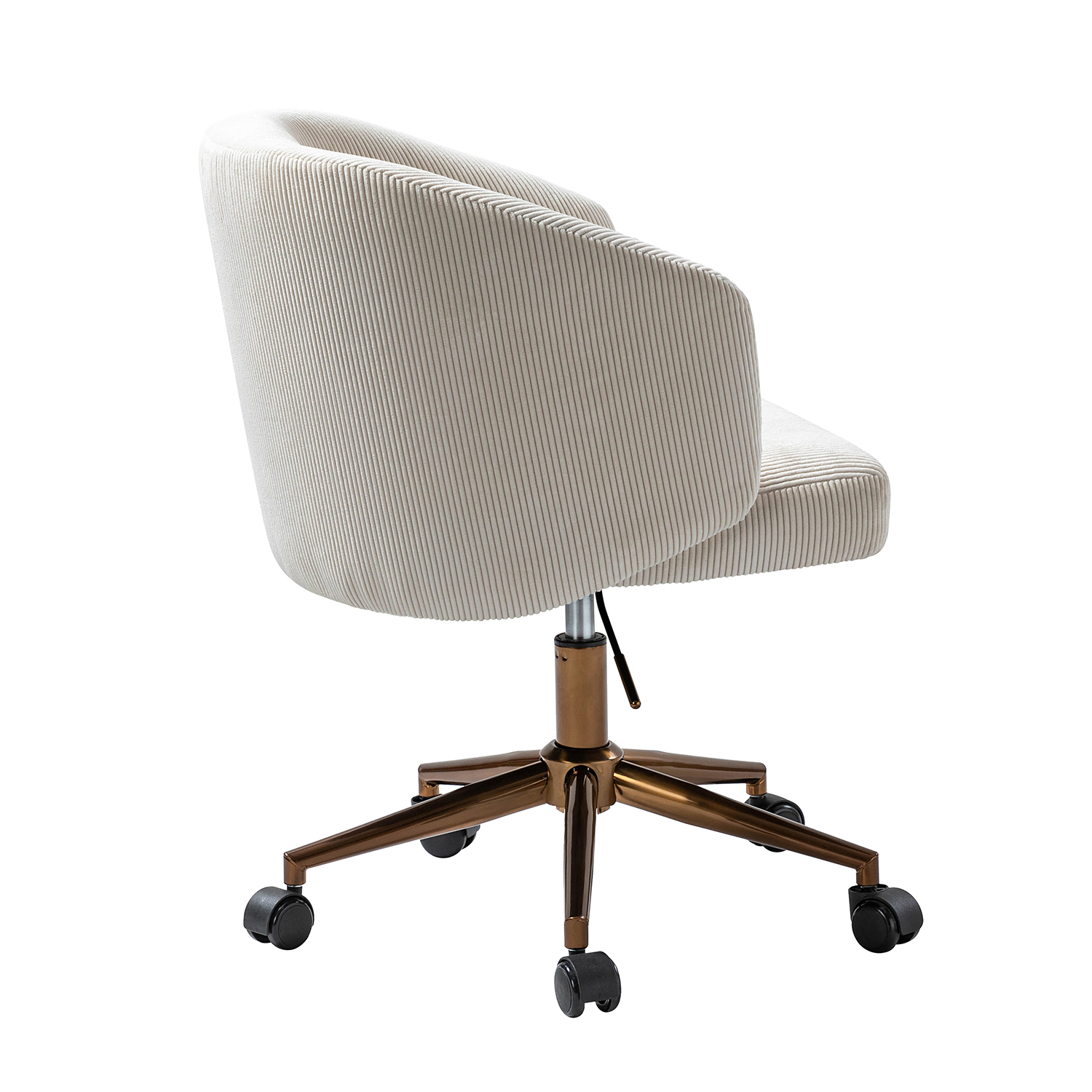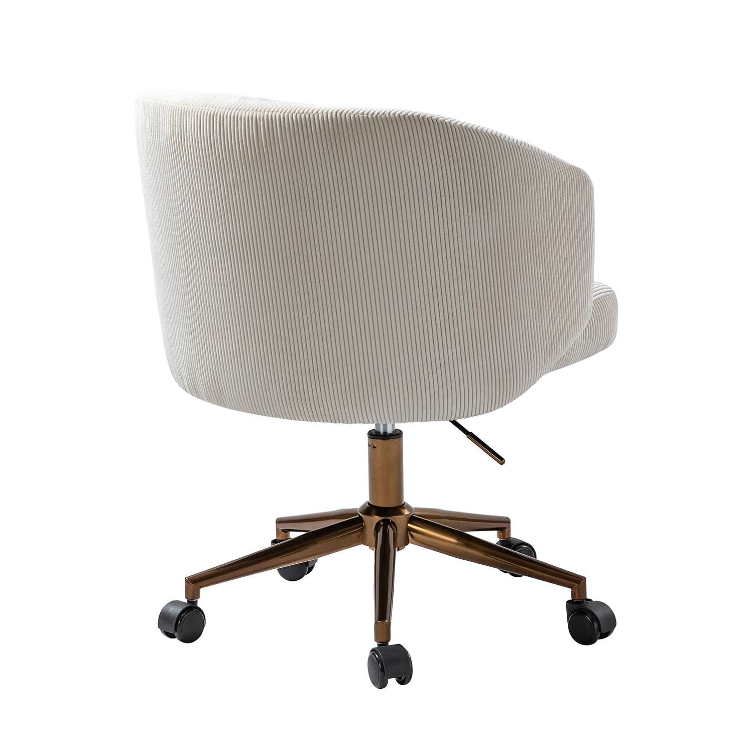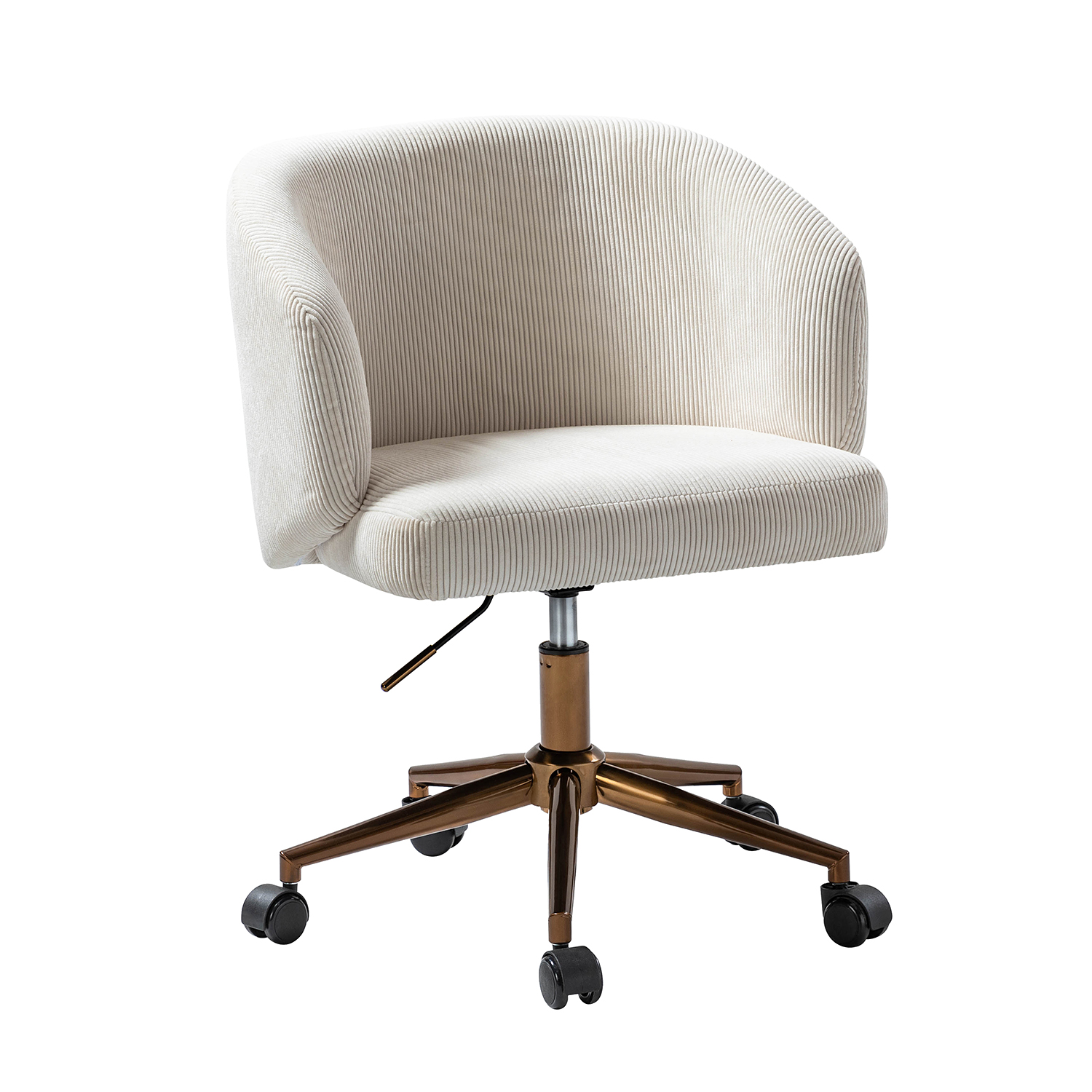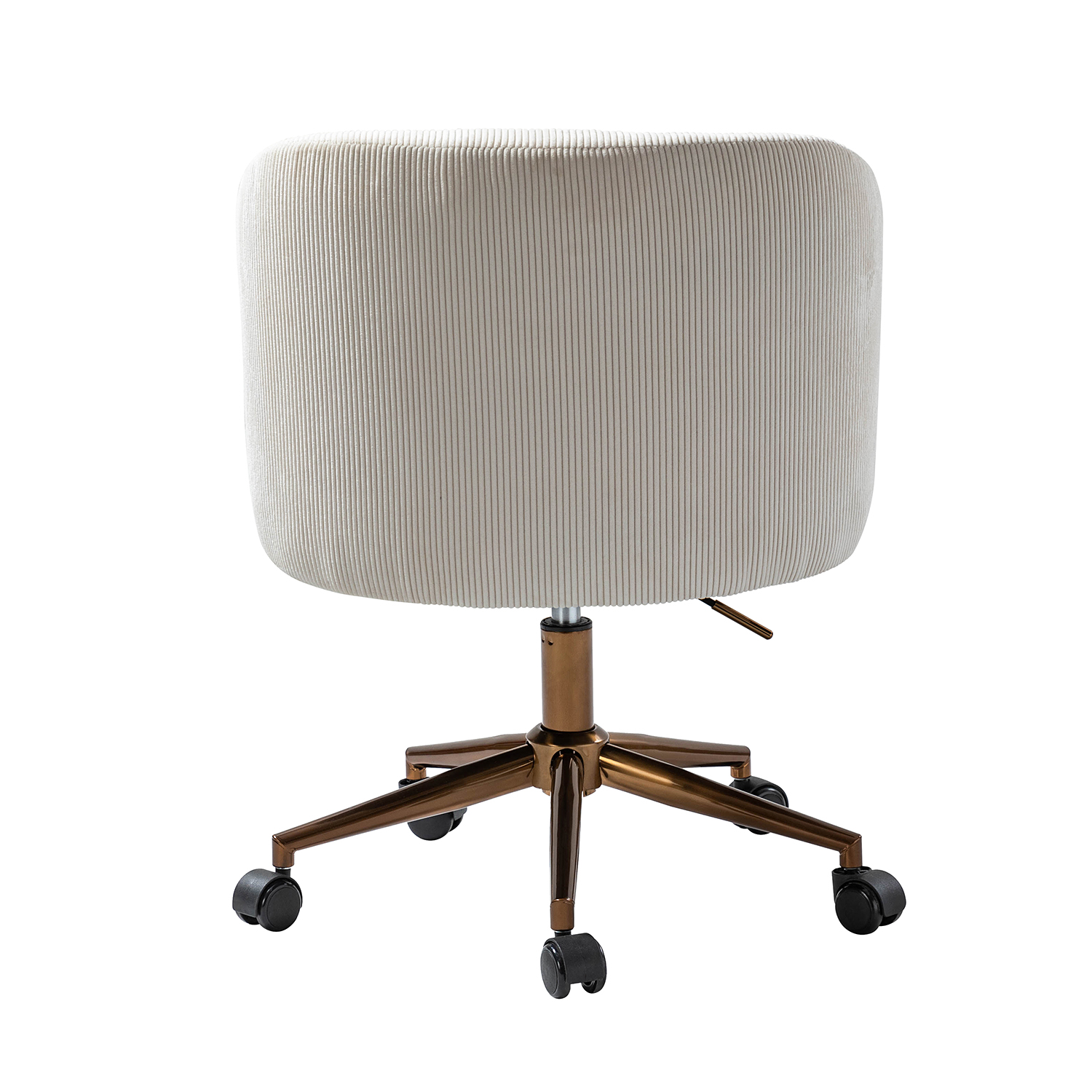 This mid-century modern office chair effortlessly enhances your workspace. Its ergonomic design ensures proper body alignment, reducing strain and providing support for your back, hips, and thighs. The chair’s stylish barrel design complements a variety of home styles. Enjoy the convenience of easy height adjustment and floor-friendly feet. The corduroy fabric is easy to clean and maintain. Perfectly suited for compact offices or home workstations, this office chair is designed for smaller spaces.