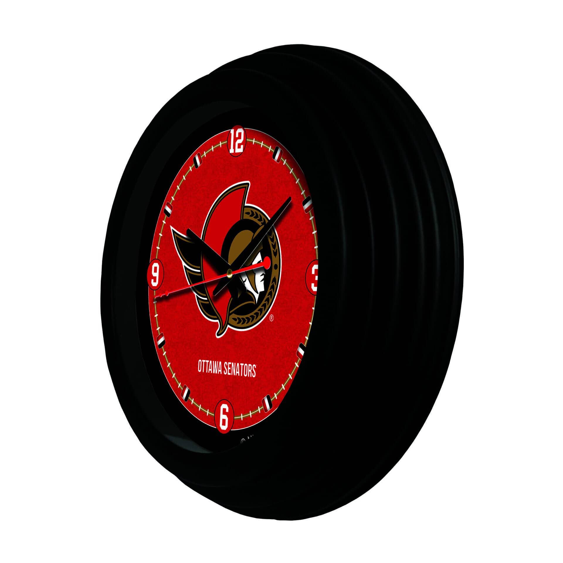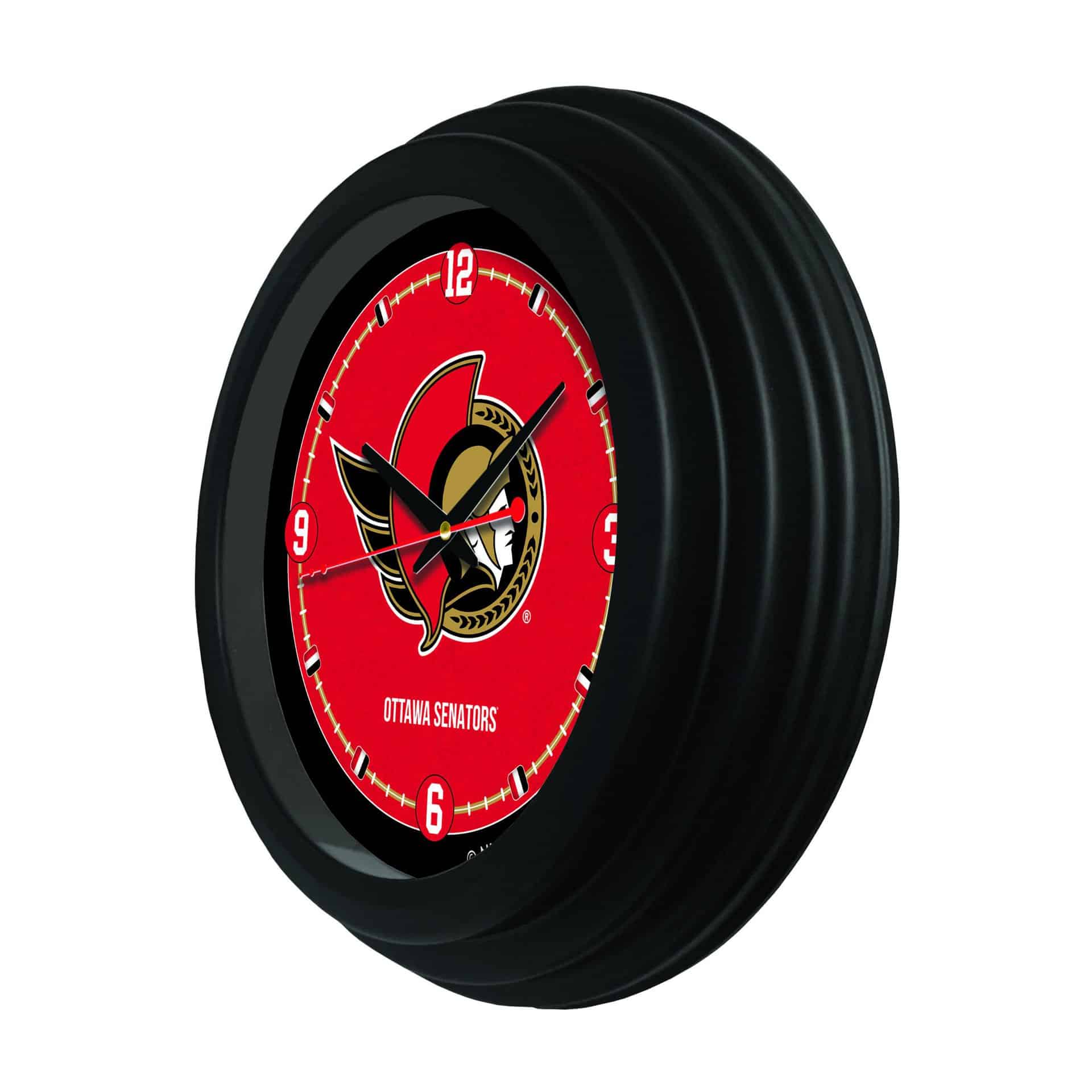 This black cased 15-Inch Traditional Logo Clock is the perfect way to show your team pride. It features vibrant, full-color digitally printed graphics that remain protected behind a glass lens face. With accurate quartz movement powered by a single AA battery (not included), this clock ensures precise timekeeping. The recessed hanger allows it to hang flat against the wall, providing a clean, finished look. Whether you’re purchasing as a gift for a sports super fan or for yourself, this clock is a great addition to any space.