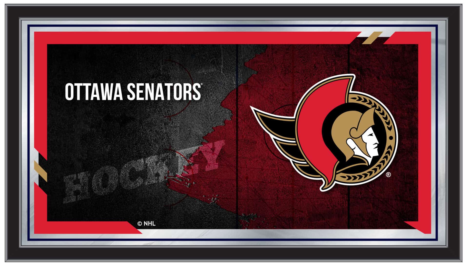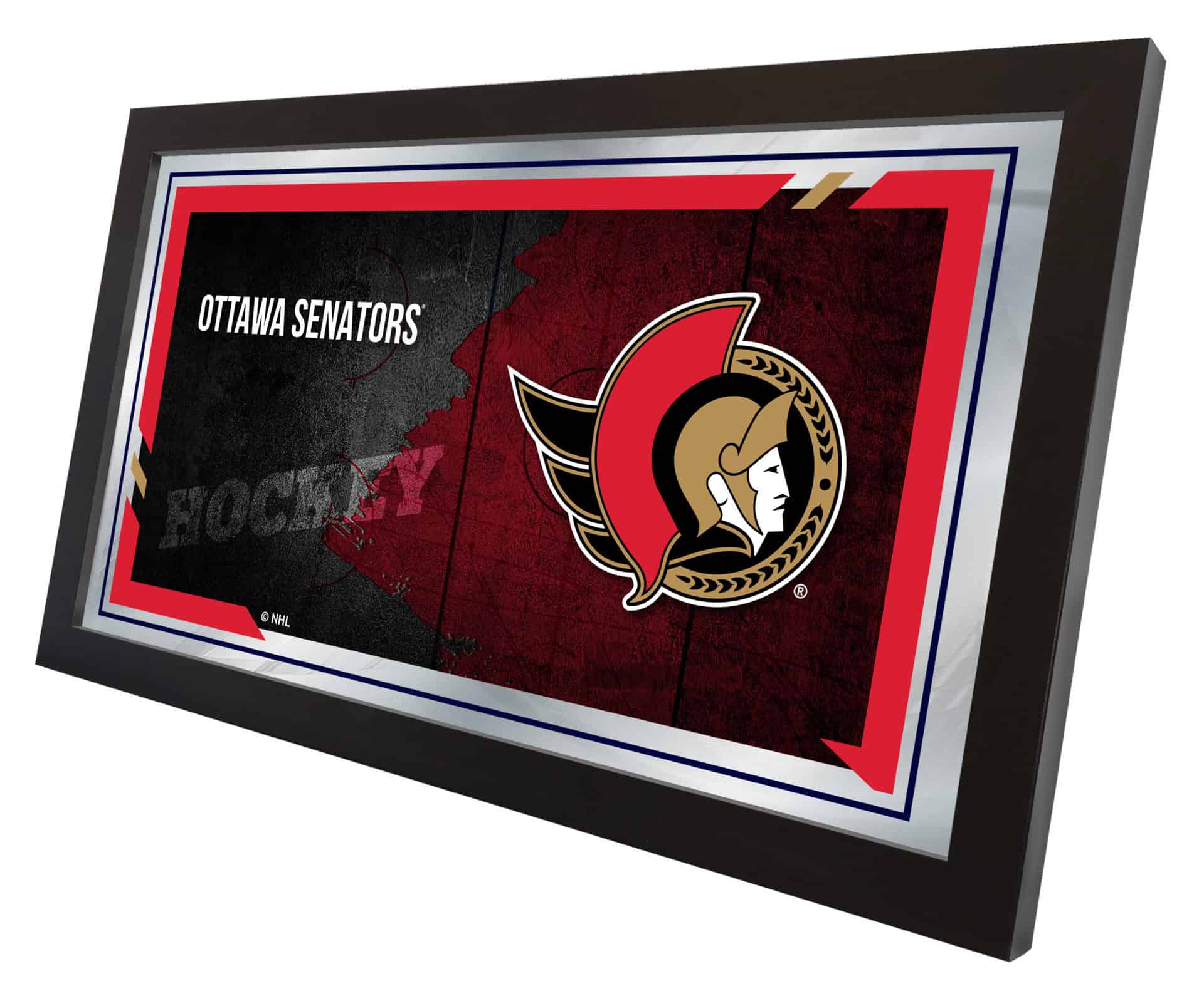 The perfect way to show your team pride, the Ottawa Senators 15×26 Hockey Collector Mirror displays your team’s symbols with a style that fits any setting. With its simple yet elegant design, vibrant colors burst through the 1/8″ thick glass and are beautifully highlighted by the mirrored accents. Framed with a black, 1 1/4″ wrapped wood frame and equipped with saw-tooth hangers for easy installation, this mirror is ideal for your office, garage, or any room in your home. Whether purchasing as a gift for a recent grad, a sports super fan, or for yourself, you can take satisfaction in owning a stylish and functional piece of decor.