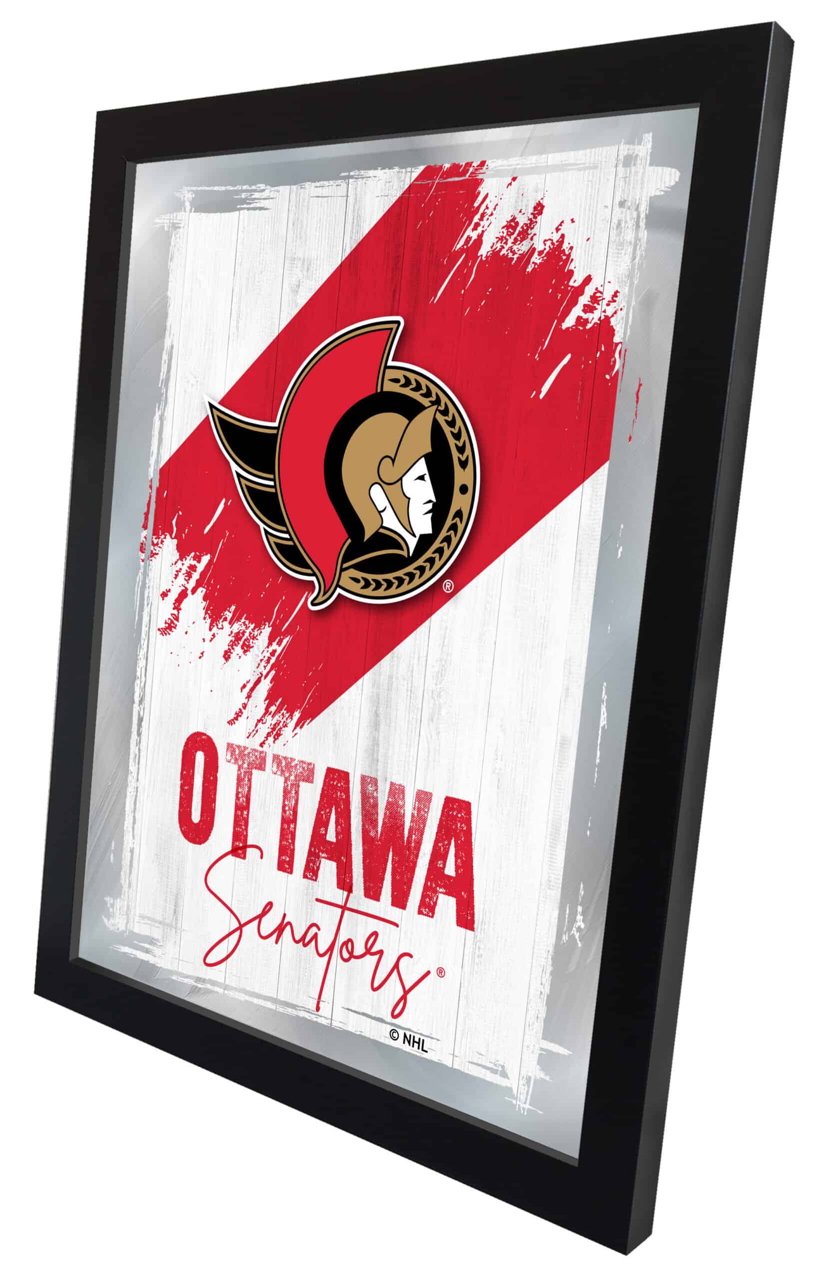 Show your team pride with this Official Licensed NHL Logo Mirror. With its simple yet elegant design, vibrant colors burst through the 1/8″ thick glass and are beautifully highlighted by mirrored accents. Framed with a black, 1 1/4″ wrapped wood frame and equipped with saw tooth hangers, this 17″ (W) x 22″ (H) mirror is perfect for your office, garage, or any room in your home. Whether you’re purchasing it as a gift for a superfan or for yourself, you can take satisfaction in knowing you’re choosing a mirror that embodies quality craftsmanship.
