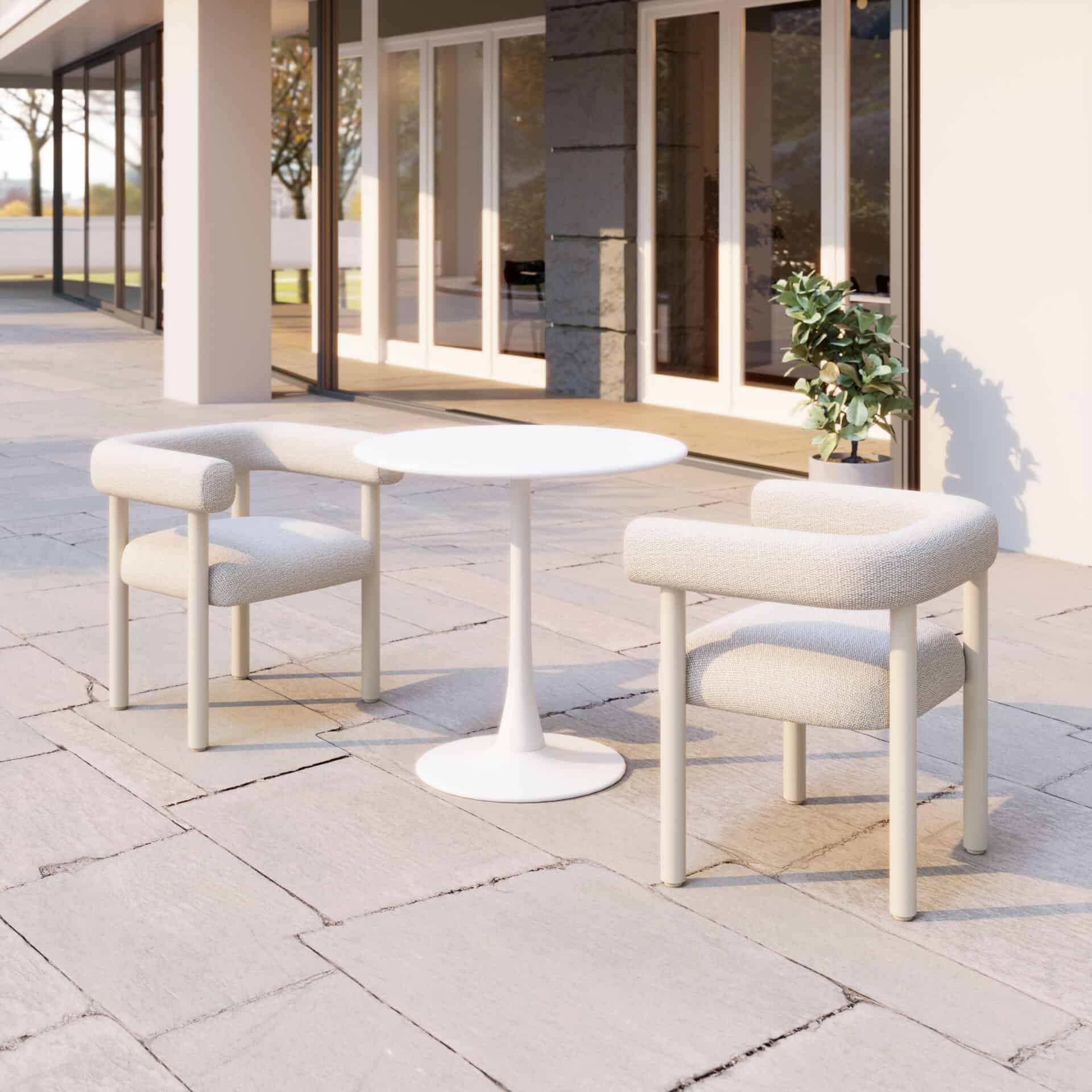 The Outdoor White Dining Chairs are designed to bring both style and functionality to your outdoor spaces. Featuring a sturdy aluminum frame with a weather-resistant finish, these chairs are built to withstand the elements while maintaining their sleek appearance. Perfect for patio dining or enhancing your man cave’s dining area, this set of two chairs offers a blend of durability, comfort, and contemporary design. With minimal maintenance required, these chairs provide a hassle-free solution for outdoor seating.