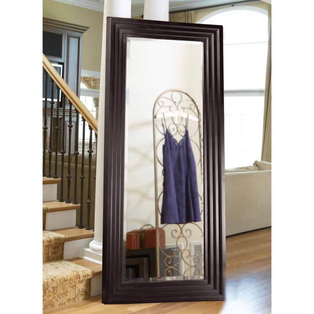 Enhance your space with the Oversized Espresso Wood Frame Full Length Floor Mirror, a perfect blend of modern design and functionality. Its oversized nature makes it ideal for creating the illusion of more space or amplifying natural light in any room. The sturdy wood frame with a deep espresso brown finish adds a touch of sophistication to your décor, making it an excellent addition to any man cave or living area.