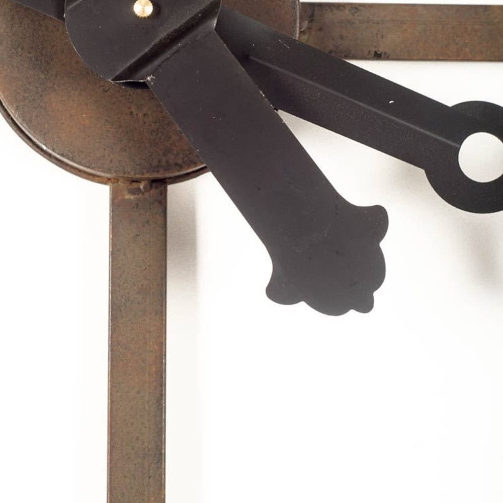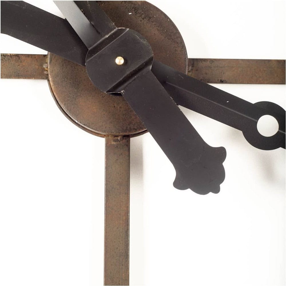 - Open-Back Design: Showcases welded iron Roman numeral markings for an industrial flair.