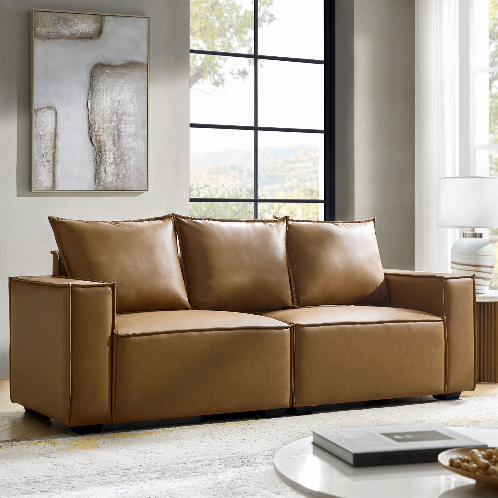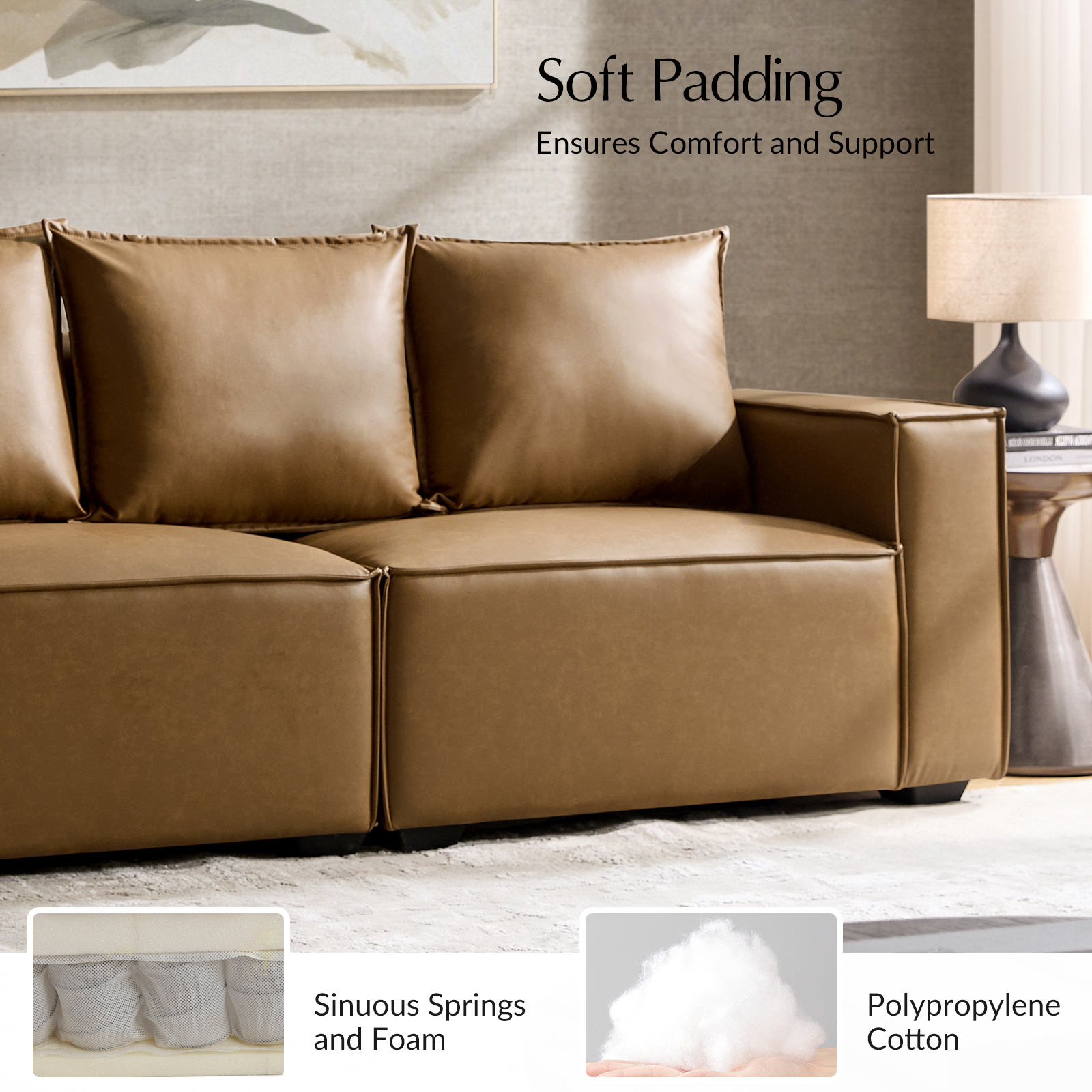 This modern sofa is the perfect addition to any contemporary living space! With its sleek lines and minimalist design, it brings understated elegance to your home. Sink into the generously filled cushions and enjoy superior comfort and support. Choose between two premium upholstery options to match your unique style and enjoy the added touch of sophistication with the included throw pillows.