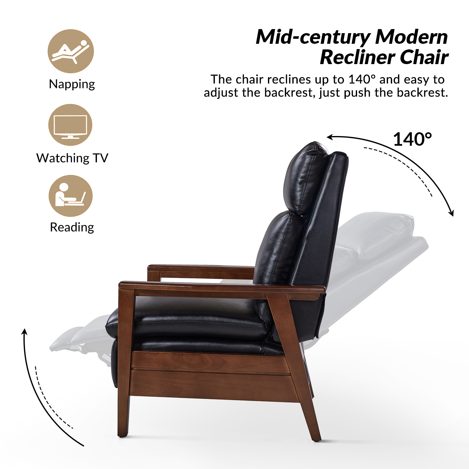 Be the first to review “Patrick Black Vegan Leather Mid-Century Modern Manual Recliner”