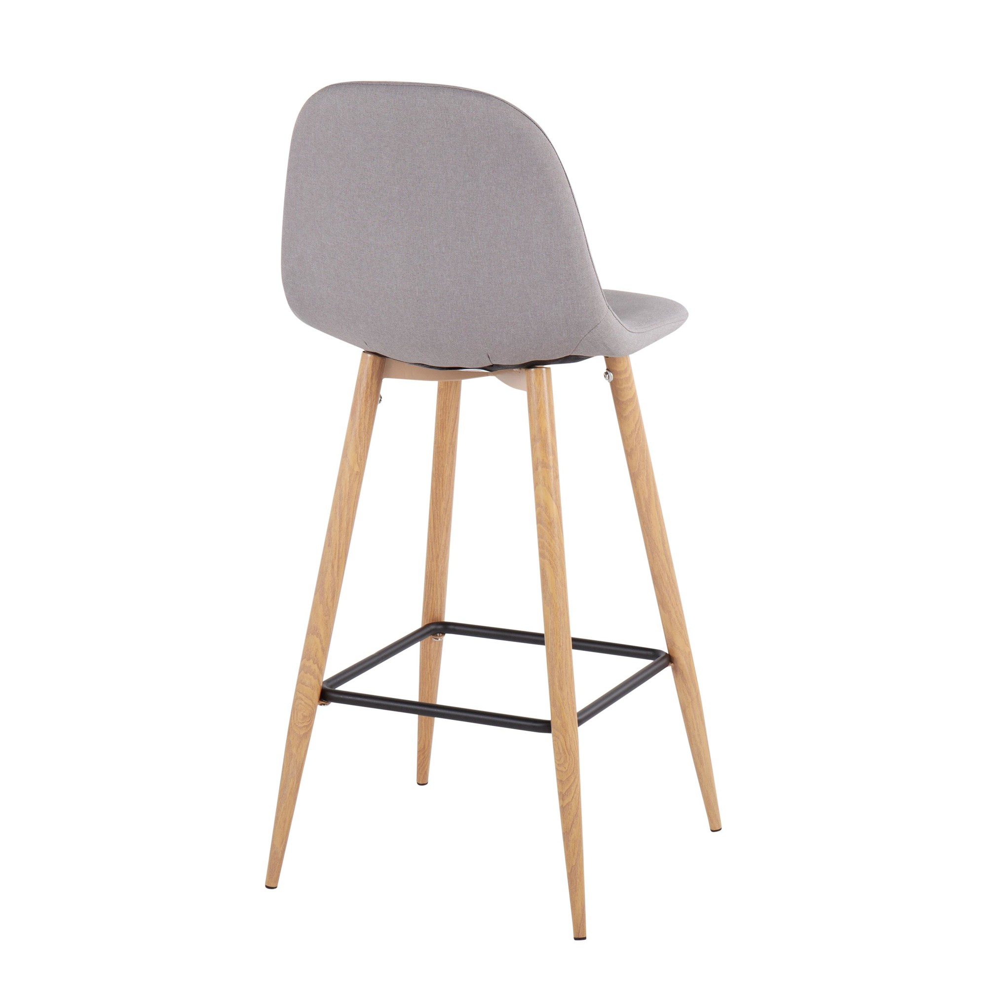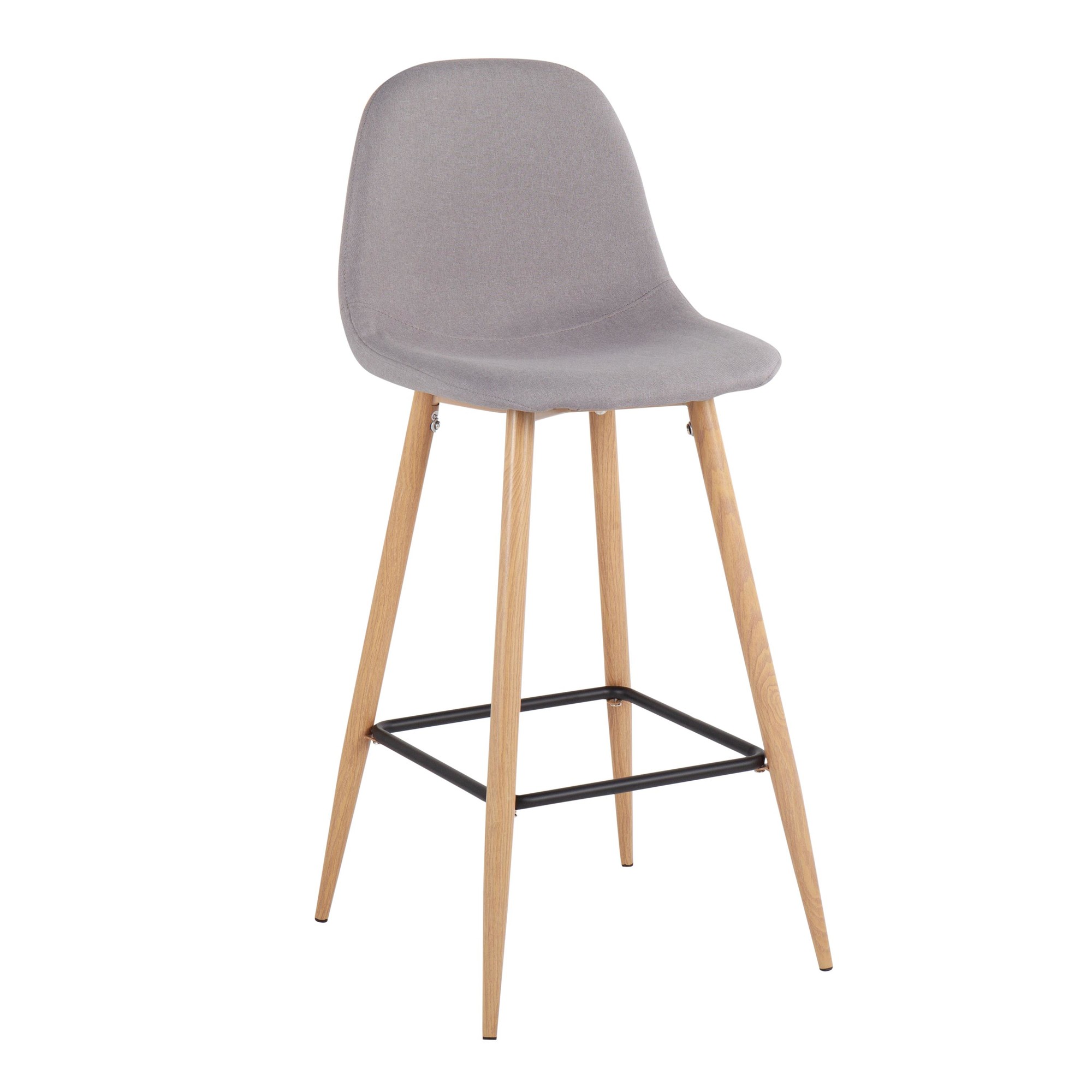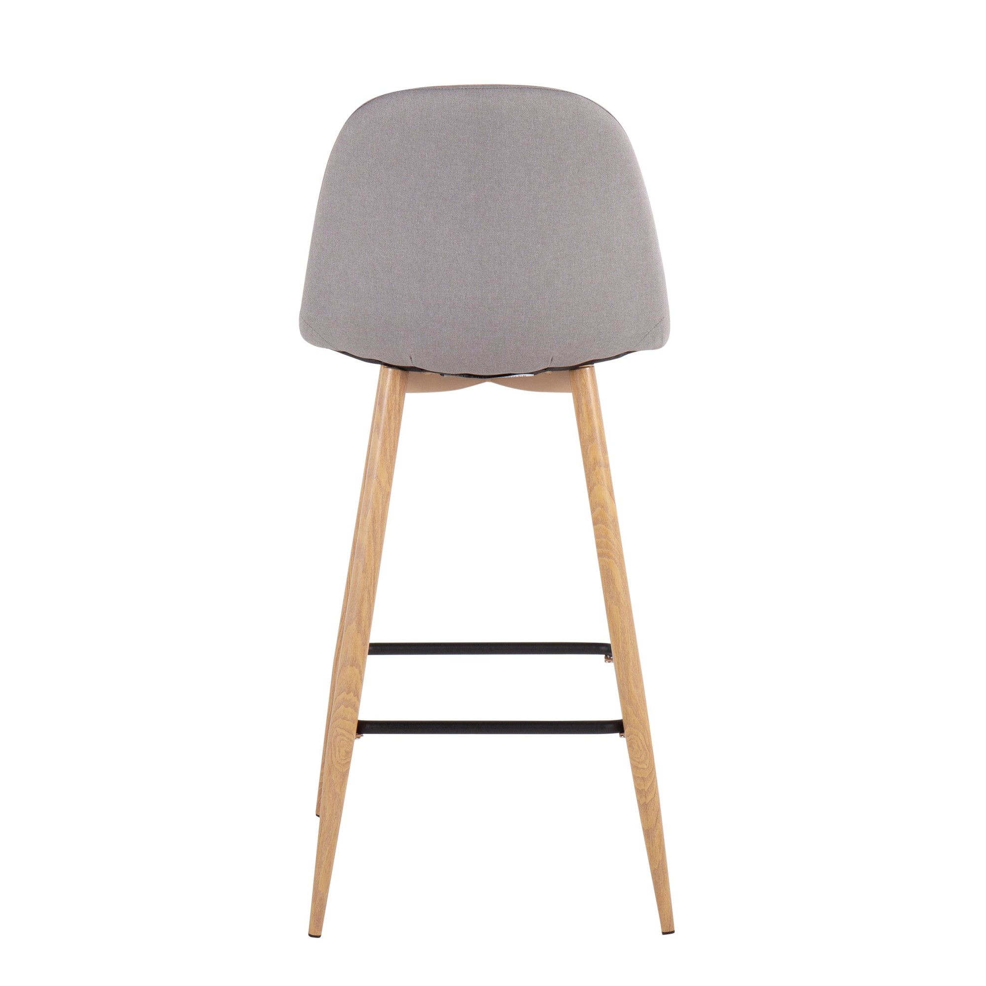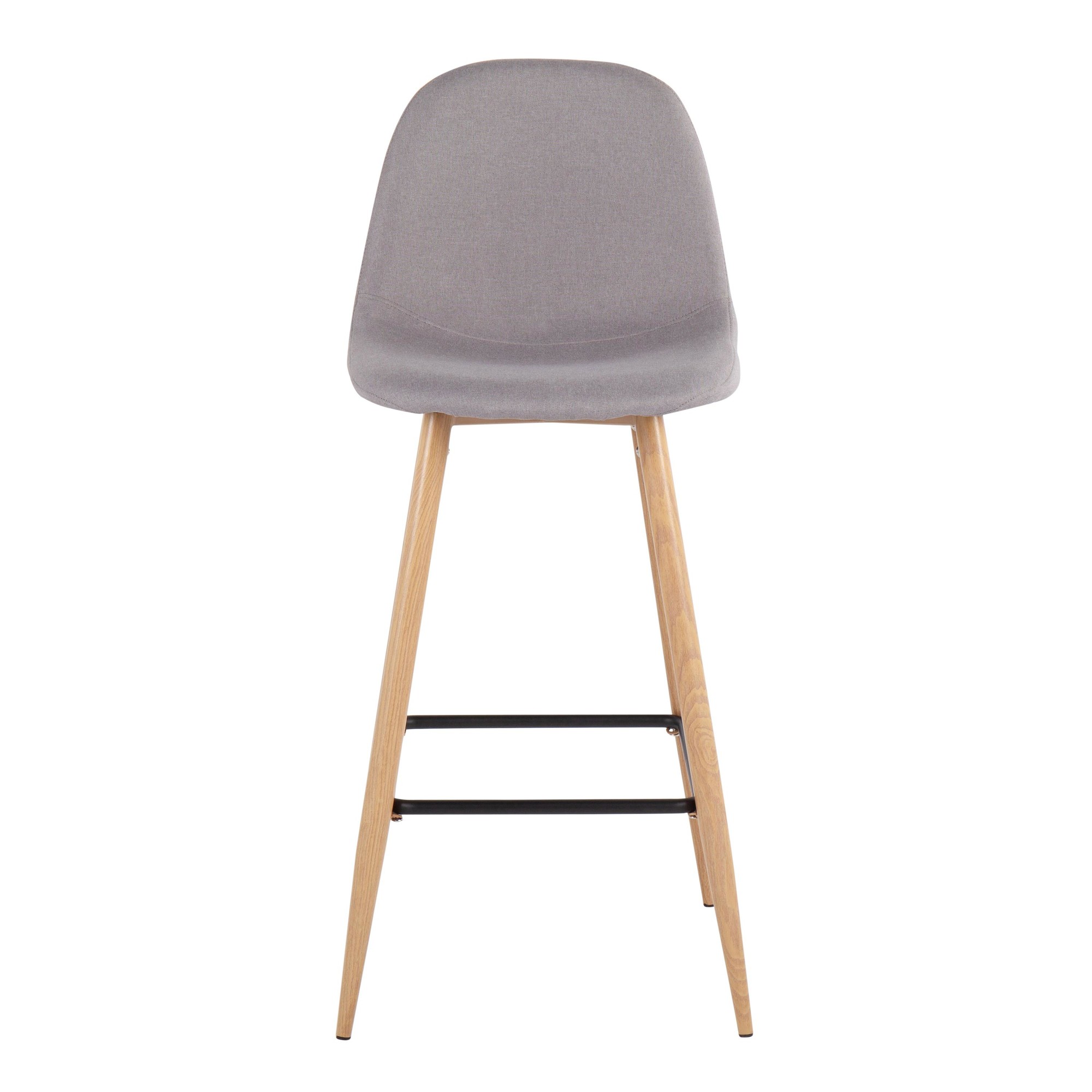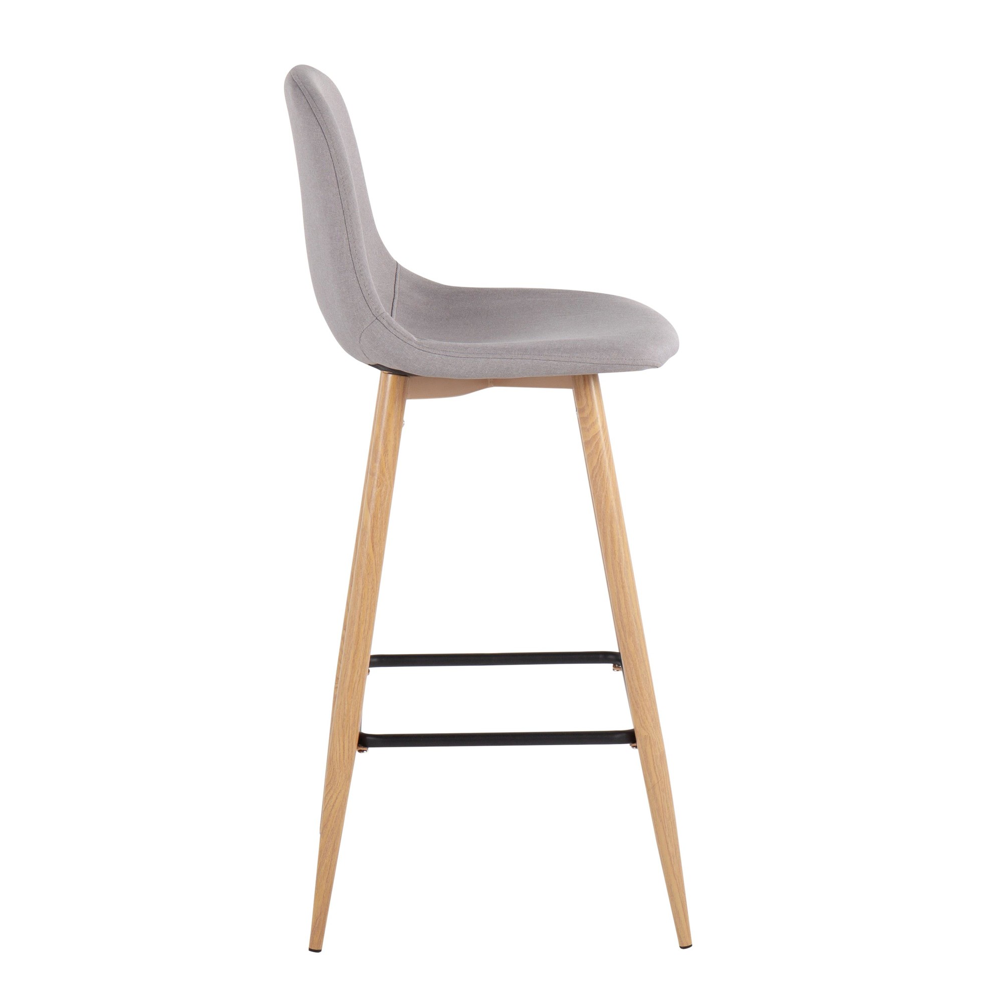 The Pebble Bar Stool adds casual comfort to any bar or counter area. Its simplistic design is enhanced by a sturdy steel frame, elegantly tapered legs, and a comfortable upholstered seat. Available in a light grey fabric, this bar stool effortlessly complements a variety of decors. Sold in pairs, these stools are perfect for creating a cohesive and inviting seating arrangement.