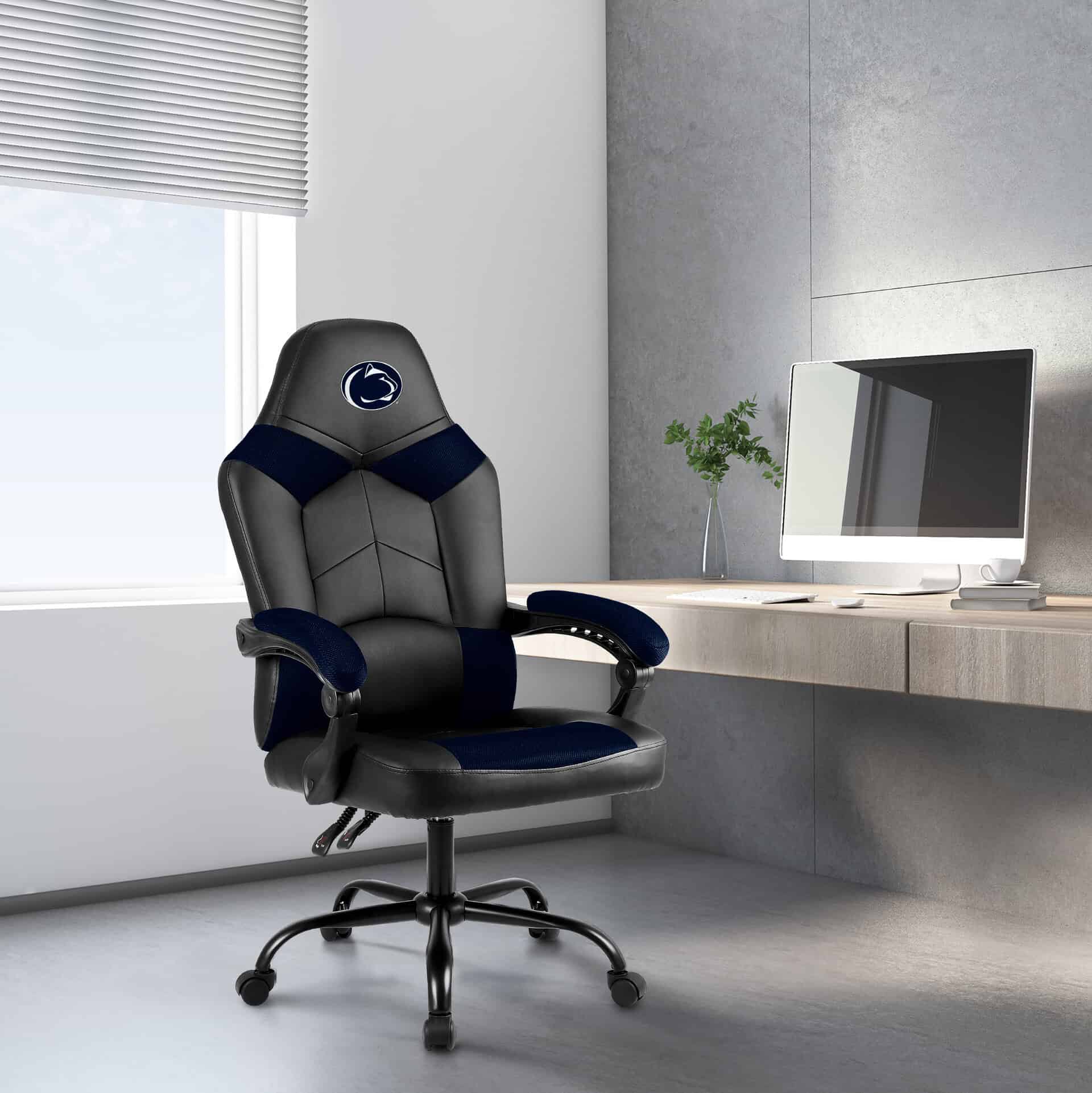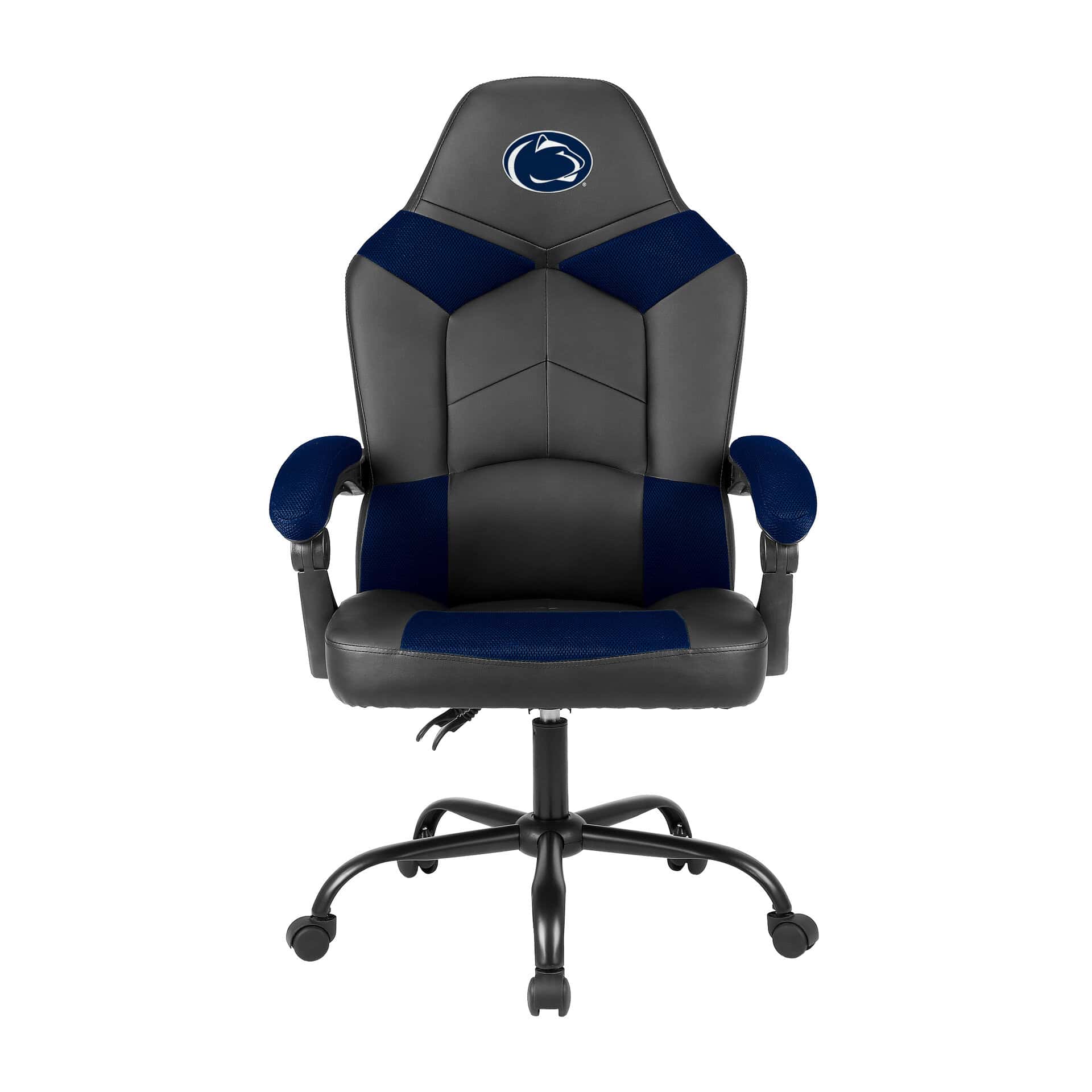 Experience ultimate comfort while working or gaming with the Penn State University Oversized Office Chair. This chair boasts a large seat and adjustable back height, providing a customized fit. A unique storage pouch on the back keeps your iPad, controller, and headphones within easy reach. Built with a sturdy steel base and gas lift system, this chair is both durable and adjustable. Show off your team pride with vibrant team colors and embroidered logos.