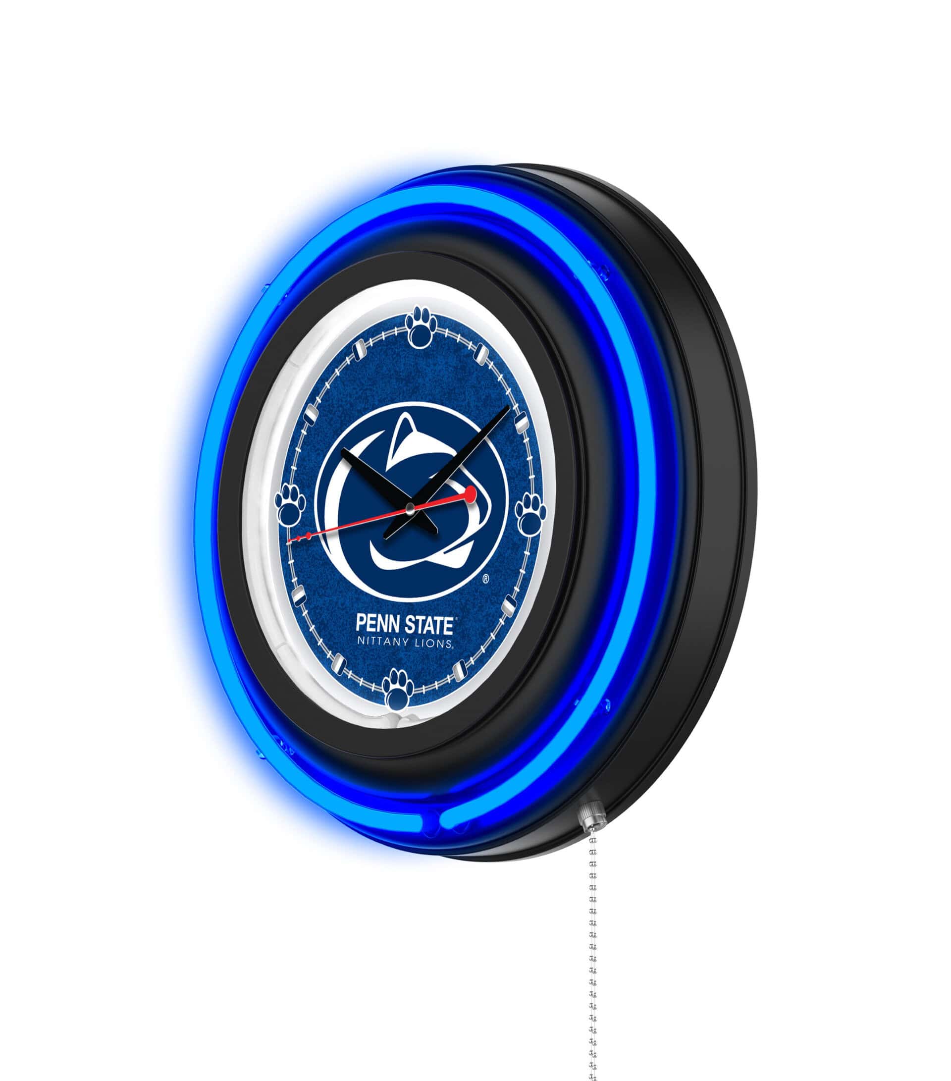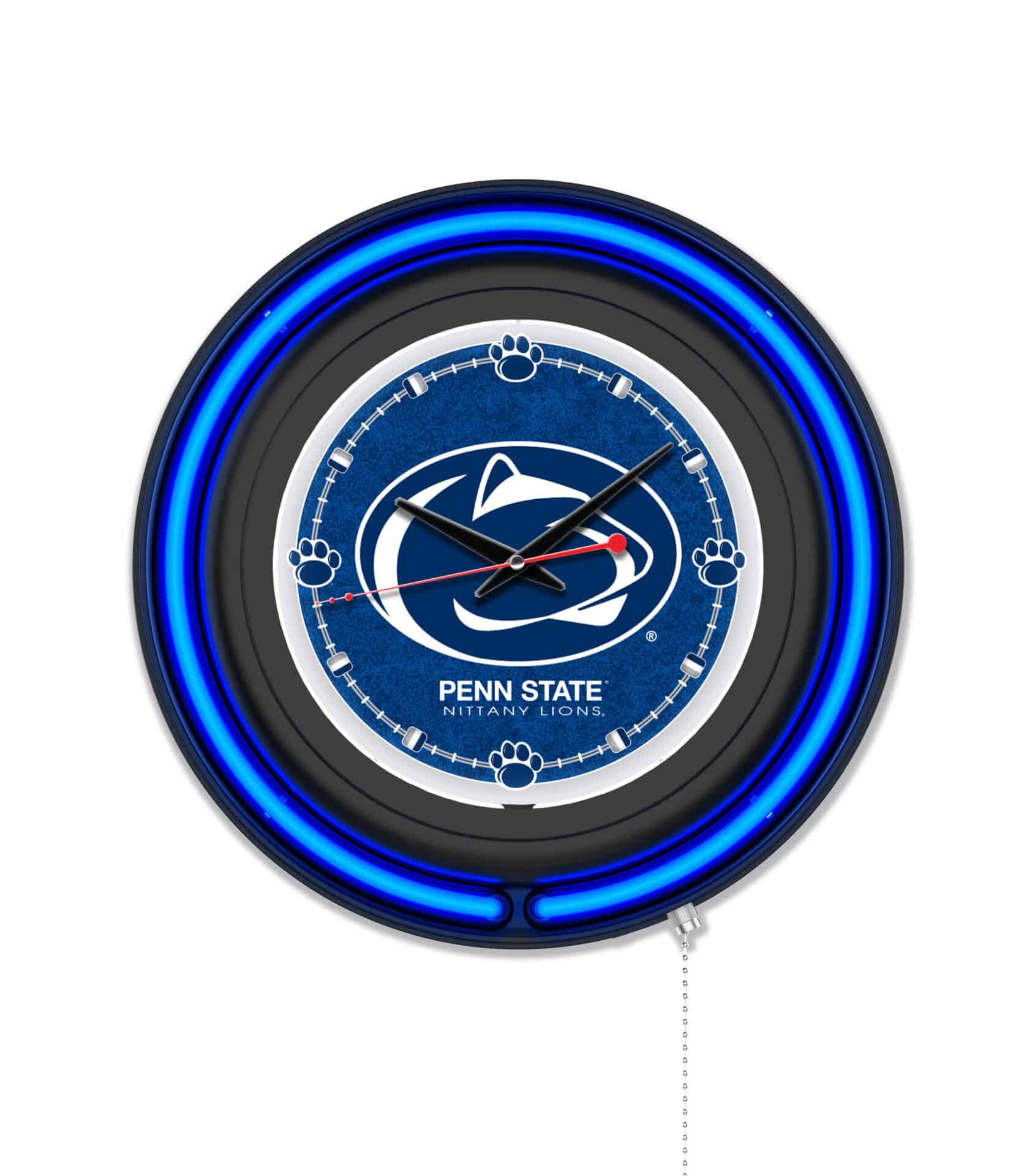 The Pennsylvania State University 15-Inch Neon Logo Clock in Black is the ultimate addition to any fan’s space, showcasing school pride with a stunning design. Featuring a striking black casing and a vibrant neon outer ring, this clock not only tells time but also adds a dynamic visual element to your decor. The clock face is illuminated by a brilliant white inner neon ring, making it a perfect statement piece for your man cave, game room, or office.