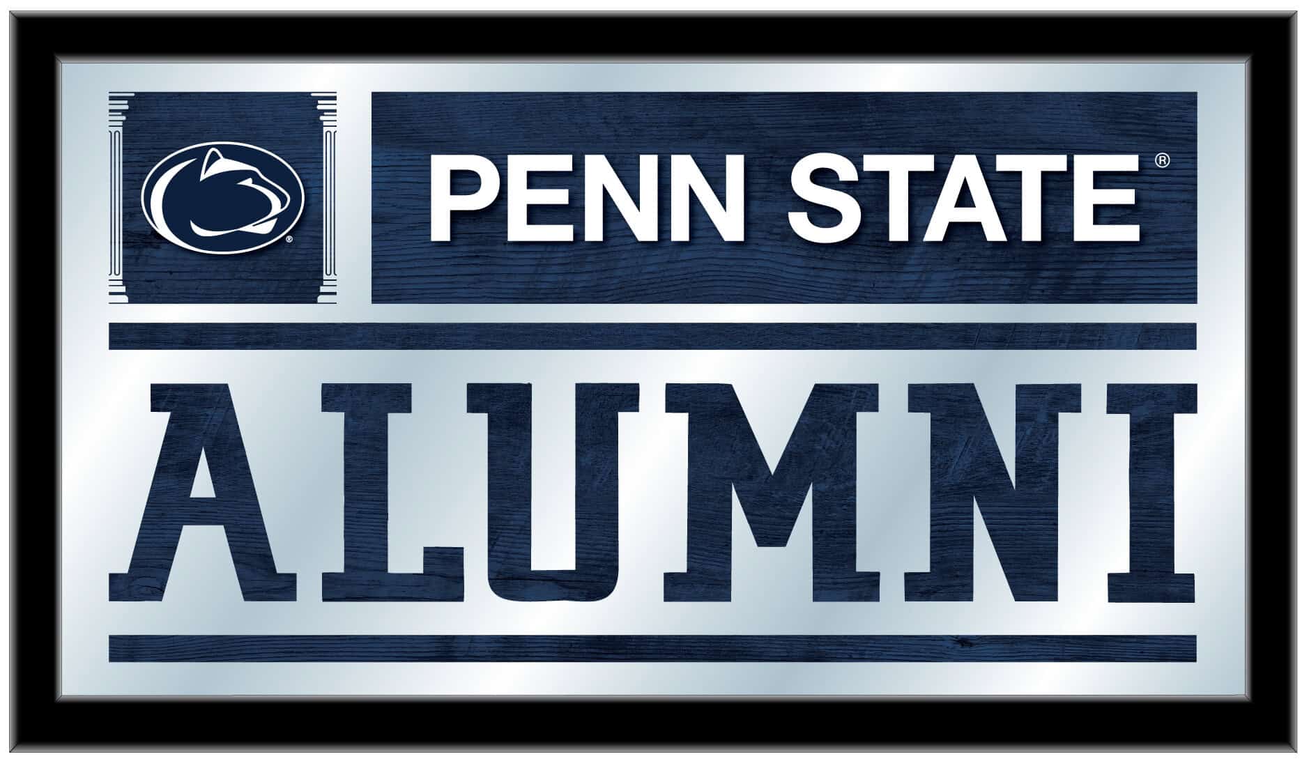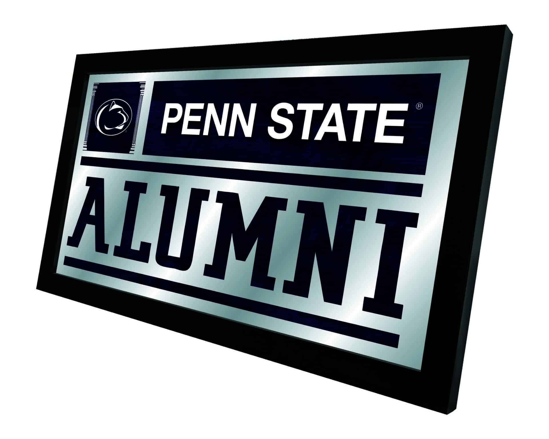 Show your school pride with the Pennsylvania State University 26×15 Alumni Wall Mirror. With its simple yet elegant design, this mirror beautifully showcases your school colors through the 1/8″ thick glass, complemented by mirrored accents. The mirror is framed in a black 1 1/4″ wrapped wood frame featuring saw tooth hangers, making it an ideal addition to your office, garage, or any room in your home. This piece makes a perfect gift for recent graduates or a stylish addition for yourself, assuring you of its quality and craftsmanship.
