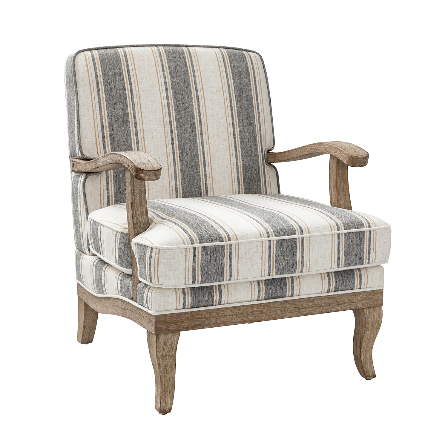 - Farmhouse Style: Features striking stripes on the back and seat cushions, perfectly displaying a streamlined silhouette and romantic decor.