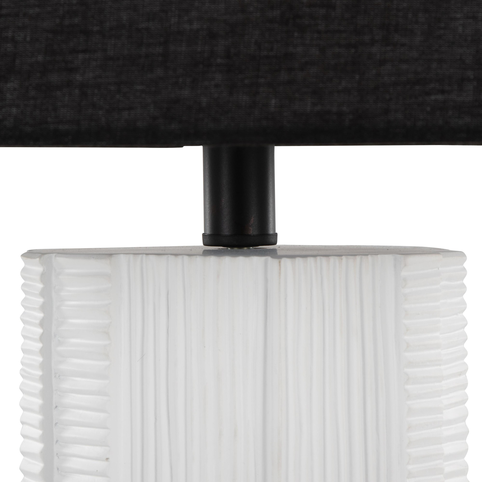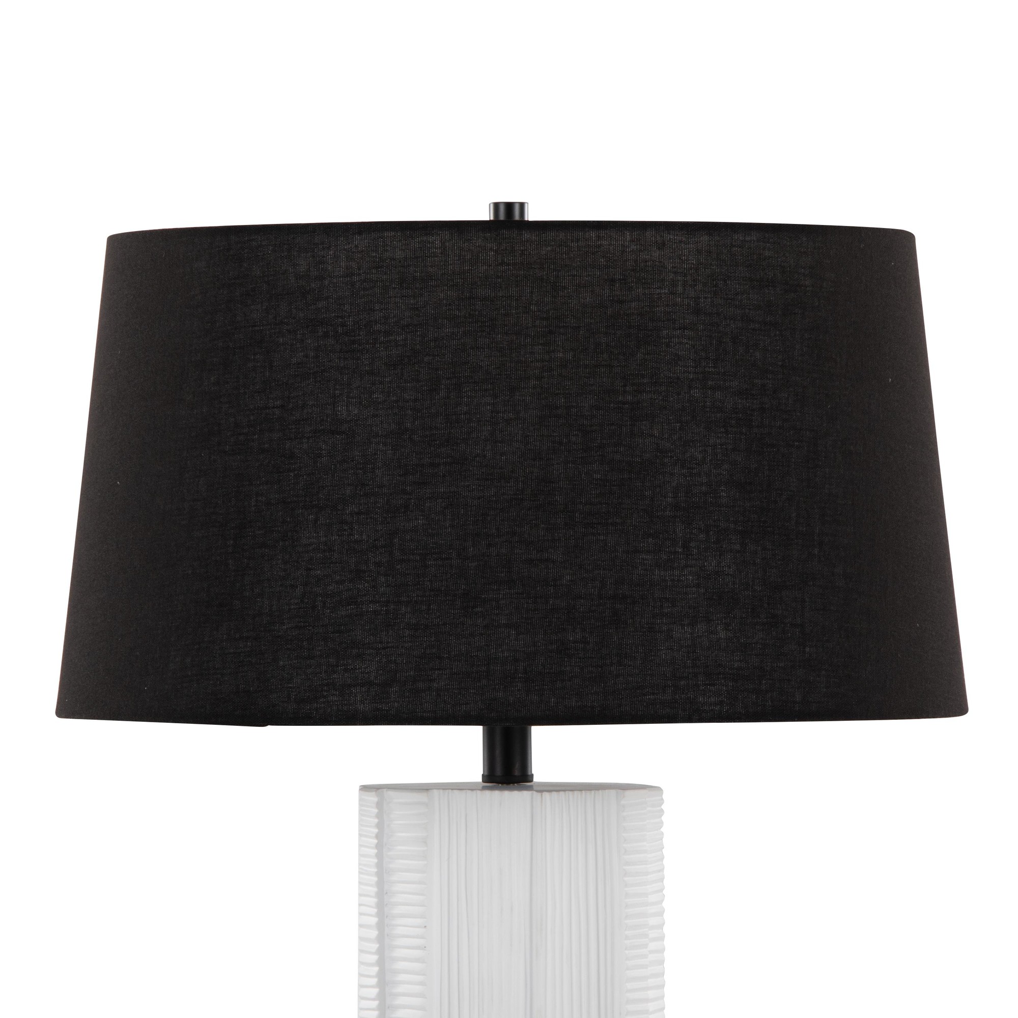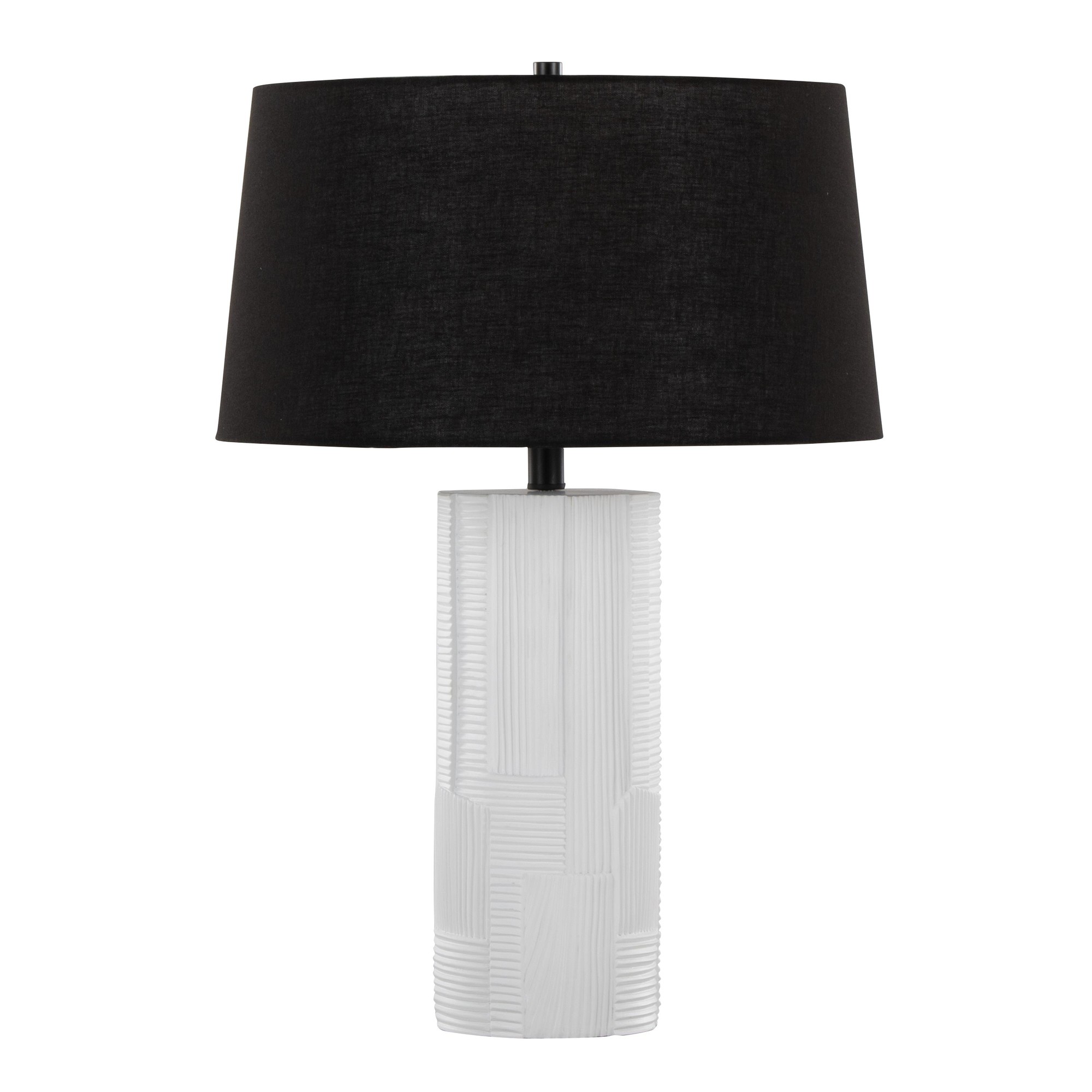 Each lamp seamlessly blends materials and design elements to create a cohesive and stylish lighting solution. The textured polyresin base offers visual interest and tactile appeal, while the black linen shade provides a soft, diffused light, perfect for creating a relaxing ambiance.
