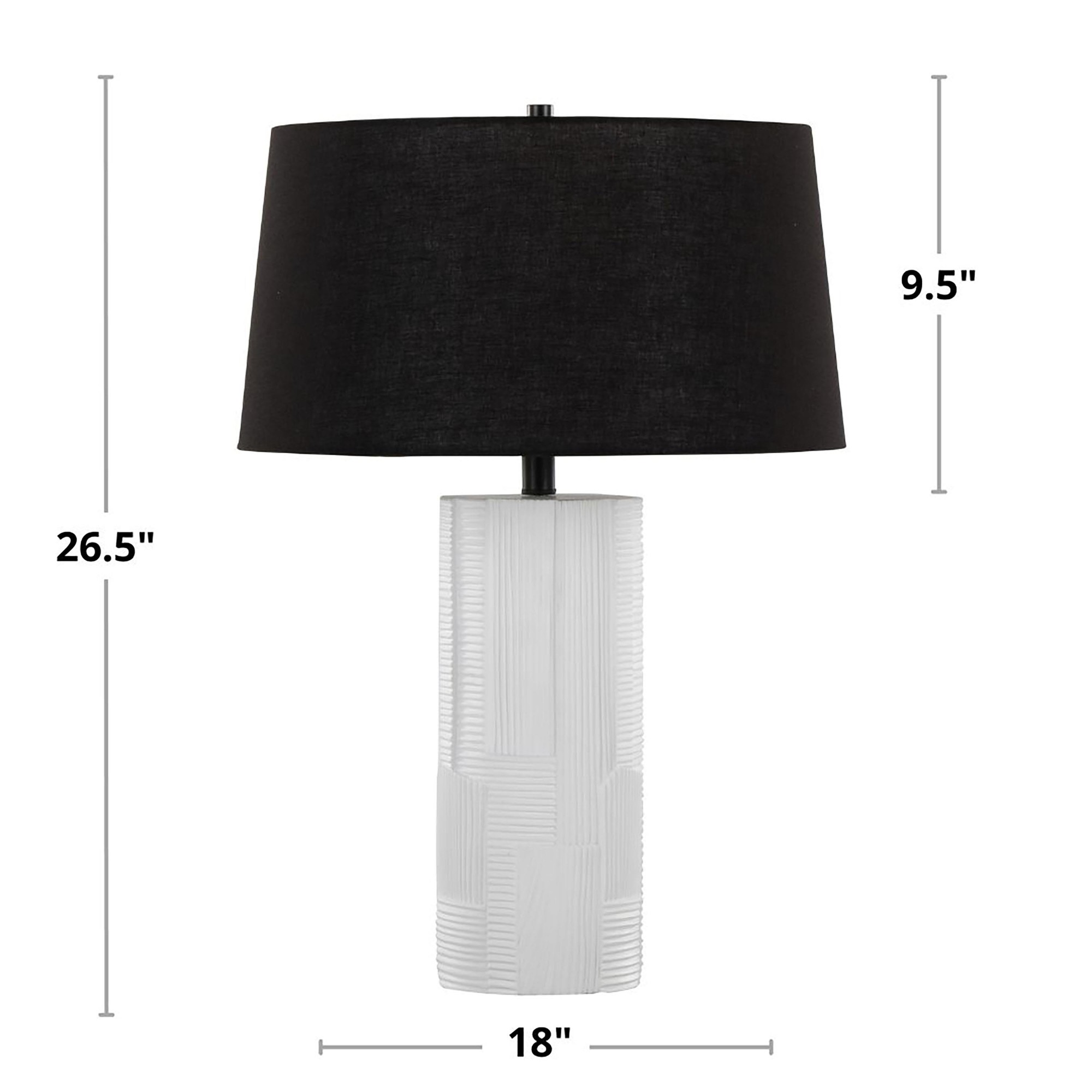 Transform your space with the sophisticated charm of the Petra Table Lamp. The cream polyresin base, featuring an intricate textured finish, adds elegance and depth. A sleek black linen shade creates a striking contrast, enhancing its modern appeal. Illuminate your decor with texture, color, and style for a look that’s both refined and distinctive.