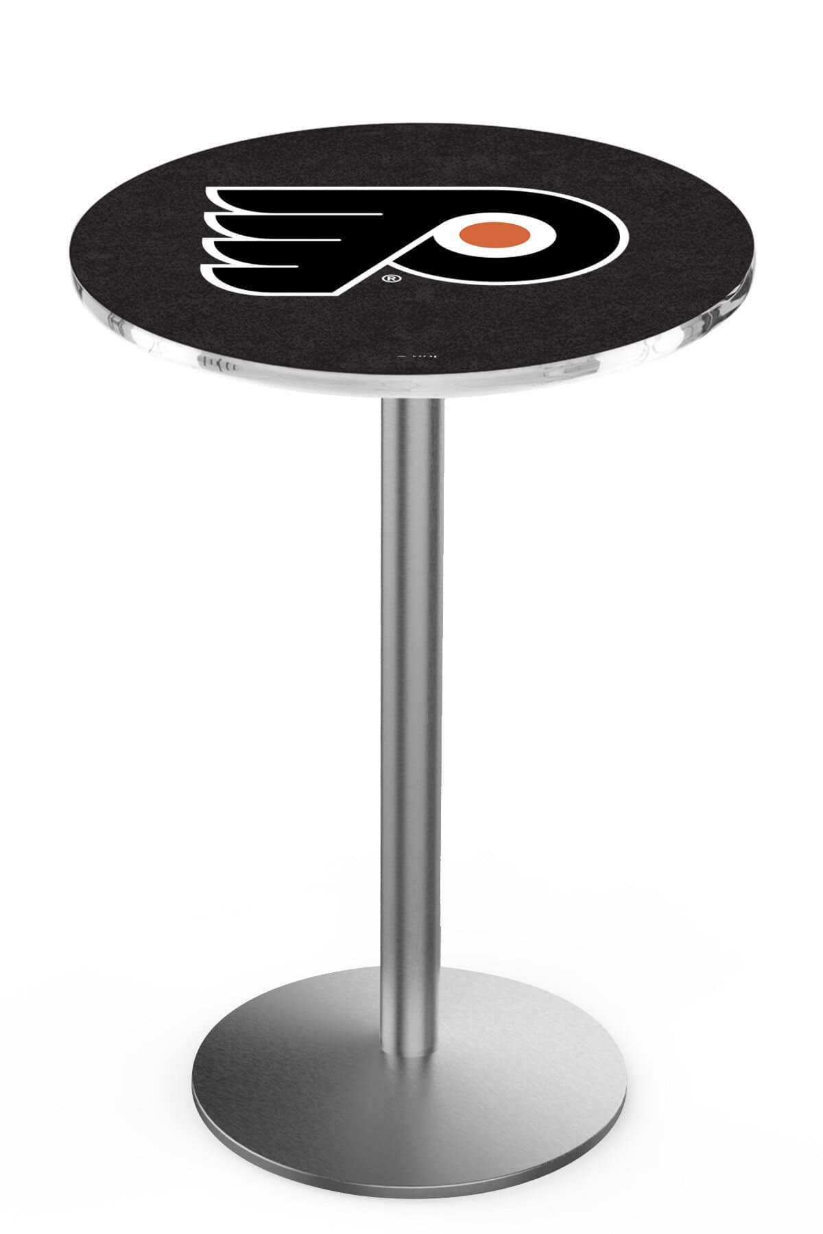 Transform your bar, game room, or man cave with this premium 36-inch pub table. Featuring a sleek stainless steel finish and a durable round base, this table is designed for both style and functionality. The vibrant, full-color laminate top not only showcases a scratch-resistant surface but is also easy to clean, making it perfect for everyday use. Built with commercial-quality materials, this table ensures stability and longevity, while adjustable feet accommodate uneven floors for added convenience.