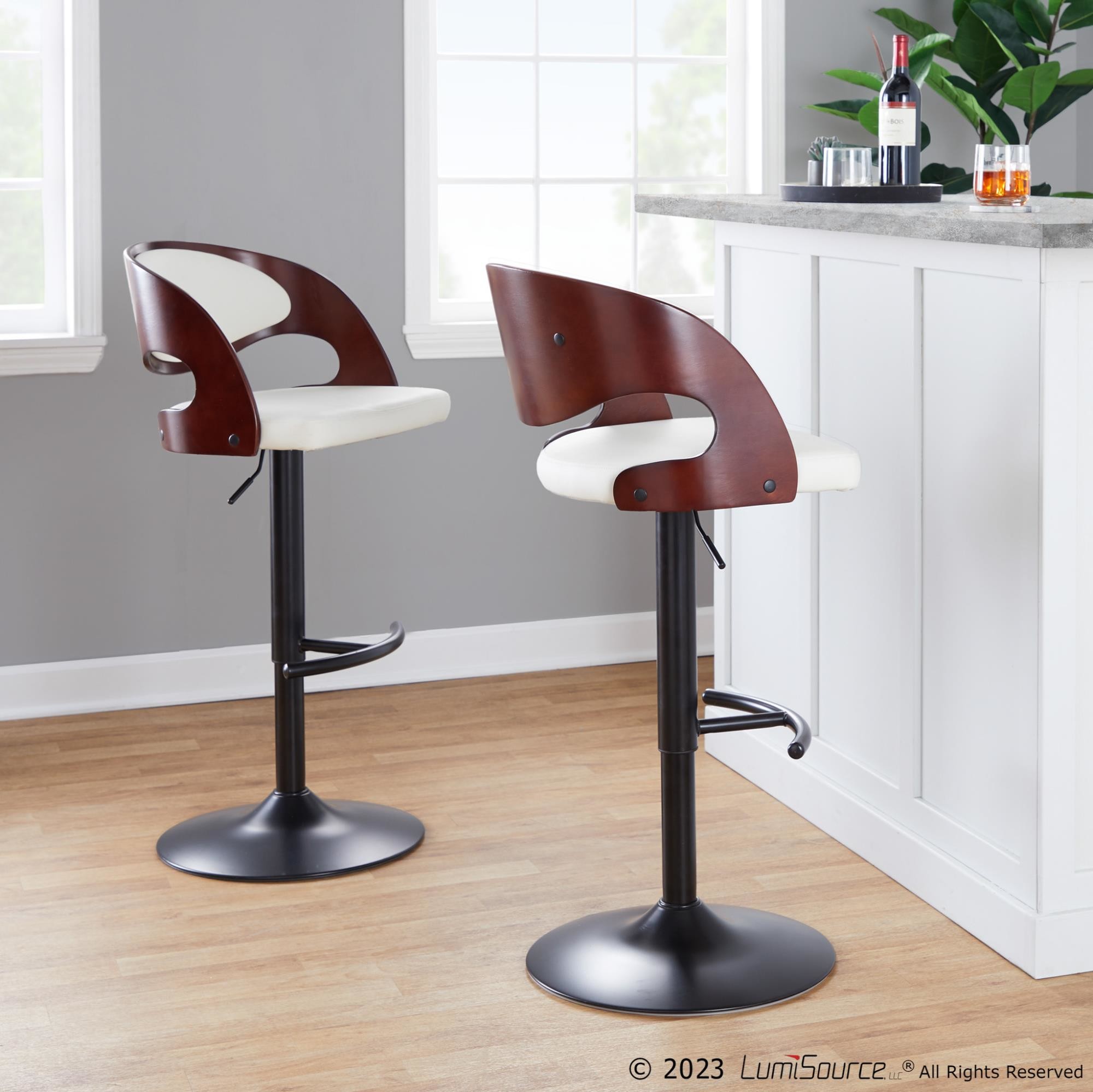 The Pino Mid-Century Modern Swivel Barstools bring a touch of retro elegance to your bar or kitchen. These barstools combine polished bent wood with a comfortable, upholstered seat. Enjoy the convenience of adjustable height and a full 360-degree swivel, making them perfect for any setting. This set includes two barstools, ready to enhance your space.