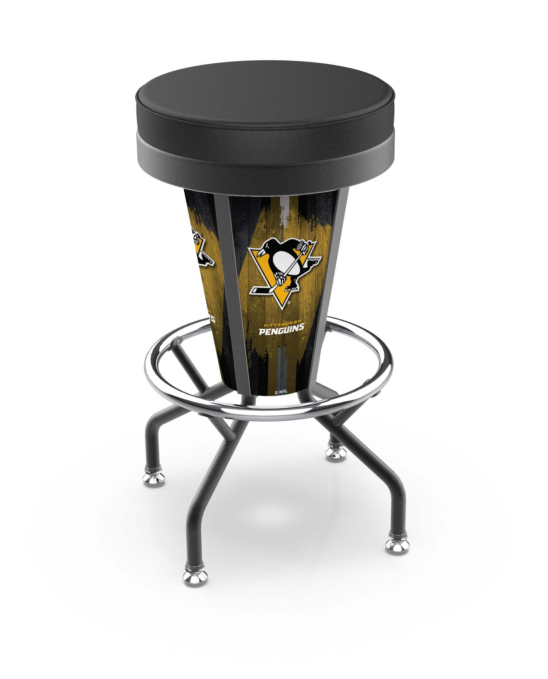 Show your team pride with this unique lighted bar stool! Perfect for your man cave, bar, or patio, this stool combines comfort, durability, and vibrant team graphics. The interchangeable graphic panels and multi-functional LED light will make this the focal point of any room.