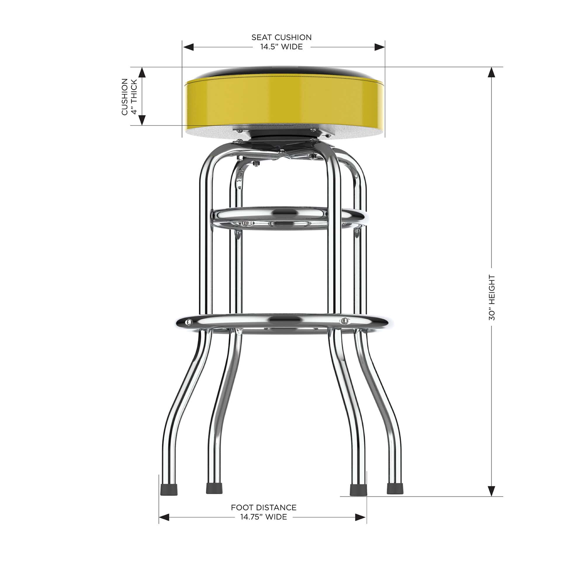This American-made bar stool is a fantastic addition to any fan cave or home bar. Built with commercial-grade quality and showcasing your team’s colors and logo, it’s designed for durability and long-lasting appeal. The graphics are reverse-printed on the vinyl seat, ensuring they won’t scratch or fade over time, letting you show your team pride for years to come. Enjoy superior comfort and a sturdy build with this stylish and functional bar stool.