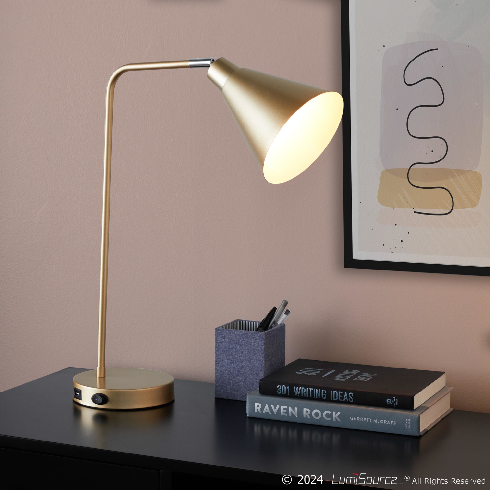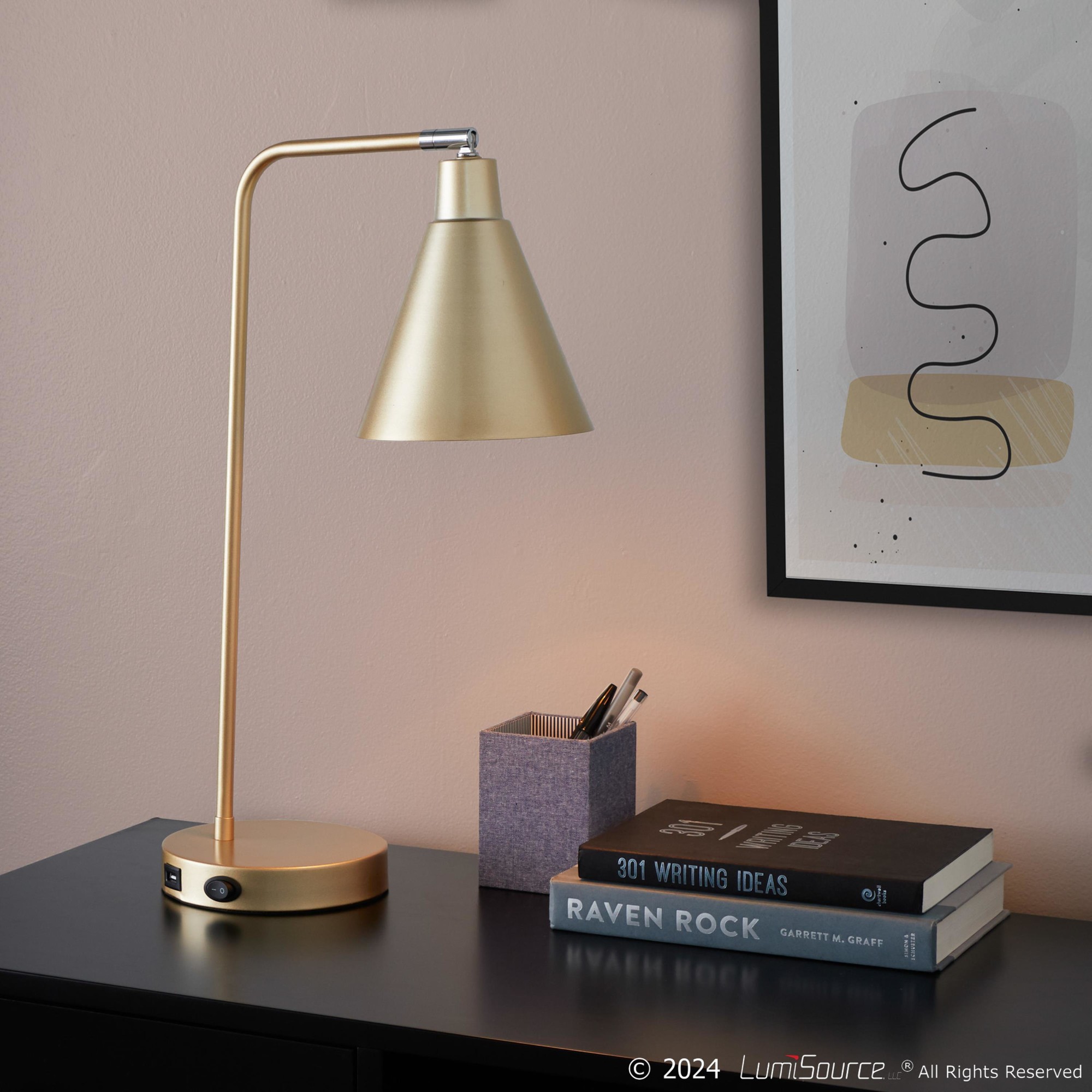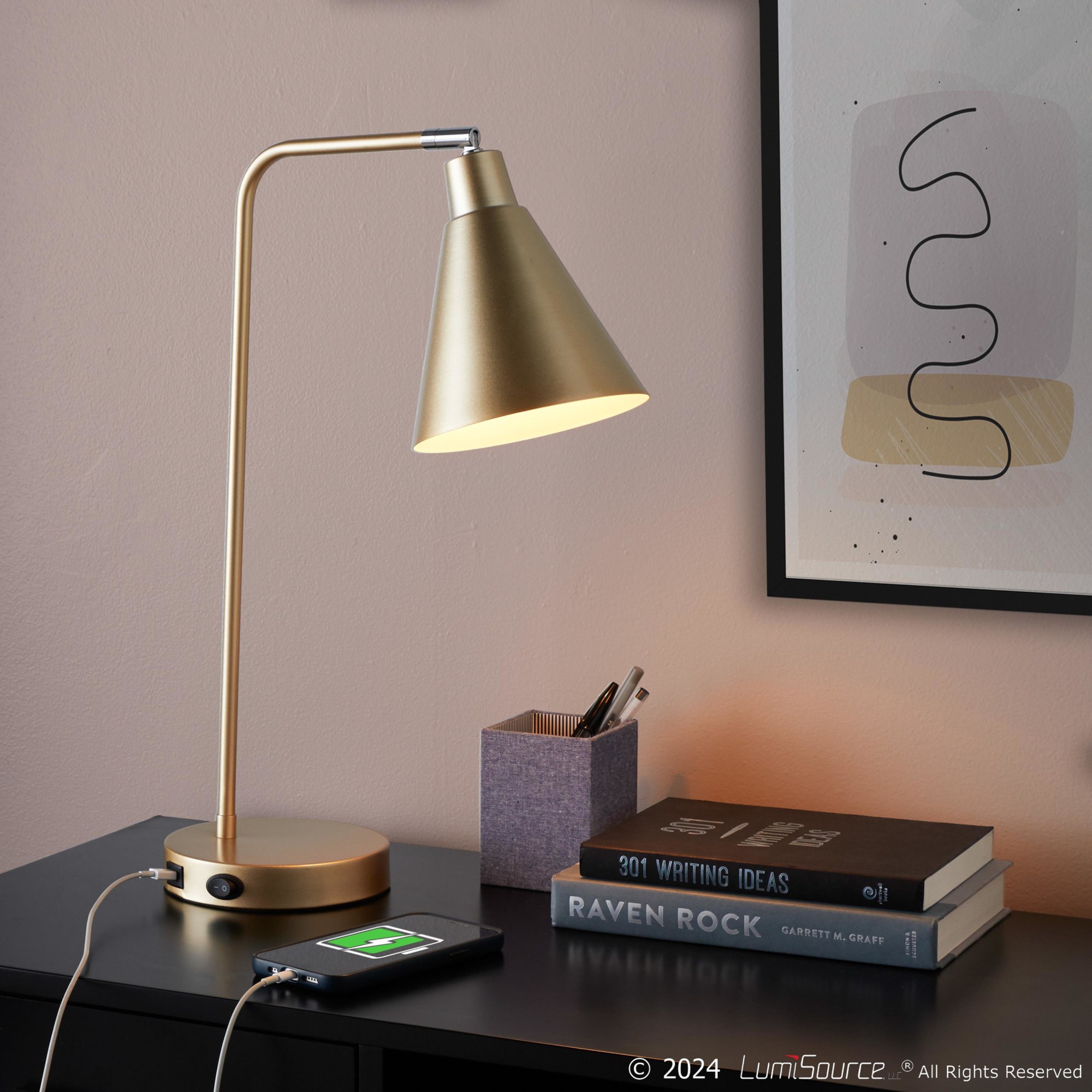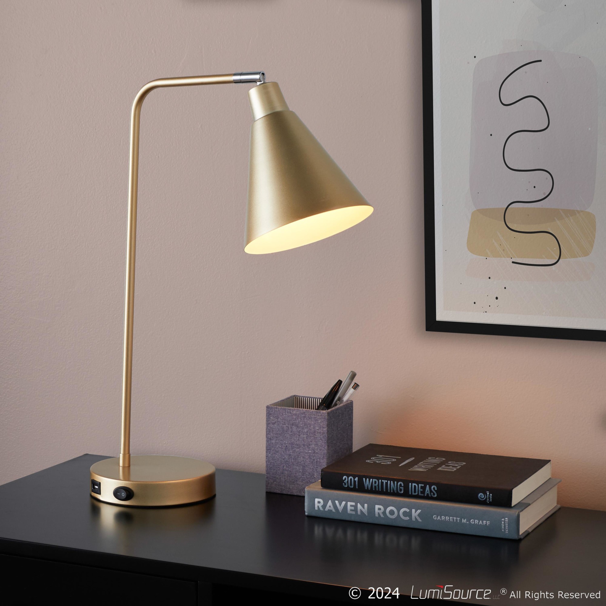 The Pix Metal Task Lamp is the perfect blend of modern style and practical functionality. Available in an elegant gold finish, this lamp features a striking metal cone shade designed to direct light with precision. Enhance any workspace with its contemporary design and convenient USB port, ensuring you stay powered up and productive. Illuminate tasks with a lamp that’s as stylish as it is useful.