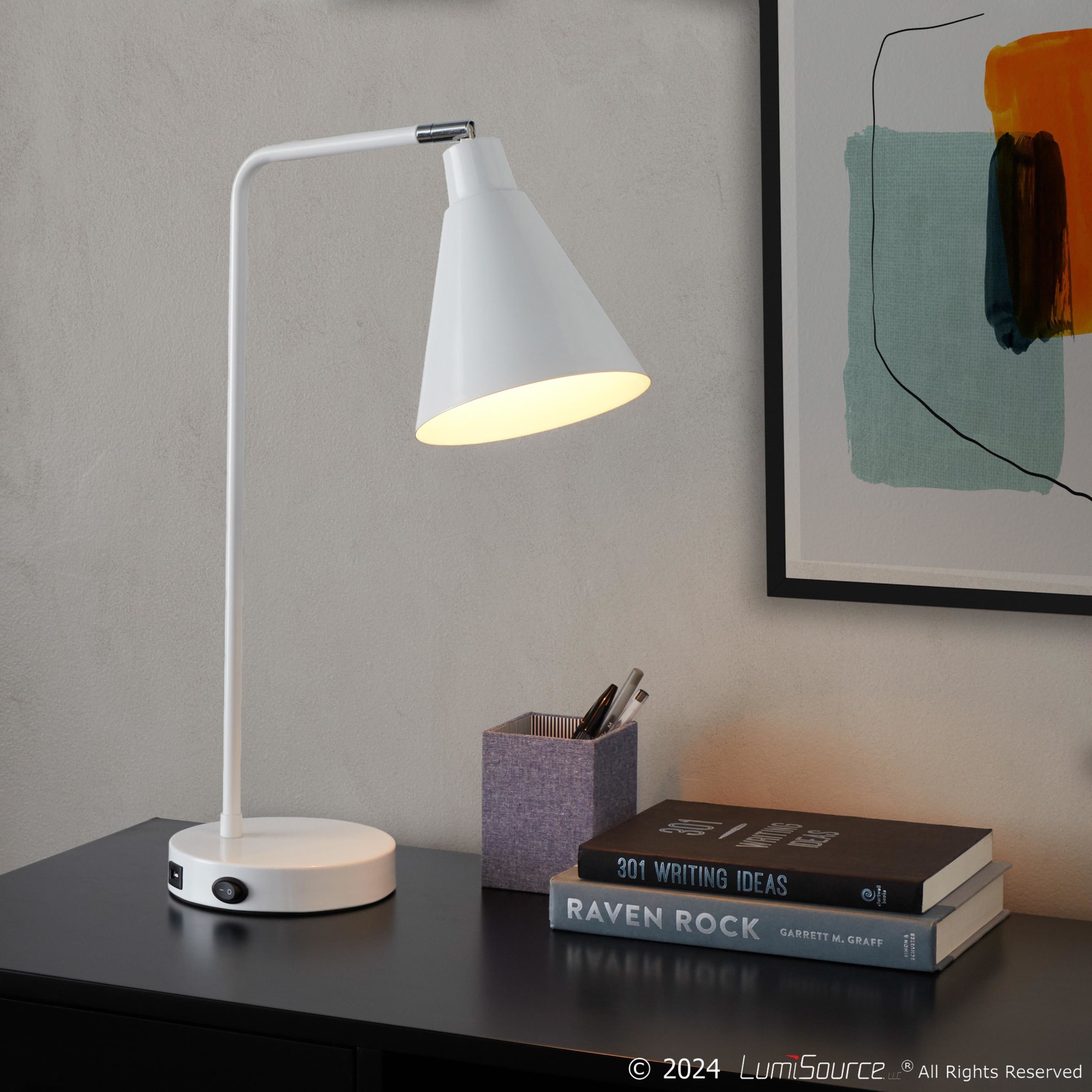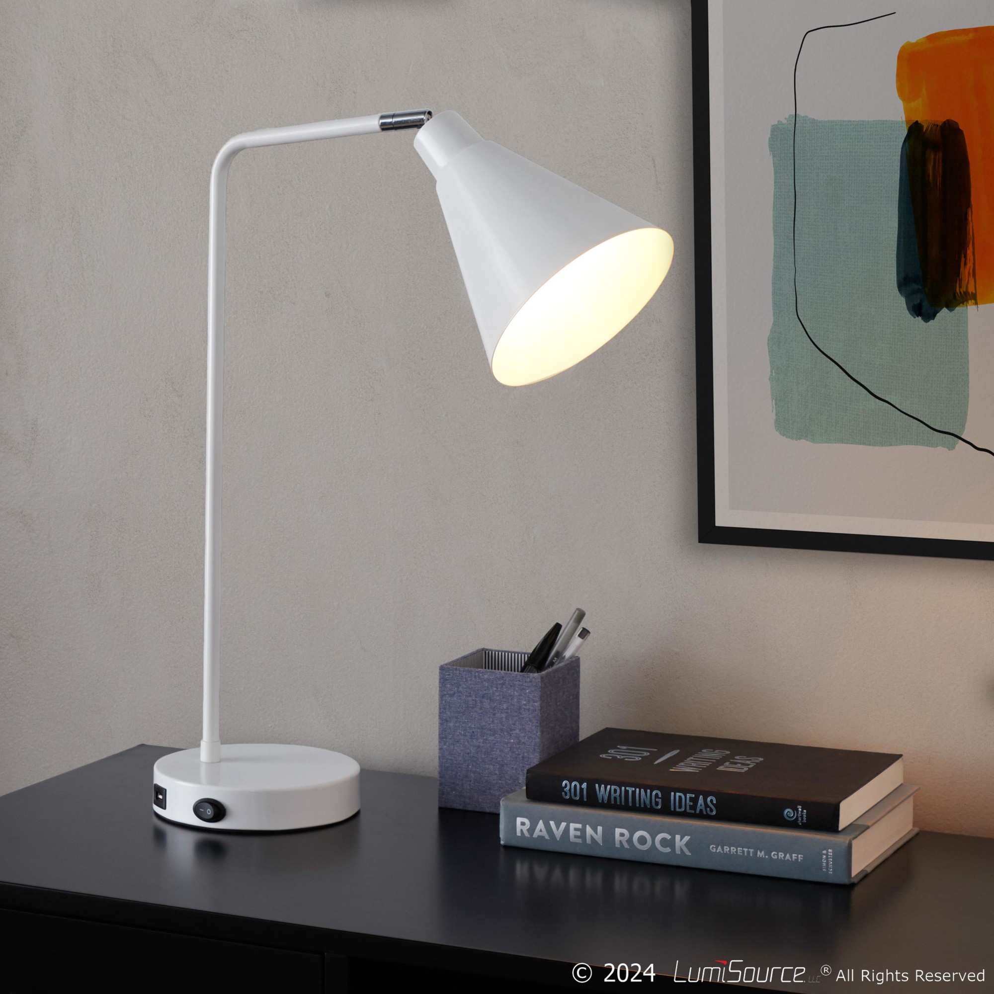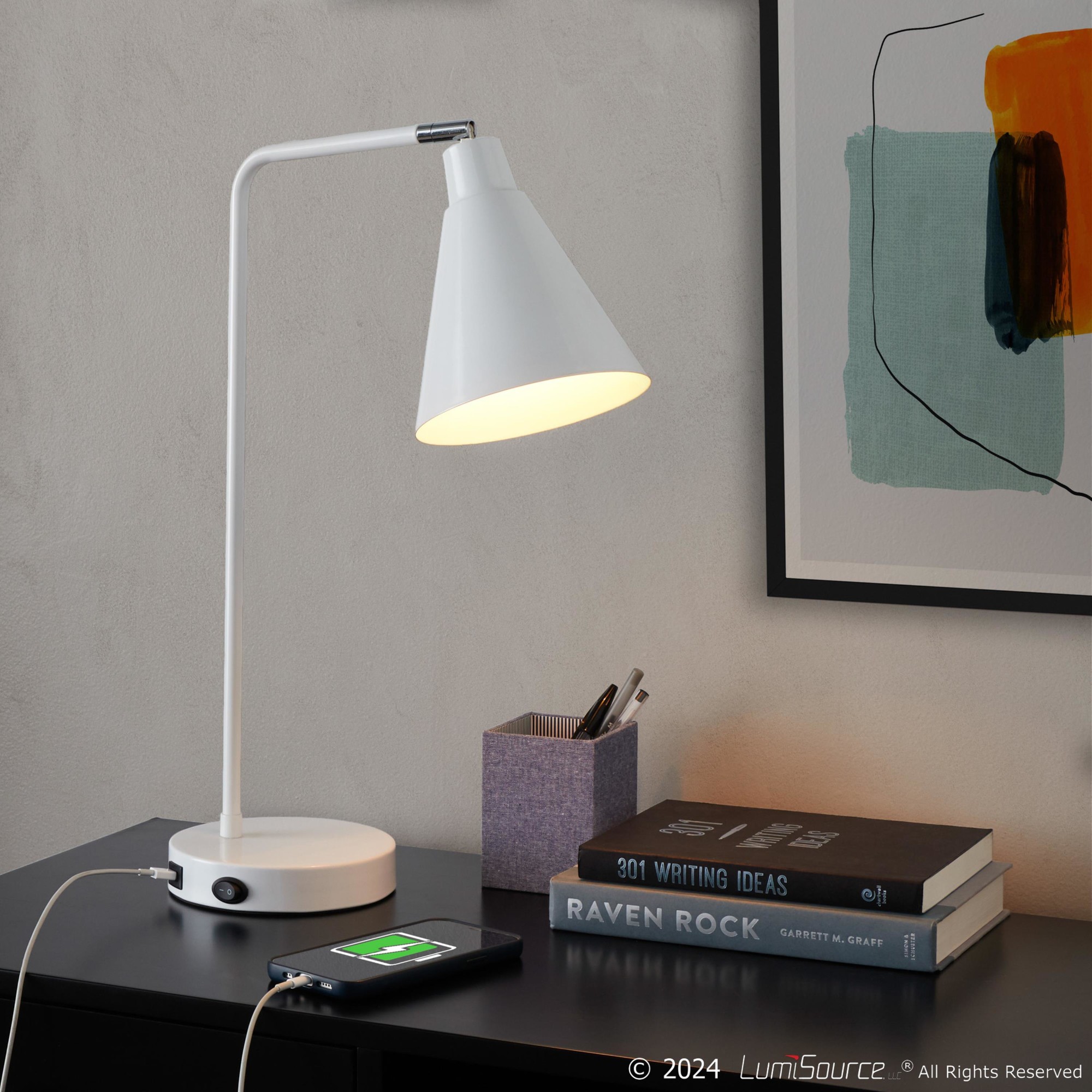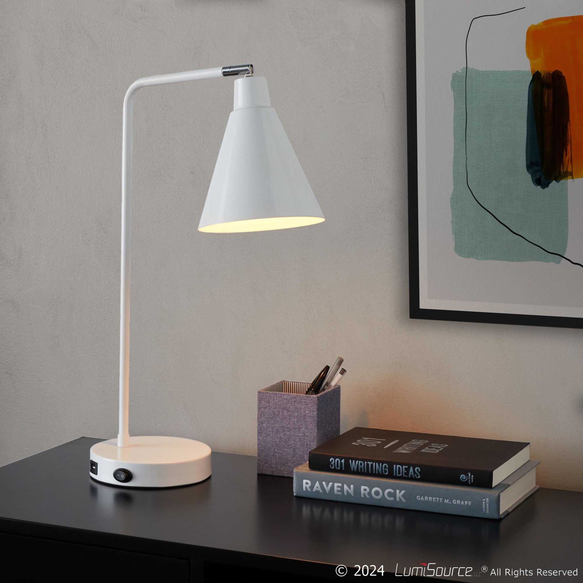 The Pix Task Lamp is a stylish and functional addition to any workspace. Featuring a sleek, modern design and a crisp white finish, this lamp not only provides focused illumination but also includes a convenient USB port for easy charging of your devices. Stay productive and powered up with this practical and elegant lighting solution.