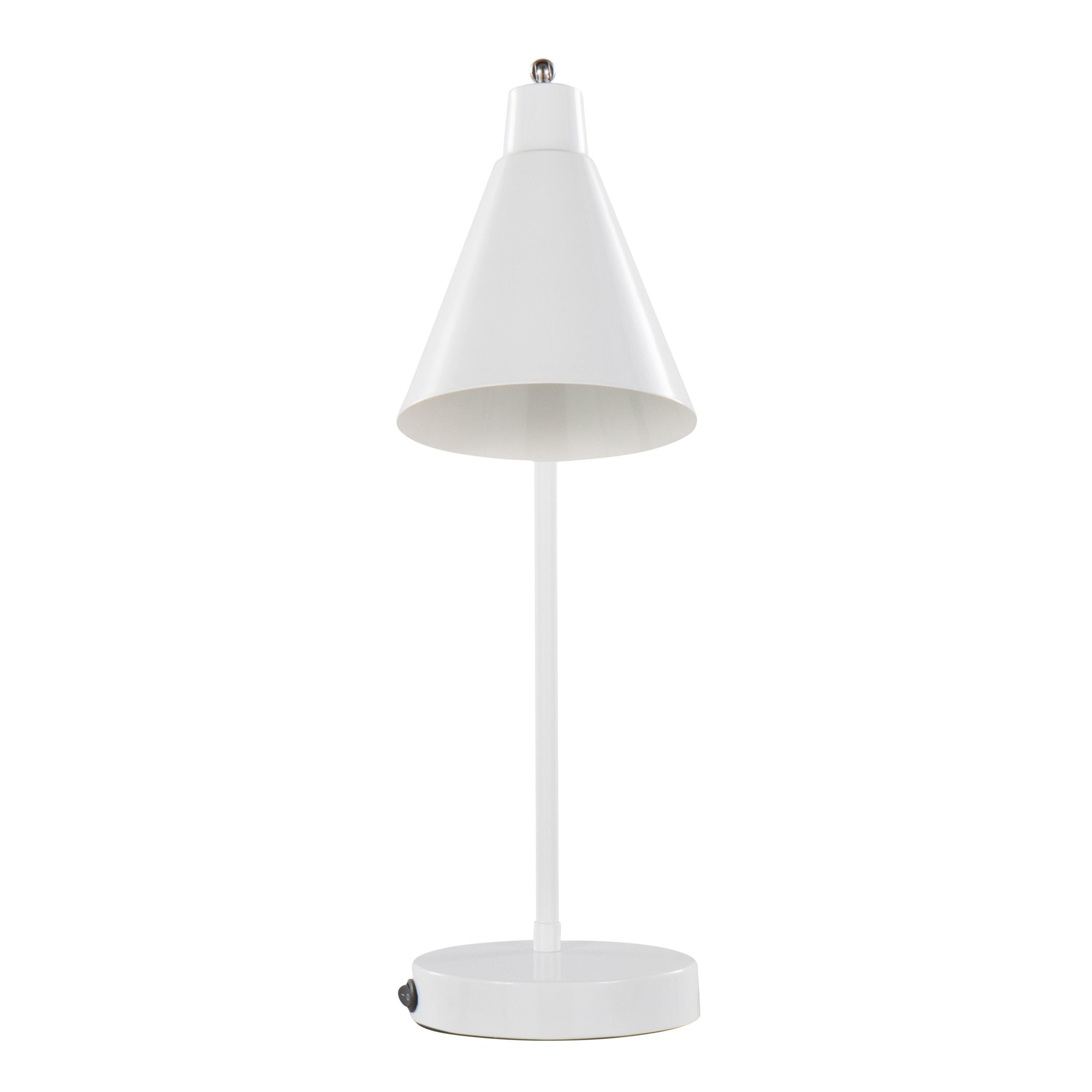 Brighten your man cave with the Pix White Contemporary USB Task Lamp. This lamp features a glossy white finish and a metal cone shade you can adjust. It shines light just where you need it! Its contemporary style adds a modern touch to your space. Plus, the base includes a USB port for easy charging. Never run out of power again! The lamp measures 5.75″L x 12″W x 19″H and requires a 40W bulb (not included). With its easy on/off switch, the Pix lamp is the perfect mix of style and function.