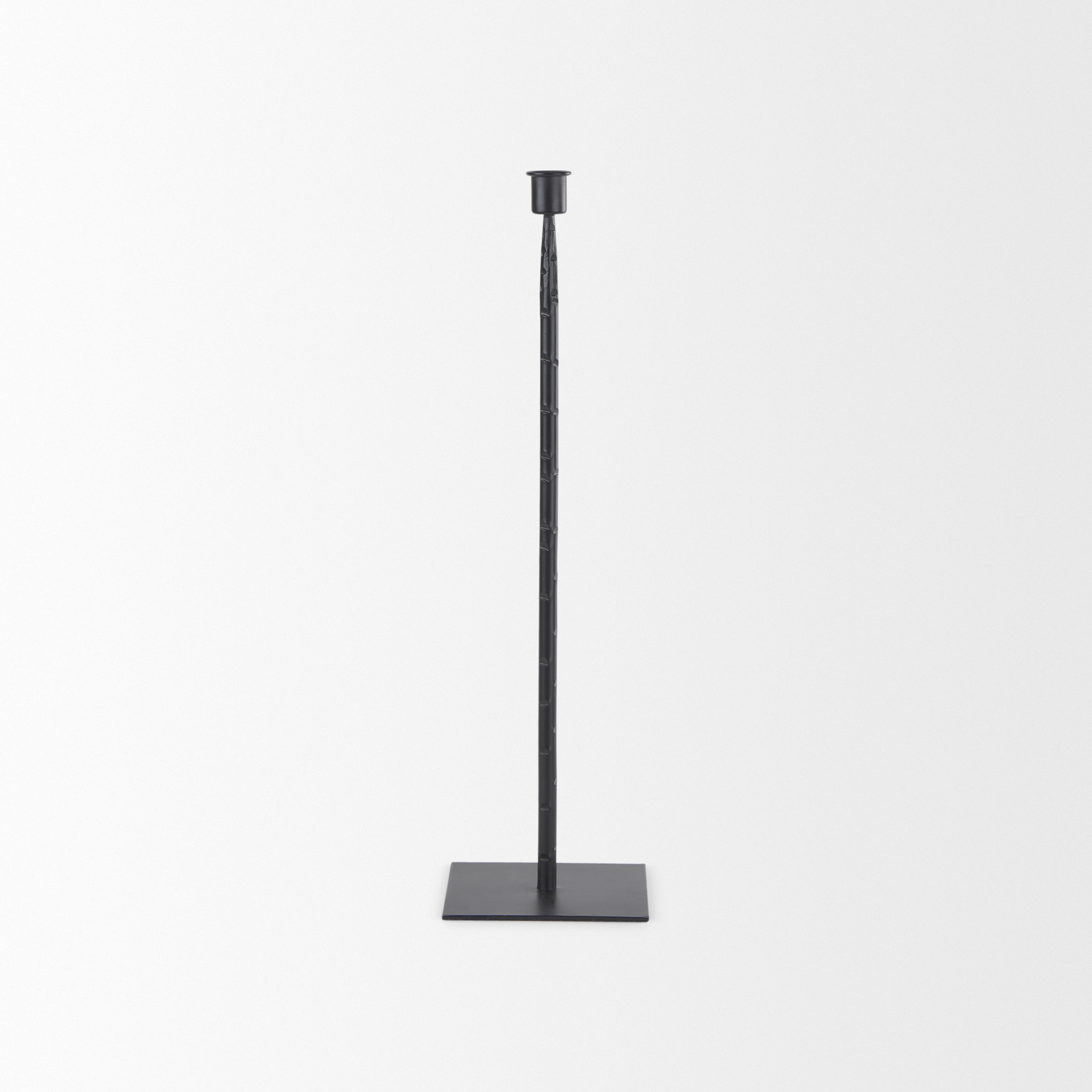 The Medium Porter Candle Holder adds a touch of rustic and industrial charm to any space. Its textured black iron construction provides a trendy and visually appealing accent. Mix and match with other candle holders in the Porter Collection to create dynamic displays.