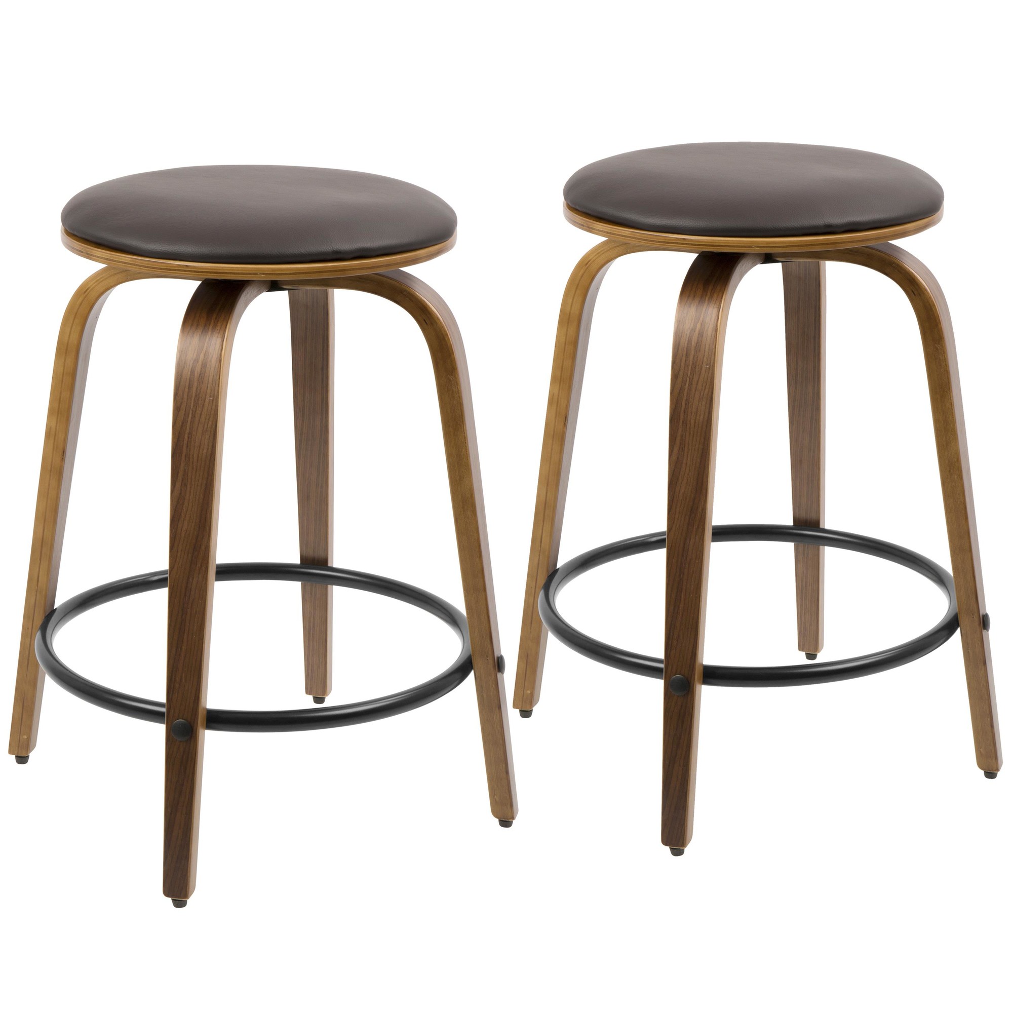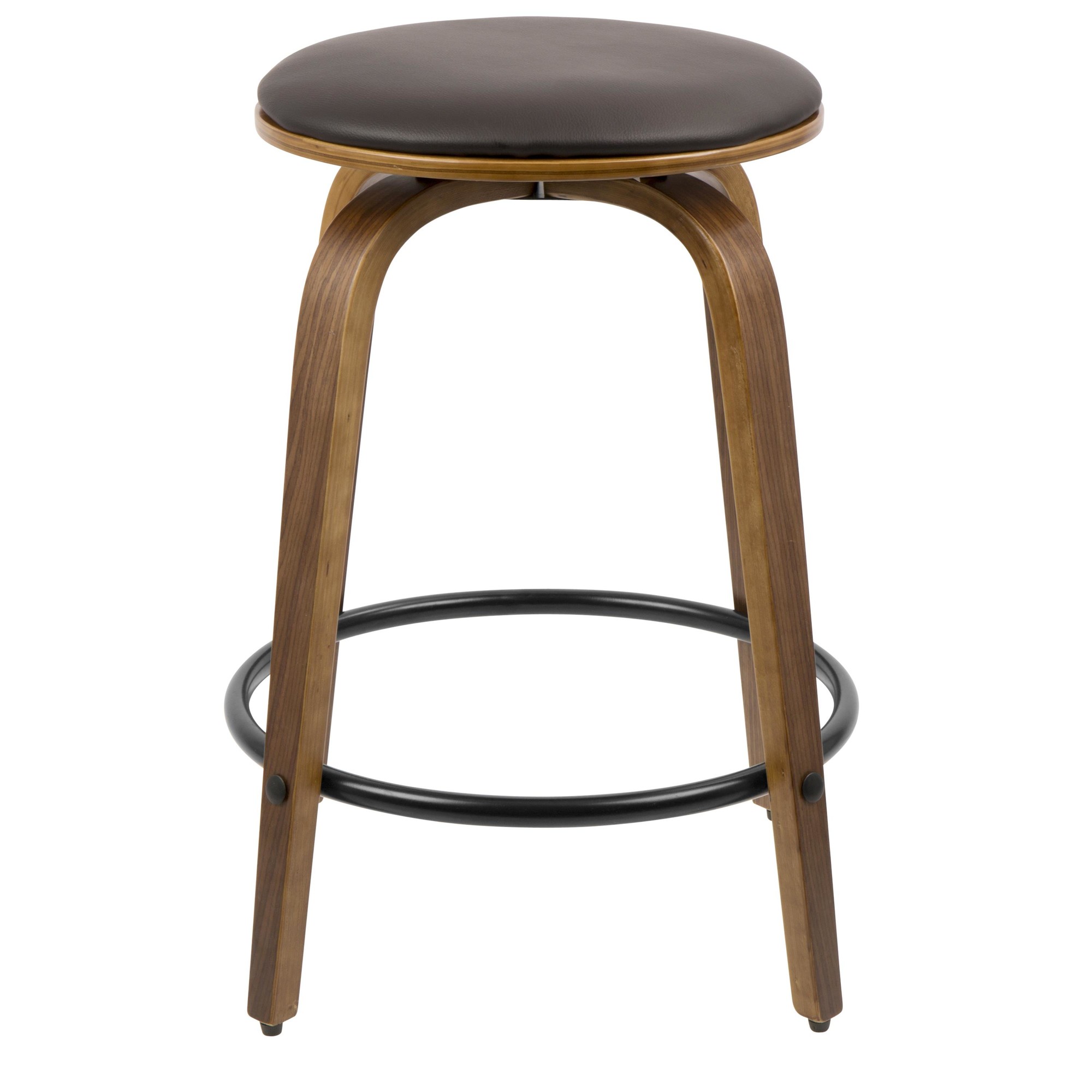 The Porto Counter Stools will spruce up your dining area with their simple yet elegant design! These backless stools feature a luxurious, padded seat wrapped in handsome faux leather. Enjoy the 360-degree swivel and the added comfort of the built-in footrest. The contrasting wood frame boasts artistically flared legs, adding a touch of sophistication to any space.