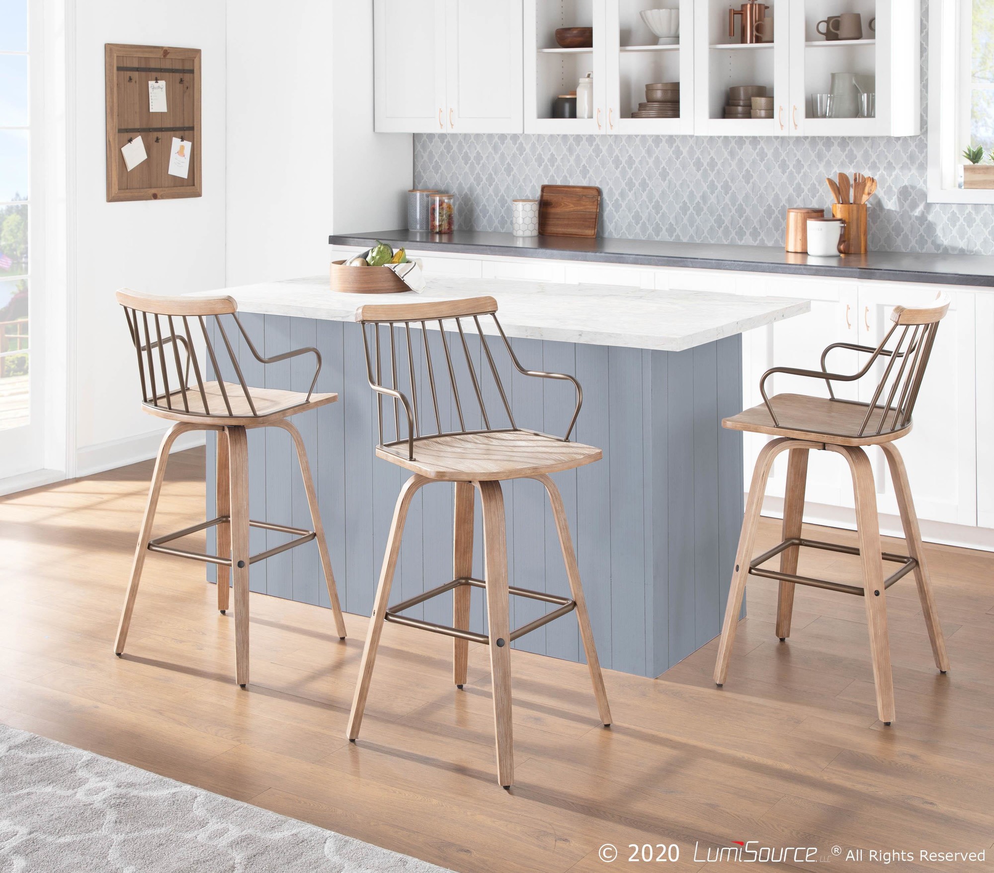 Enjoy the perfect blend of style and comfort with this counter stool, designed to enhance any room with its unique farmhouse aesthetic. The 360-degree swivel ensures easy movement, while the white-washed wood adds a touch of rustic elegance.