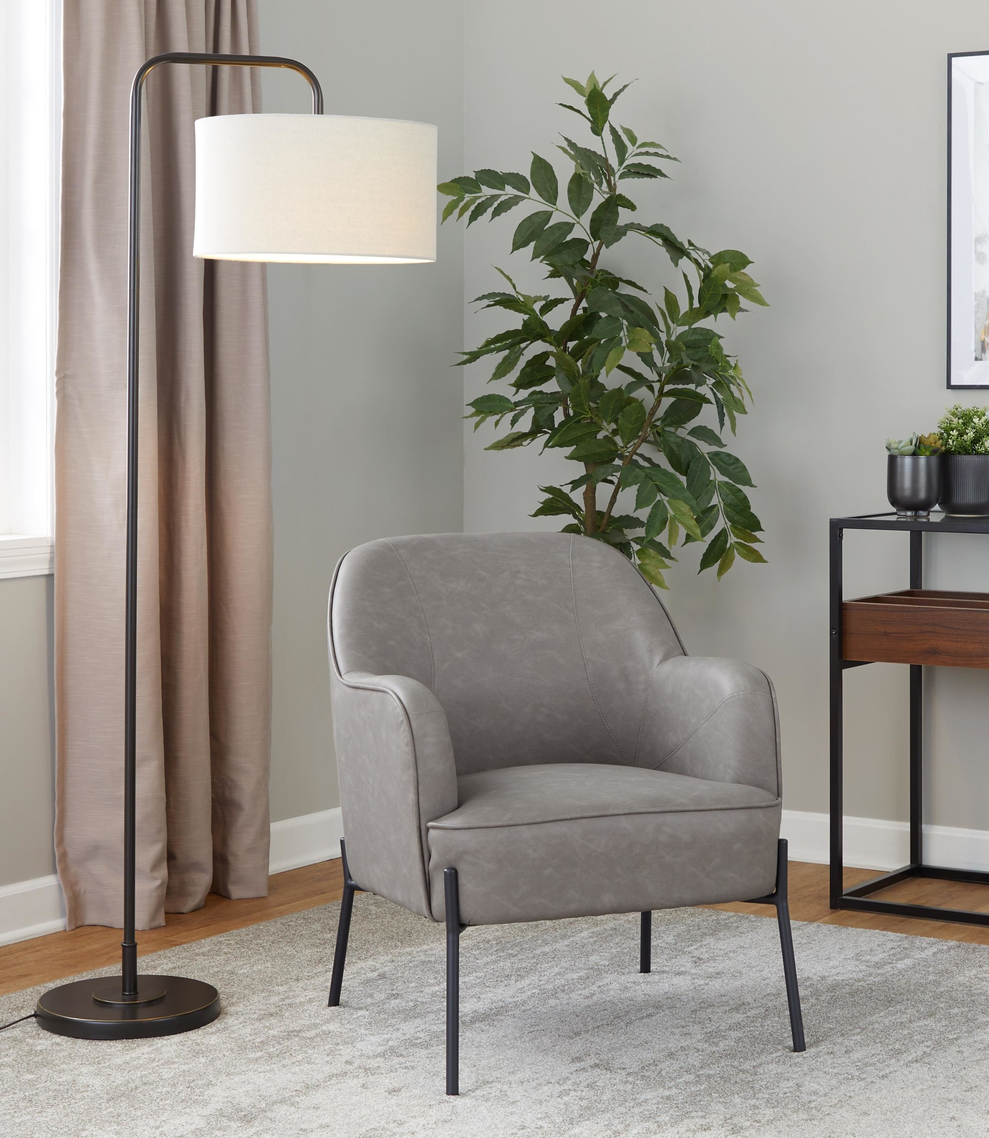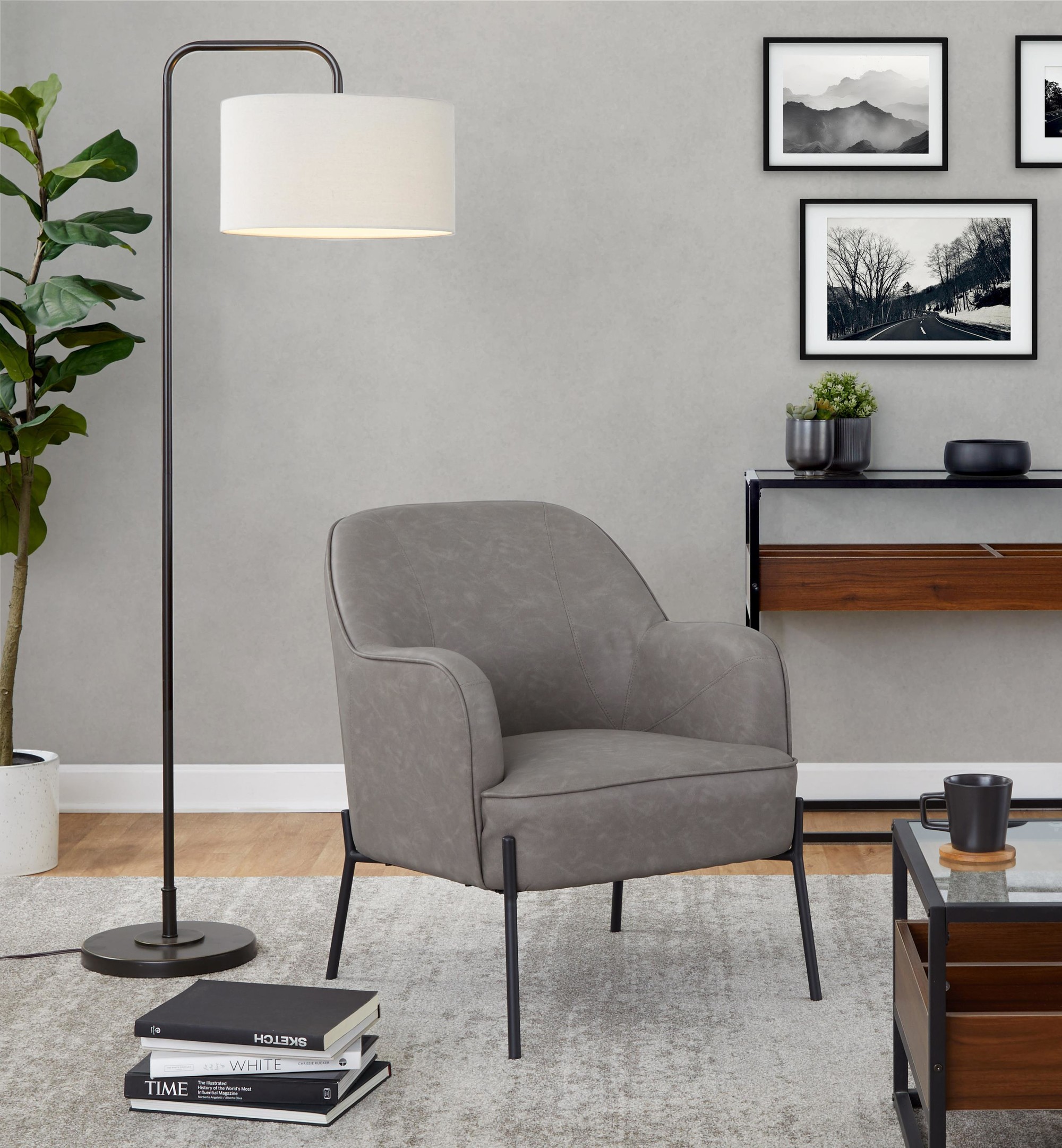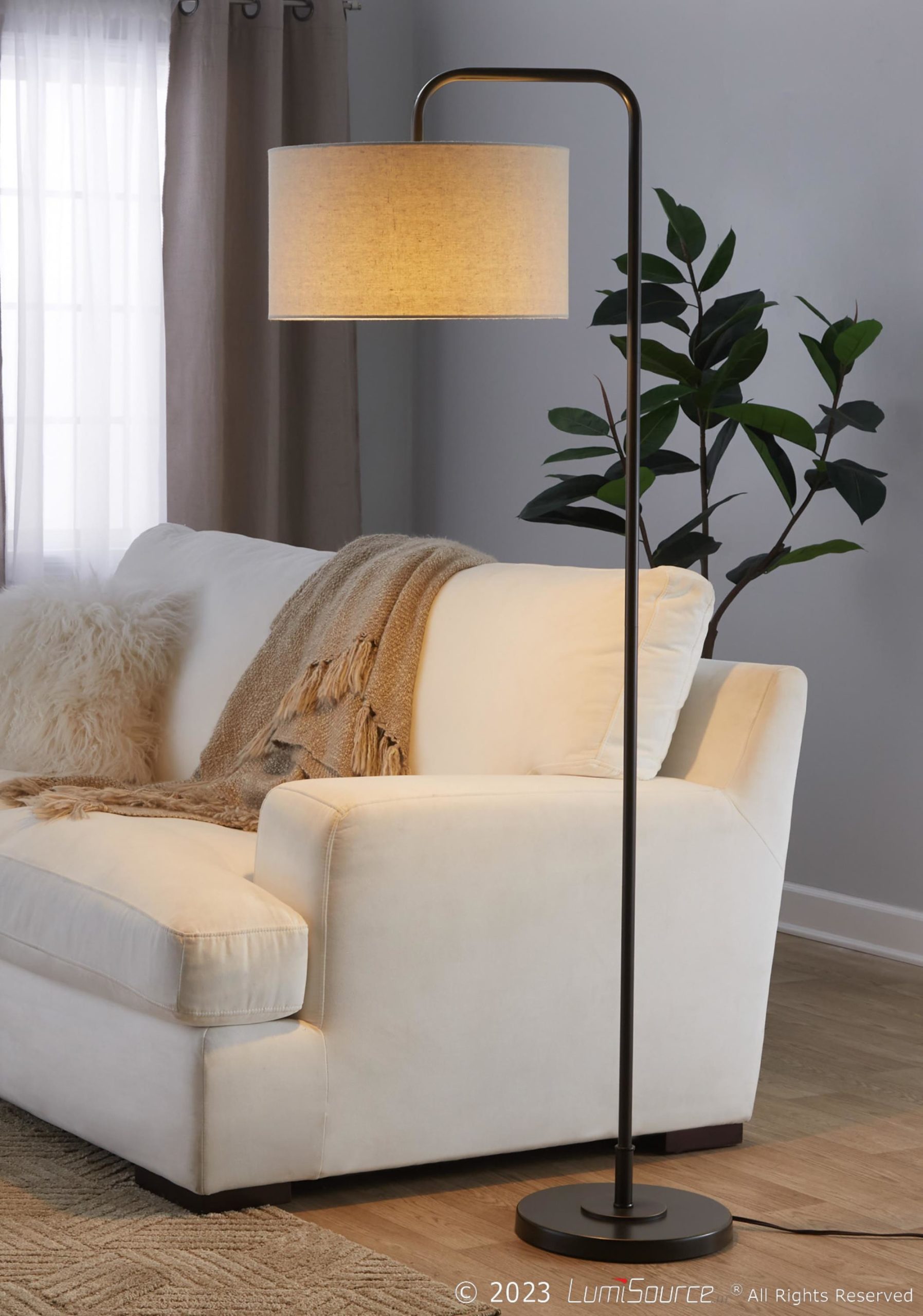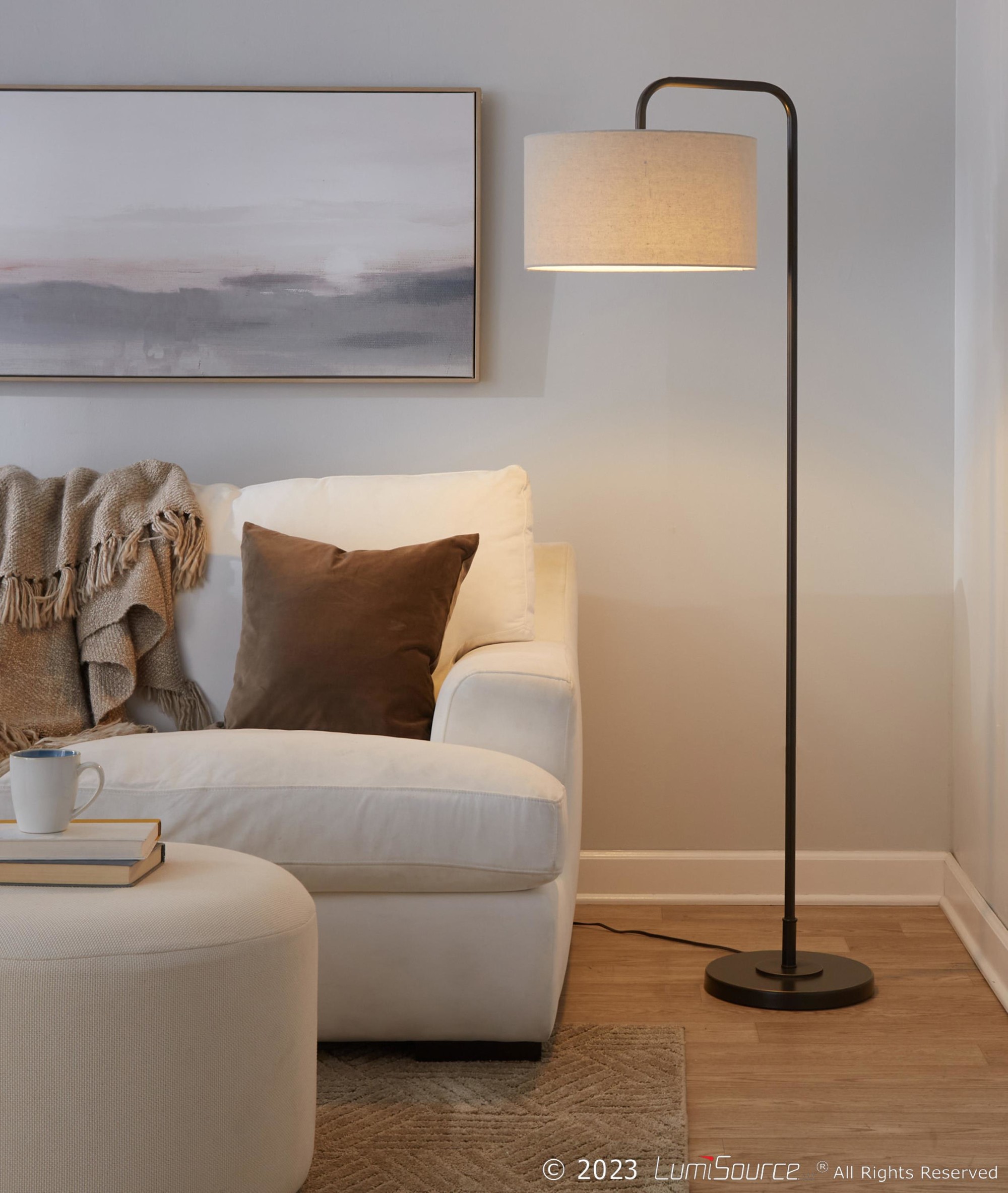This unique arched floor lamp has just the right amount of sleek modern style and eye-catching flair. Whether behind the couch, sitting next to your bed, stationed in the office, or even tucked in your favorite reading nook, this floor lamp is the minimalist solution to your lighting needs. The arched metal neck allows you to position the light exactly where you need it, and the linen drum shade diffuses the light for a warm and inviting glow.