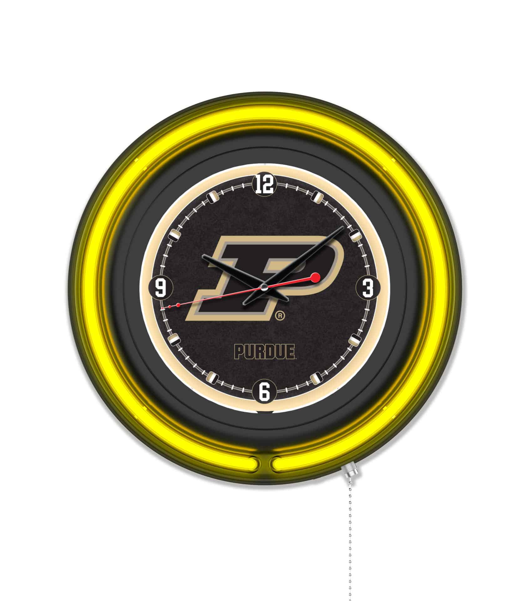 The “Purdue 15-Inch Neon Logo Clock in Black is an eye-catching addition to any man cave, showcasing your school pride with its vibrant design. Featuring a sleek black casing and a neon outer ring in team colors, this clock not only tells time but also enhances your decor. The brilliant white inner neon ring illuminates the custom printed clock face, making it a standout piece. With an easy pull chain for turning the neon lights on and off, this clock is both functional and stylish. Powered by a standard 120V outlet, it ensures accurate timekeeping with reliable quartz movement, requiring only a single AA battery (not included).