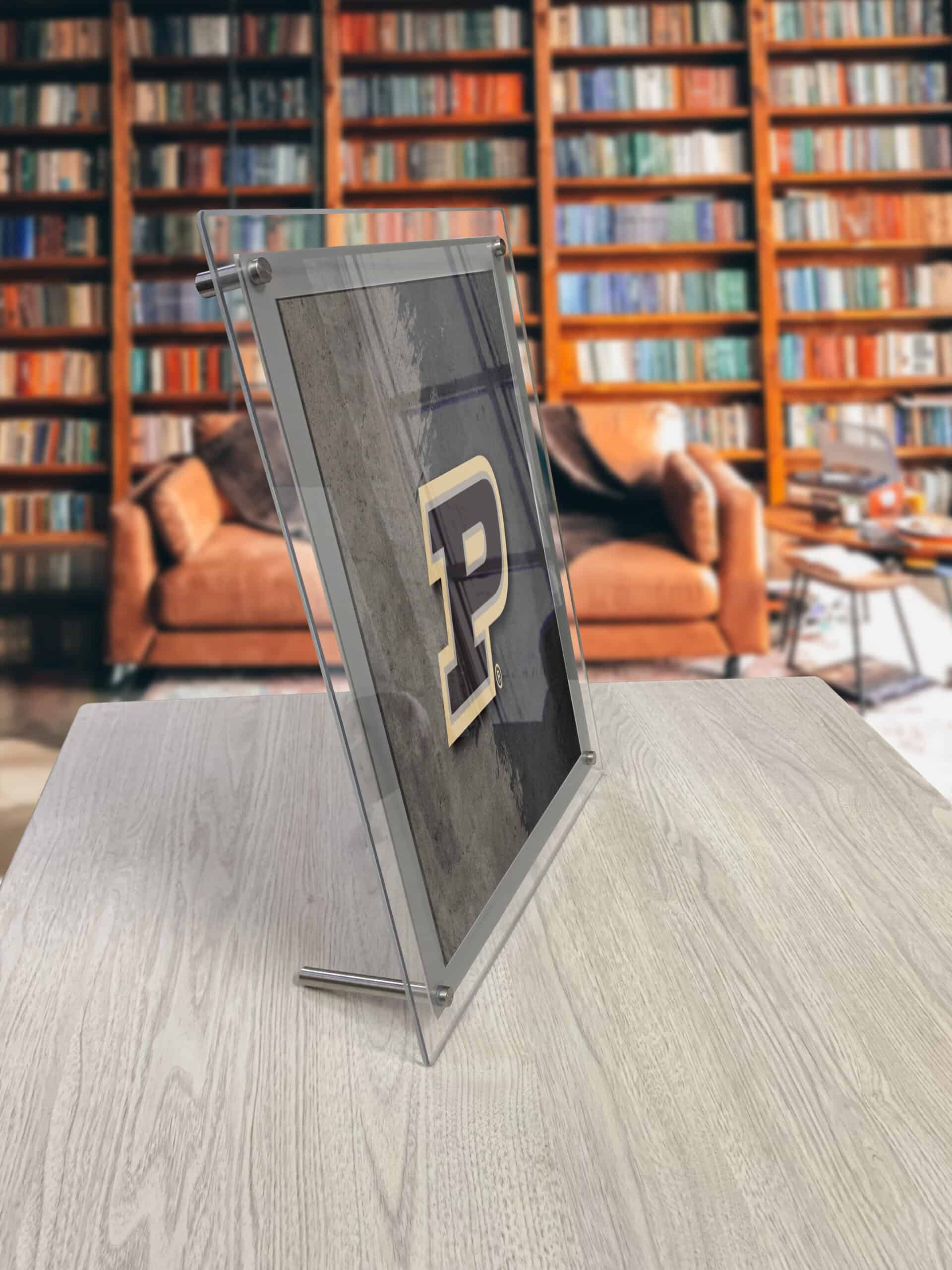 - Mounting: Includes hardware for wall mounting (1″ Stand-offs) or desktop display (3 3/4″ foot).