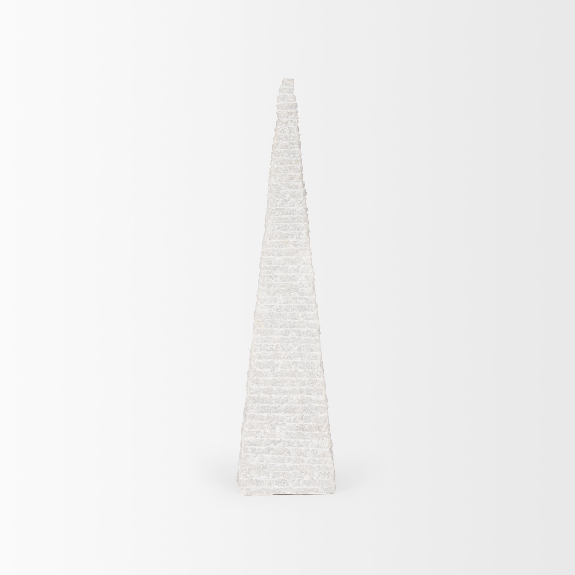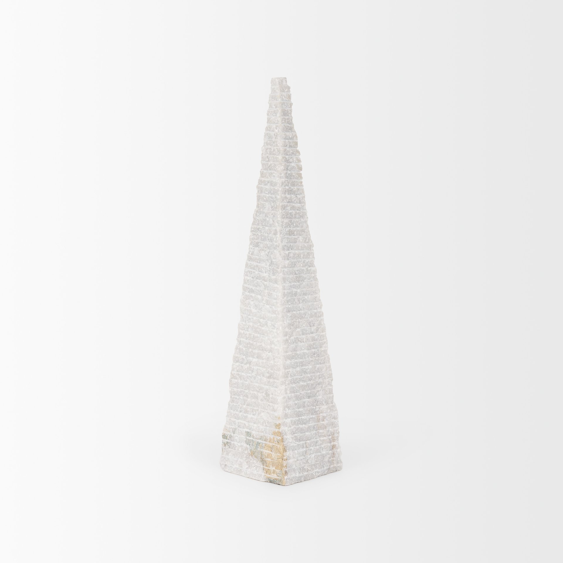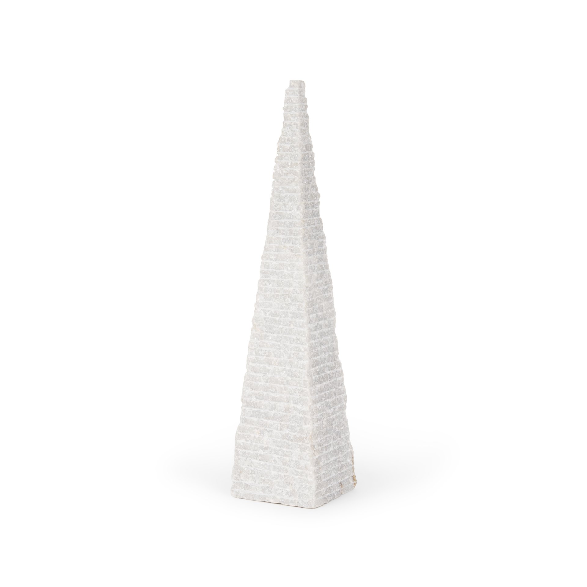 The Pyramis White Rough Marble Obelisk is a decorative object inspired by the timeless allure of Egyptian pyramids. Crafted from solid, rough-carved marble, this obelisk adds texture, height, and intrigue to any space. Perfect for styling on coffee tables, console tables, or shelves, the Pyramis brings a touch of sophistication to its surroundings. Marble is a natural material; variations in color should be expected, making each piece unique.
