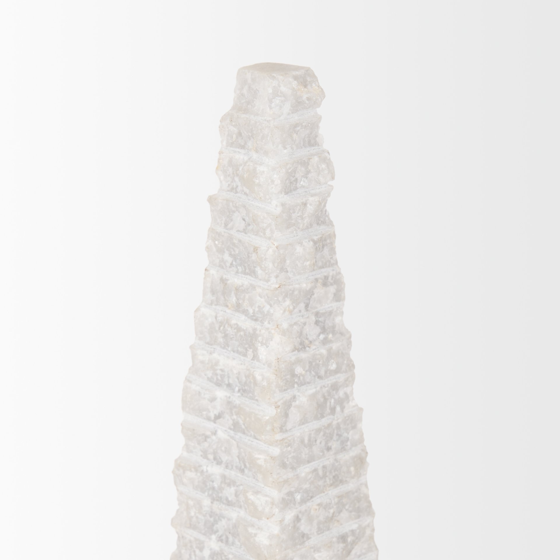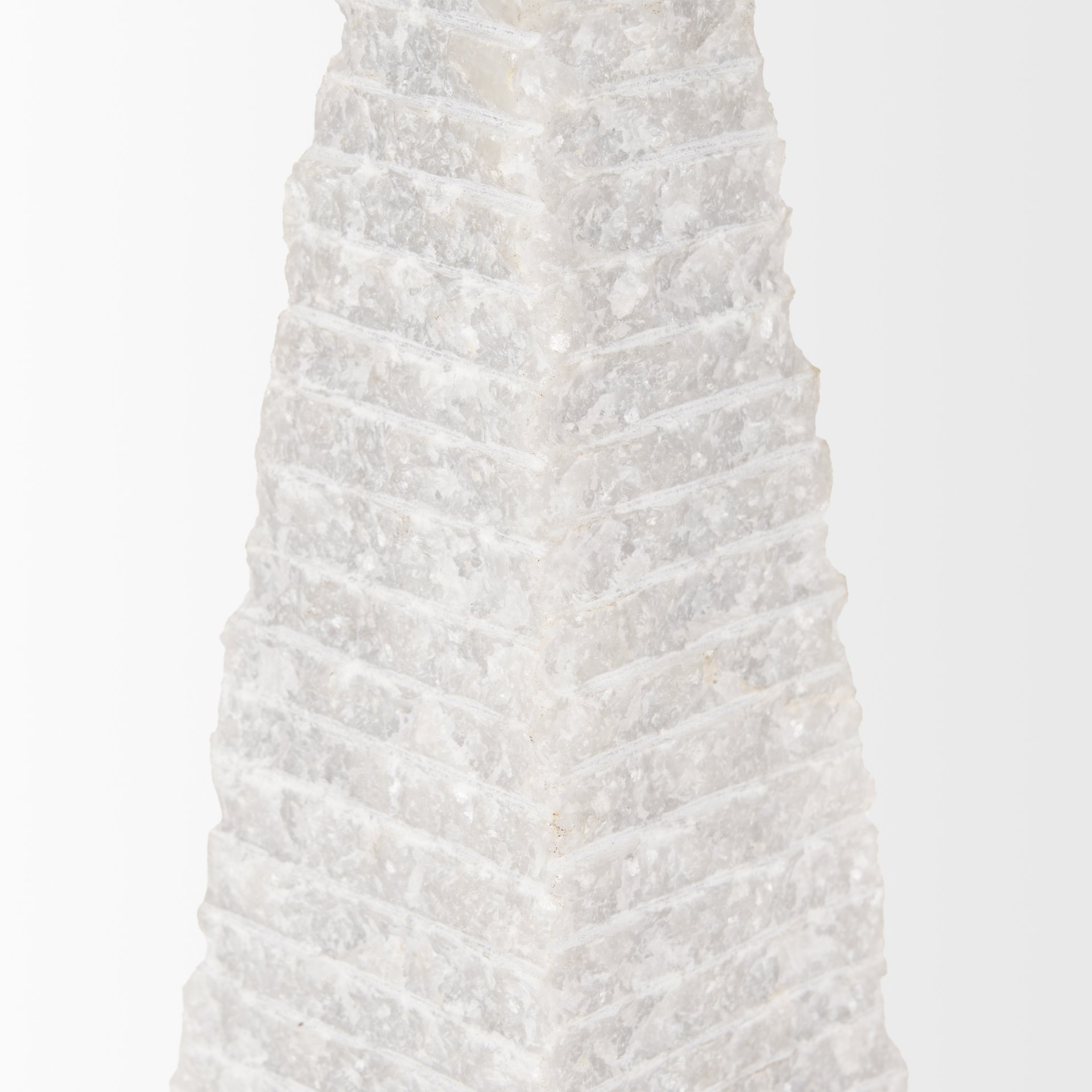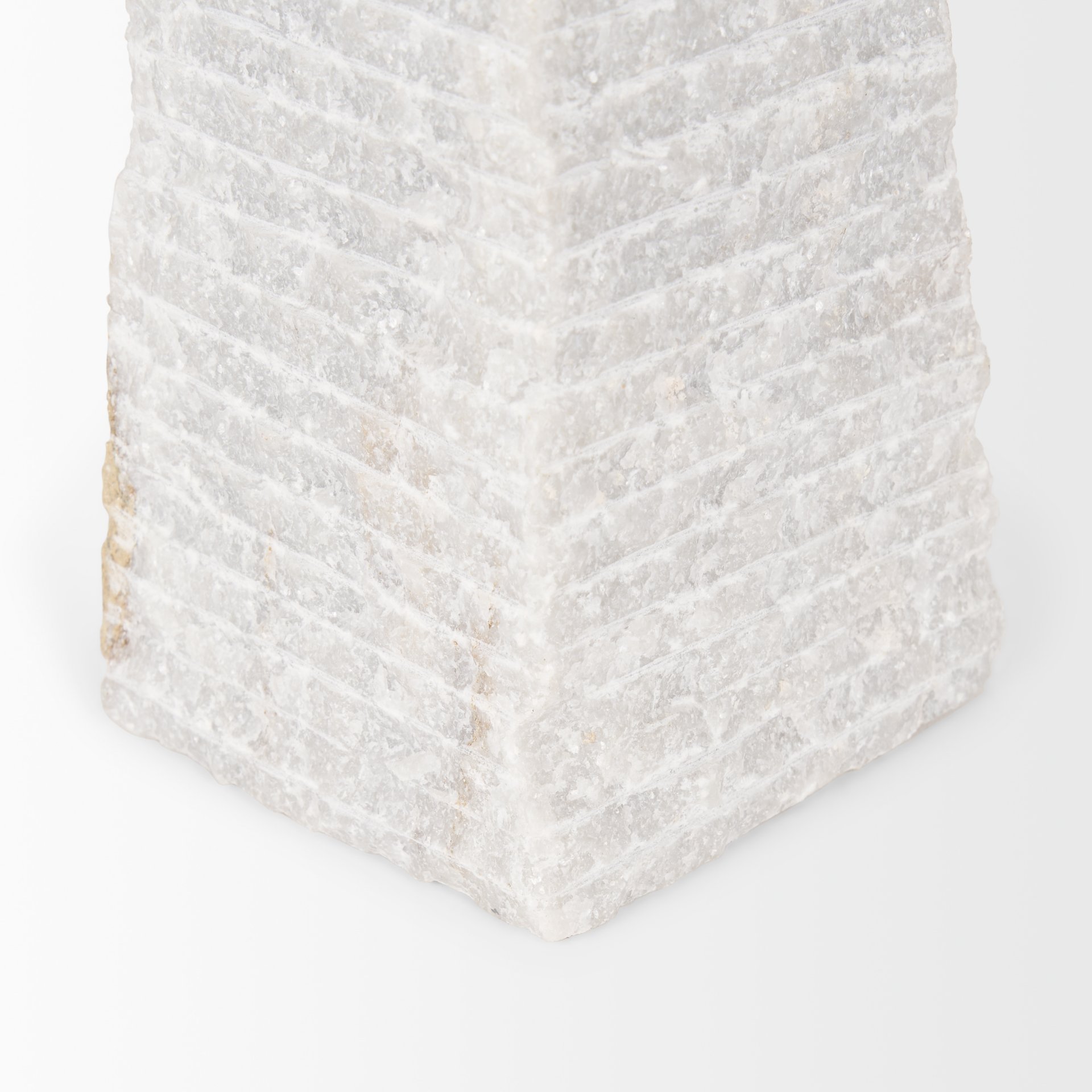 The Pyramis White Rough Marble Obelisk is a decorative object inspired by the timeless allure of Egyptian pyramids. Crafted from solid, rough-carved marble, this obelisk adds texture, height, and intrigue to any space. Perfect for styling on coffee tables, console tables, or shelves, the Pyramis brings a touch of sophistication to its surroundings. Marble is a natural material; variations in color should be expected, making each piece unique.