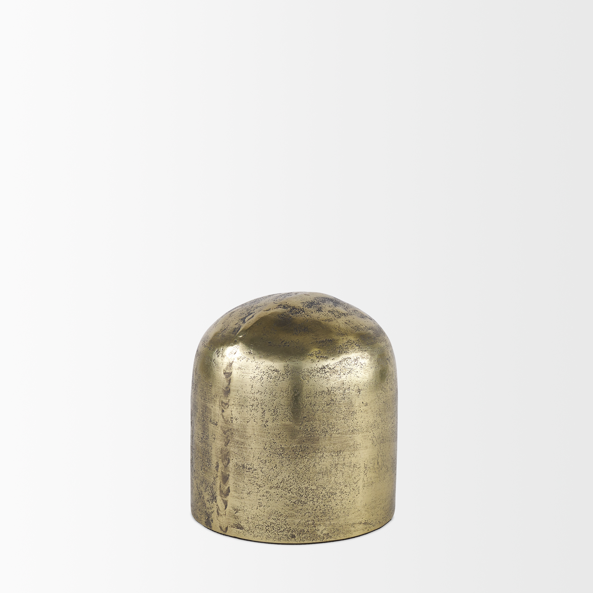 Add a touch of timeless style to your man cave with the Quonset Short Brass Finished Aluminum Metal Ornament! This eye-catching accent piece features a cylindrical shape, perfect for adding height and visual interest to any surface. Crafted from cast aluminum and finished with a gleaming antiqued brass electroplate, this ornament exudes rugged sophistication. The electroplated finish ensures durability and a long-lasting shine. Arrange it solo or pair it with the Quonset Tall and Extra Tall sizes for an even bolder statement. With dimensions of 6.5L x 6.5W x 7.0H and a weight of just 3.2 lbs, it’s the perfect way to personalize your space.