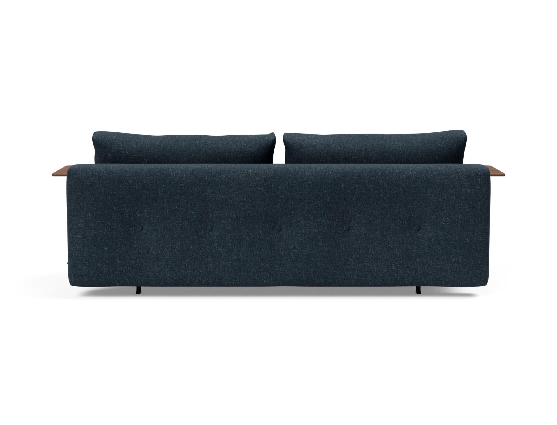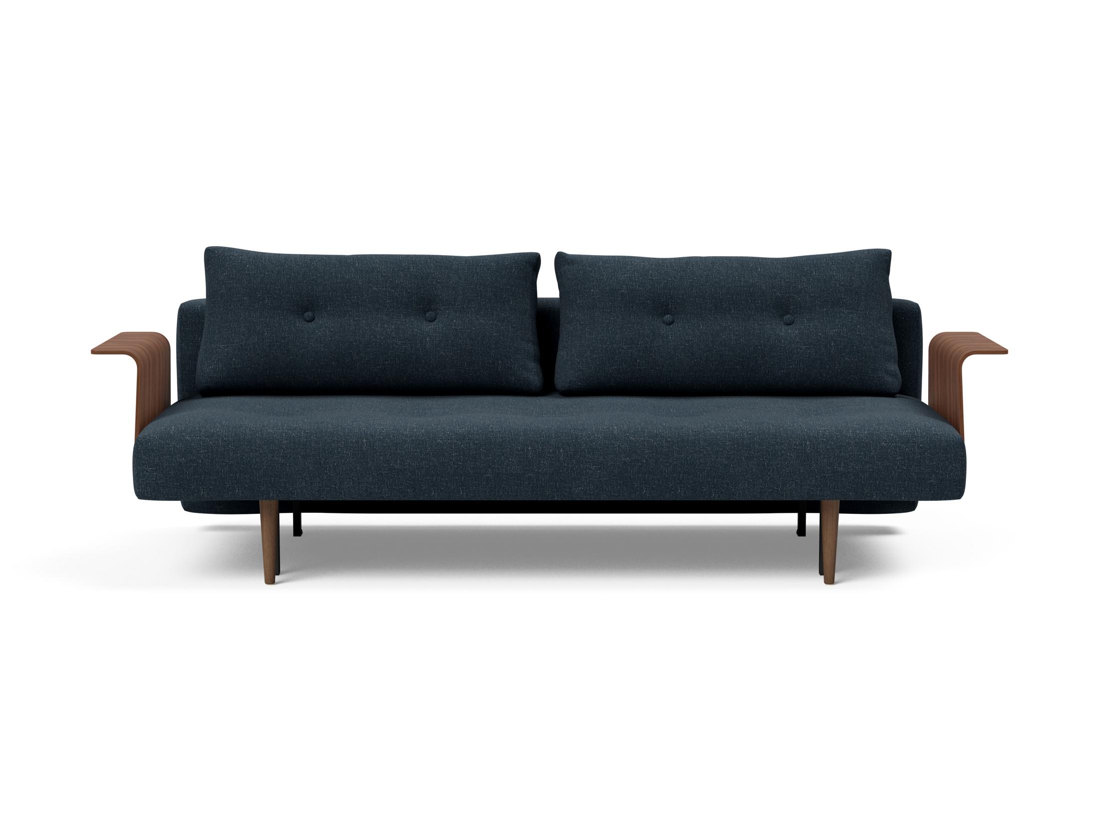 The Recast Sofa Bed Dark Styletto With Arms – Nist Blue is a perfect blend of functionality and style, designed to meet the demands of compact living while adding a touch of mid-century elegance to your space. Featuring a curved walnut armrest and dark-stained legs, this sofa bed showcases clean simplicity and timeless design elements. Its multifunctional features, including easy conversion from a sofa to a bed and an integrated bedding box for storage, make it an ideal addition to any modern living space. The sofa’s firm comfort, pocket spring mattress, and high-quality materials ensure durability and a comfortable lounging or sleeping experience.